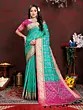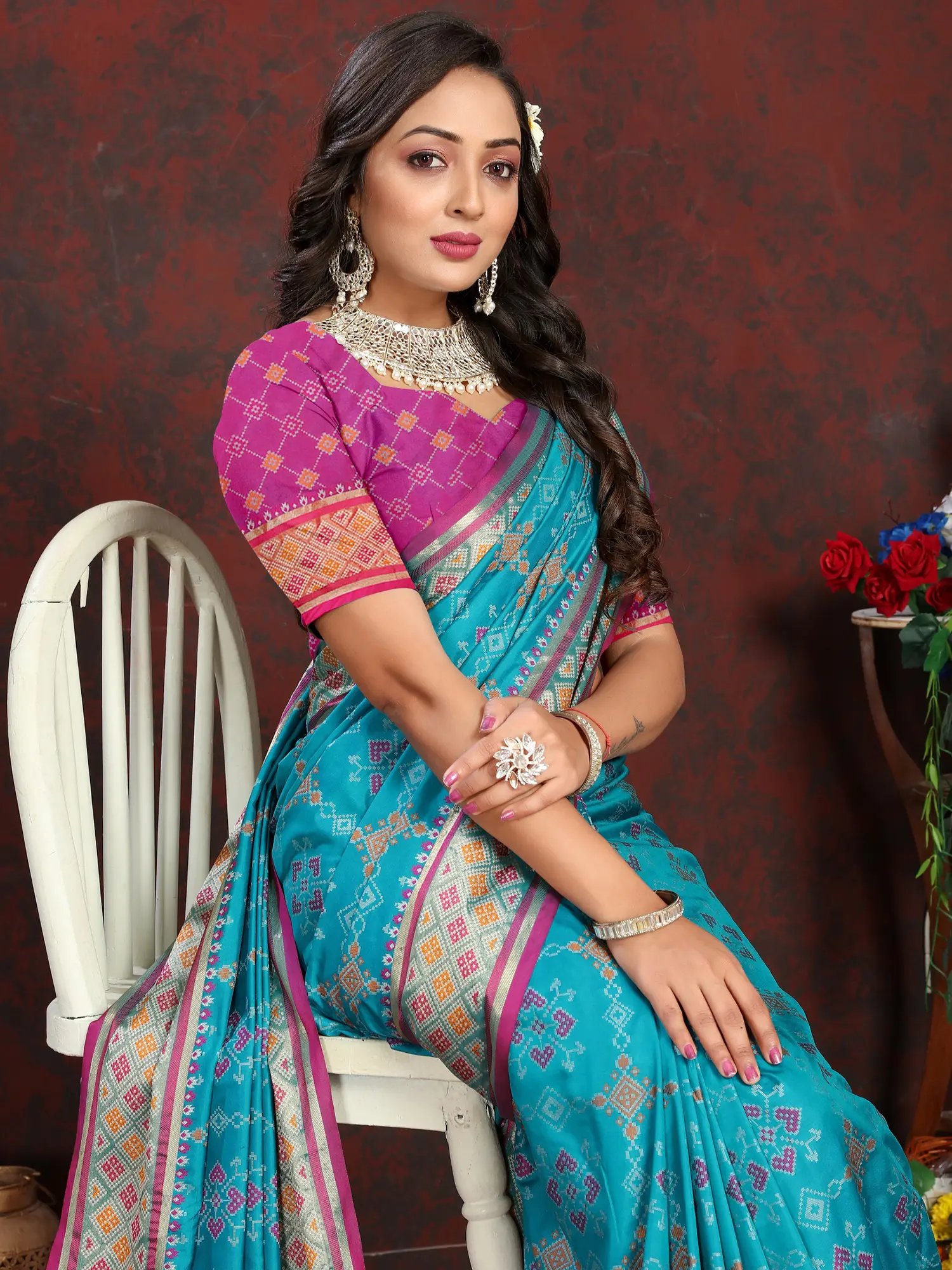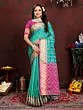 Immerse yourself in the rich tapestry of Indian heritage with this exquisite silk saree, a testament to timeless elegance and artisanal craftsmanship. Designed to captivate, this garment is an ode to traditional weaving techniques, brought to life with intricate ethnic motifs that tell stories of culture and celebration. The vibrant turquoise hue of the silk fabric serves as a stunning canvas for the meticulously woven patterns, creating a visual feast that is both sophisticated and alluring.