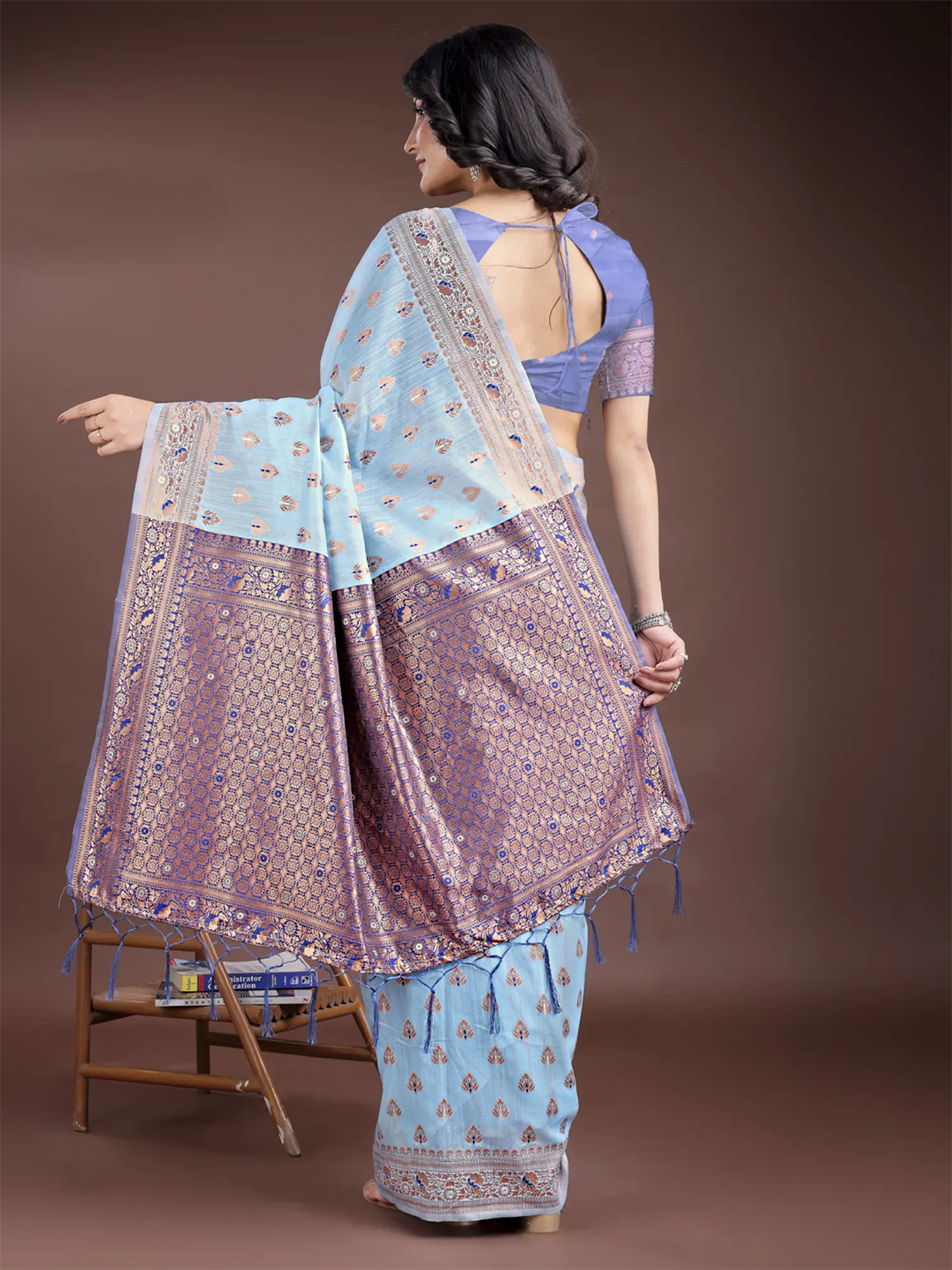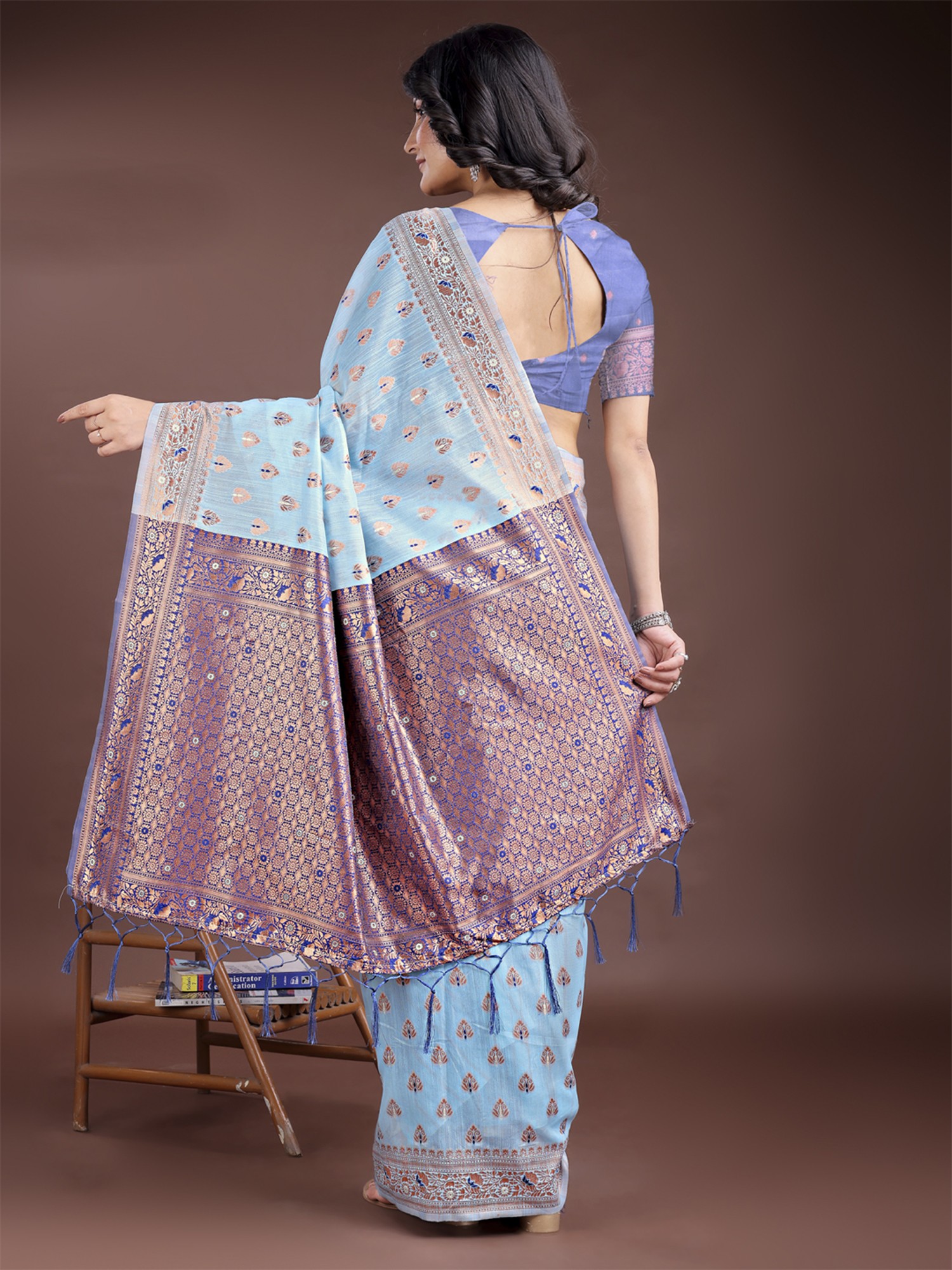 Silk Small Woven Motifs Attractive Saree With Tassels Pallu