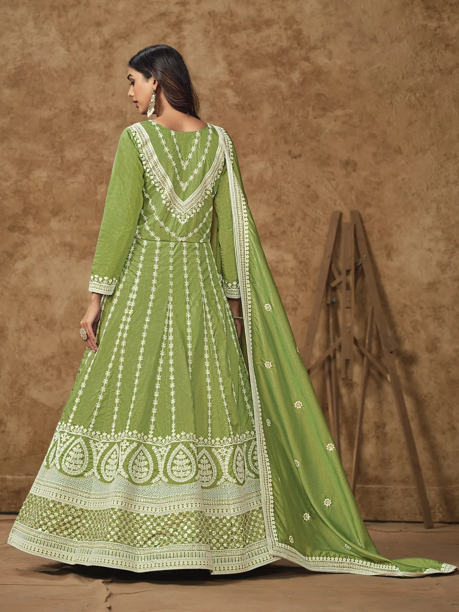 Silk Elegant Sequins And Embroidery Work Anarkali Gown With Floral Tassels Dupatta