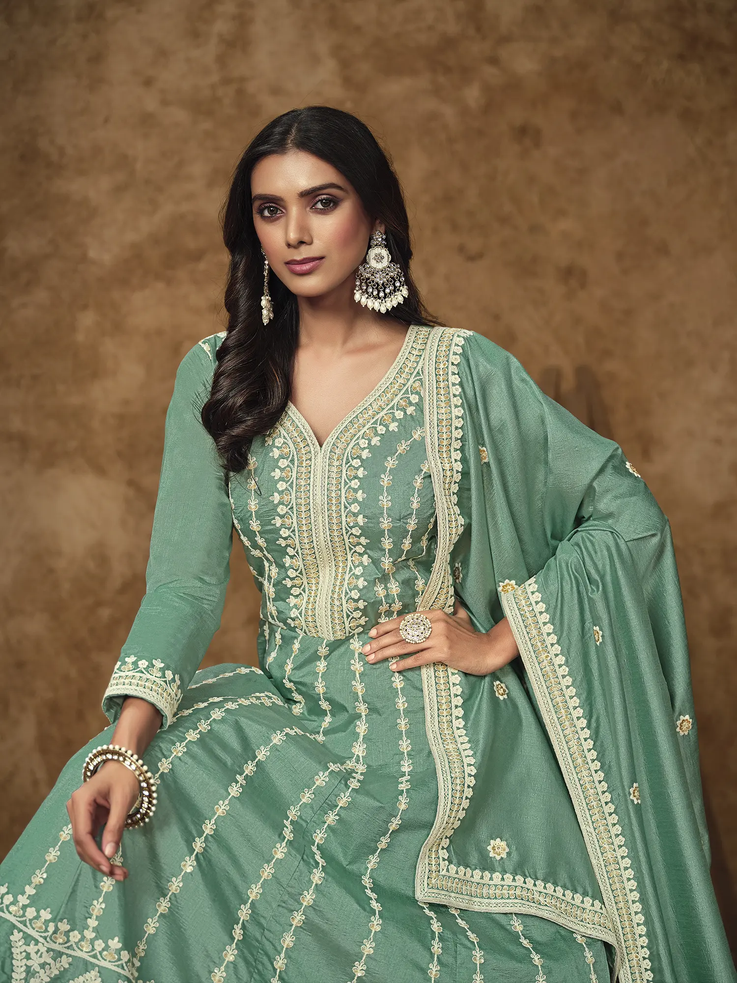 Experience the exquisite touch of pure silk, meticulously chosen for its luxurious sheen and unparalleled drape. Each embellishment, from the delicate sequins to intricate embroidery, is thoughtfully placed by skilled artisans, reflecting a heritage of exceptional craftsmanship. The flowing silhouette is constructed with precision, promising a fit that feels as magnificent as it looks.