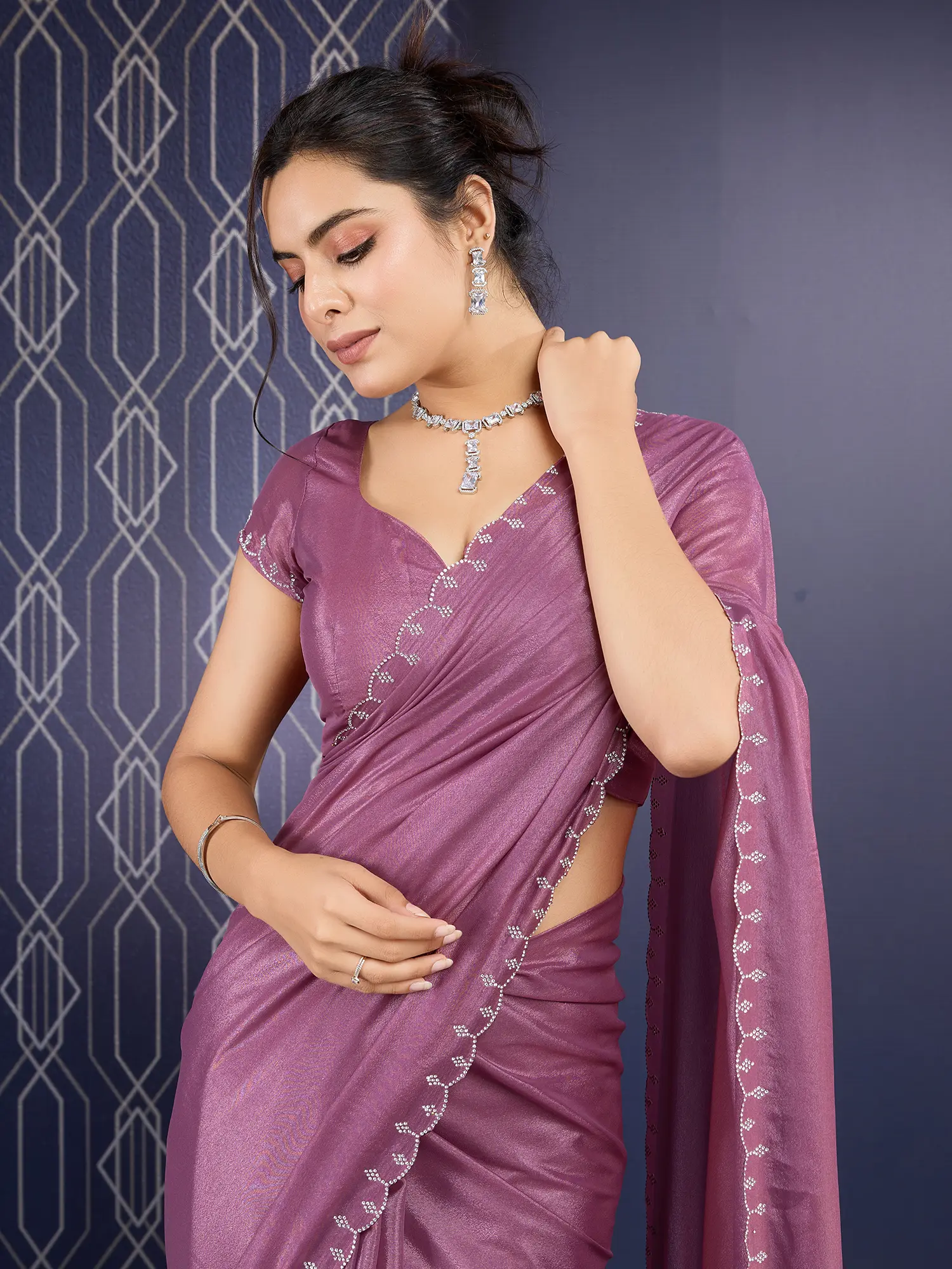 Experience the allure of timeless sophistication and capture every gaze with a drape that whispers tales of refined craftsmanship and festive elegance. This creation is designed to make you feel utterly radiant, perfect for celebrating life's most cherished moments.