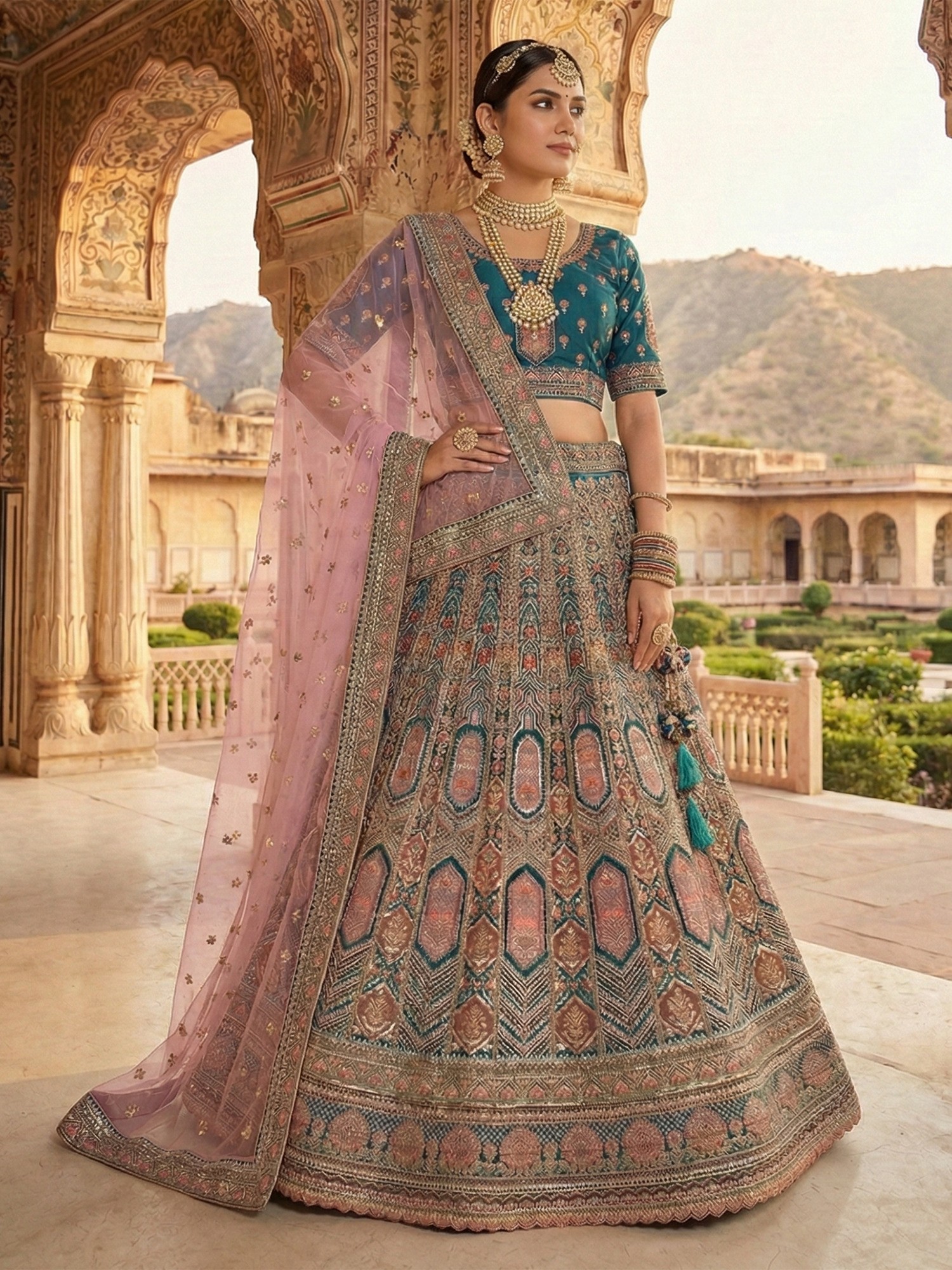 Regal Velvet Lehenga Choli With Heavy Embroidery Zari Work And Exquisite Dupatta Ideal For Bridal And Royal Weddings