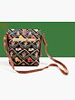 Fabric Bag from Surajkund with Vibrant Elephant Ikat Print & Leather-Stud Detailing