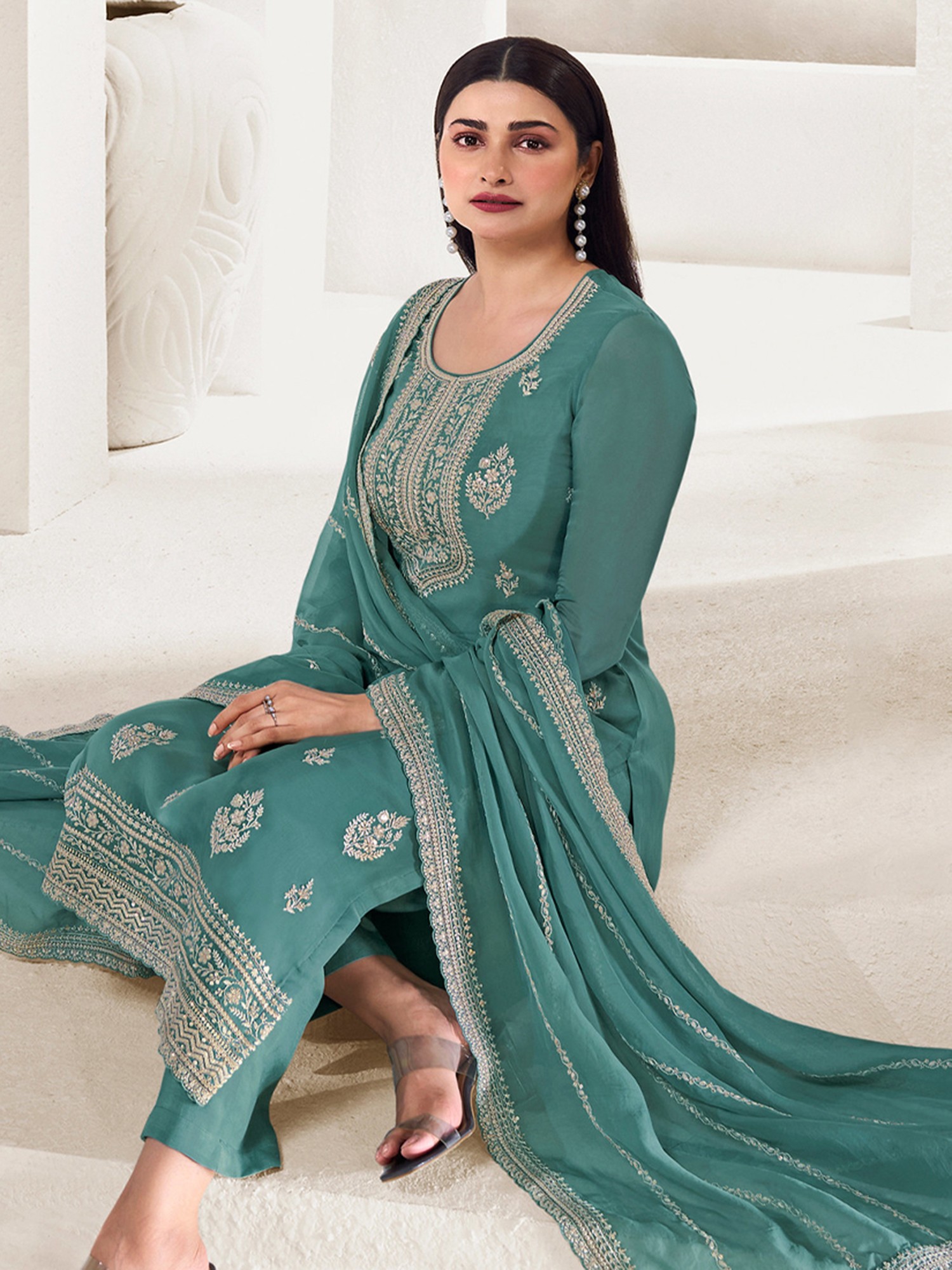 Georgette Butti Thread-Sequins Embroidered Palazzo Salwar Suit with Dupatta