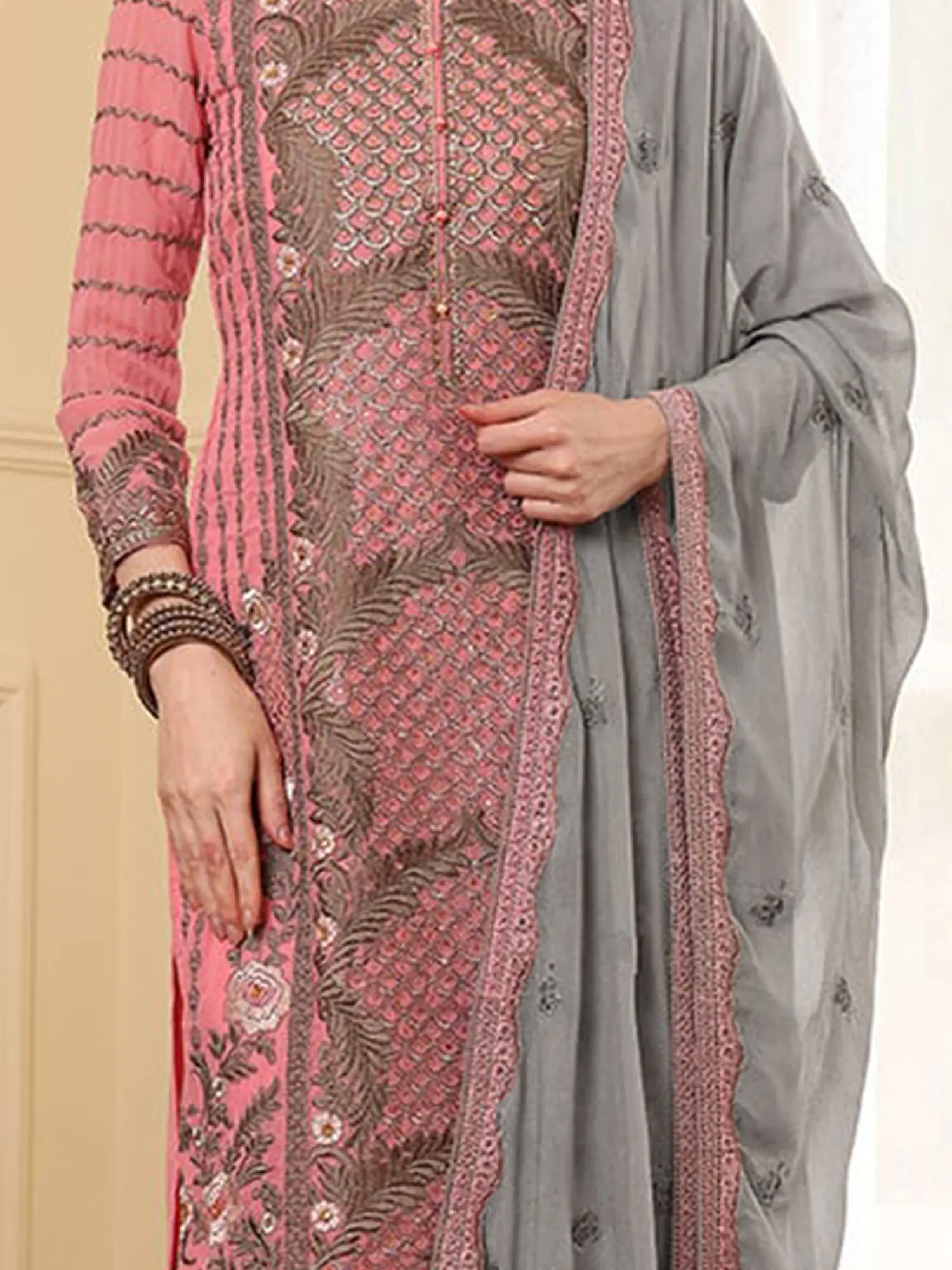 Embroidered Faux Georgette Salwar Suit Set With Santoon Bottom And Chiffon Dupatta For Women Ethnic Wear