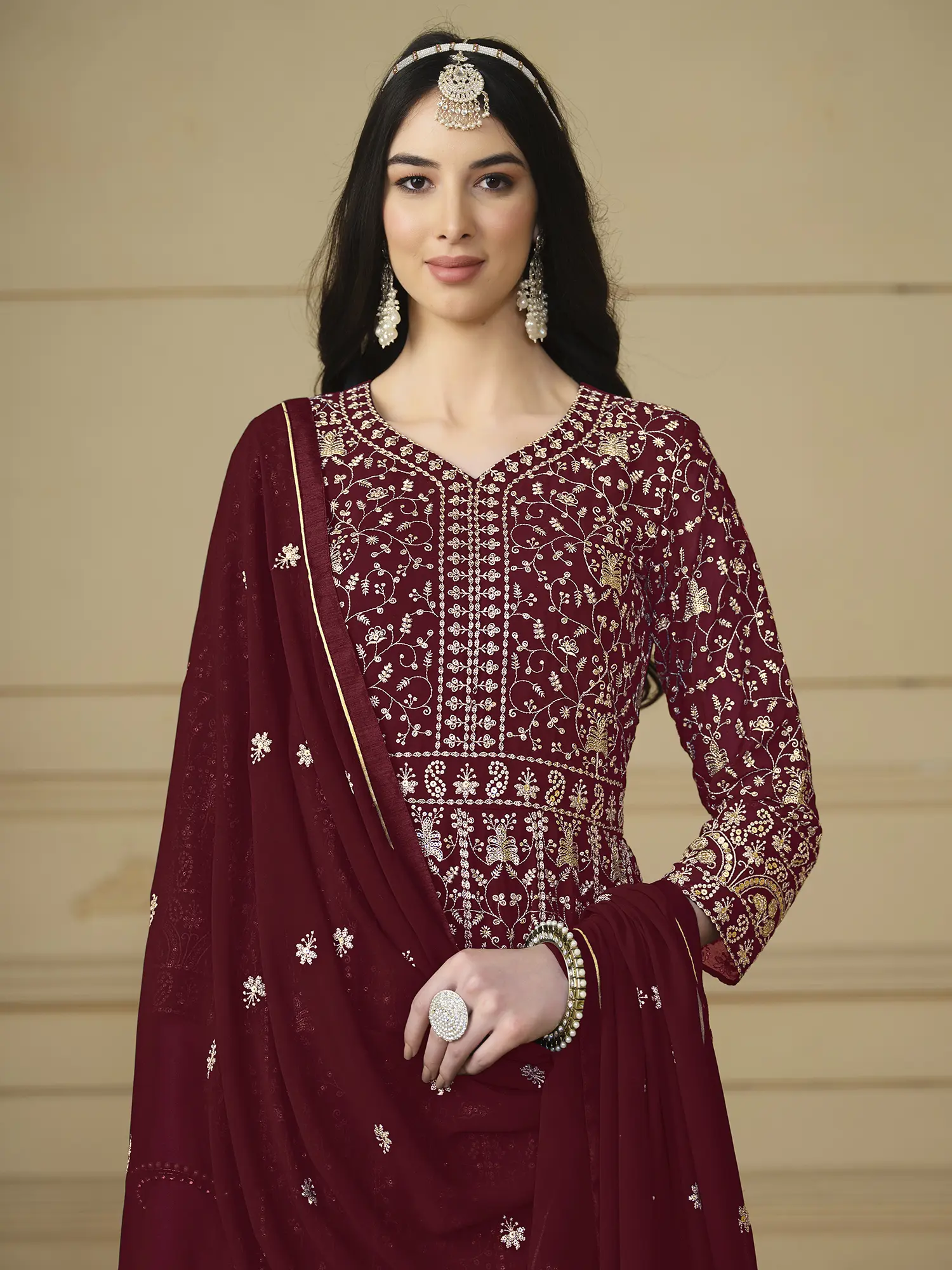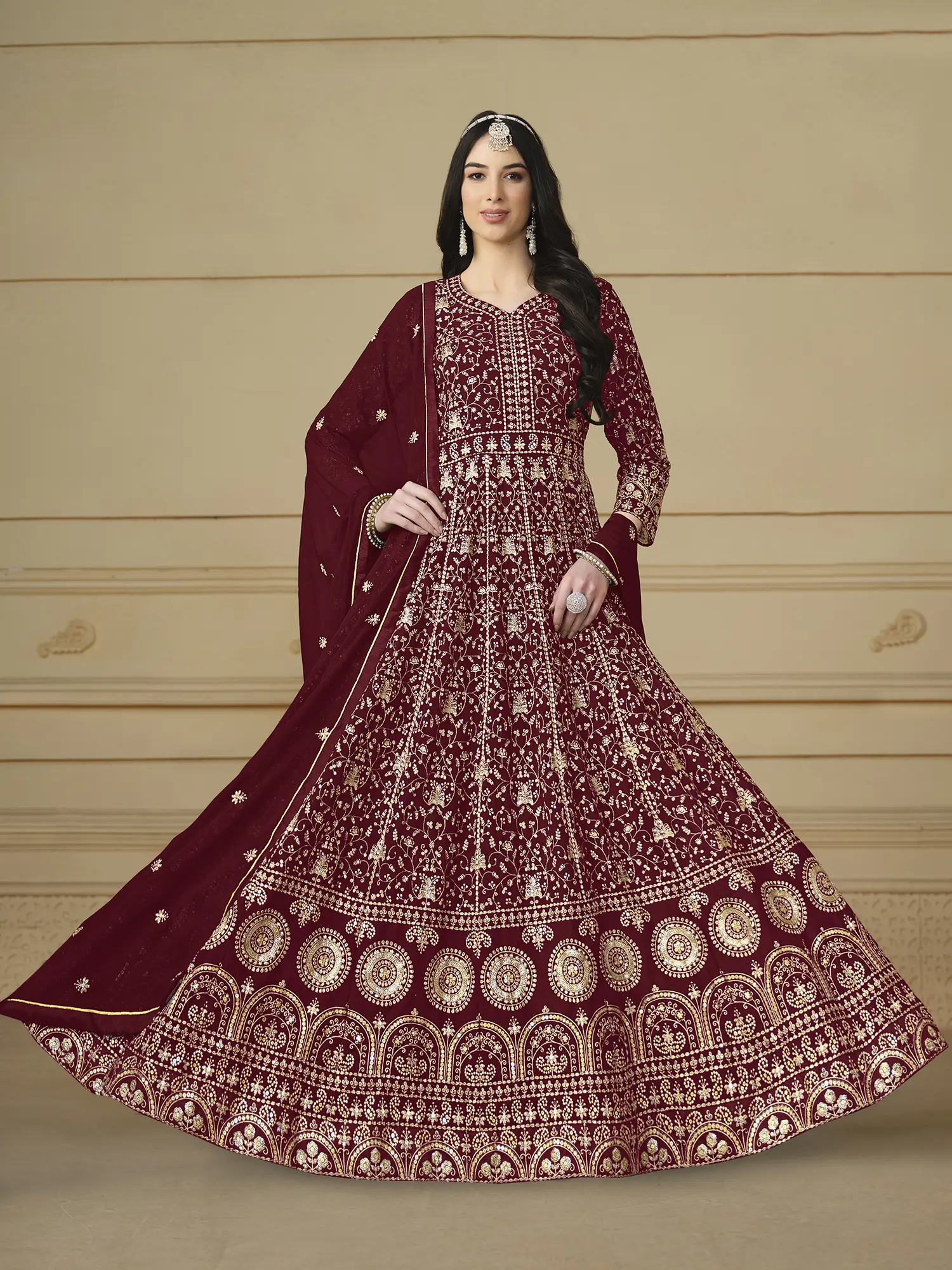 Creme-Brulee Double Layered Anarkali Suit with Zardosi Embroidery in Vibrant Hues