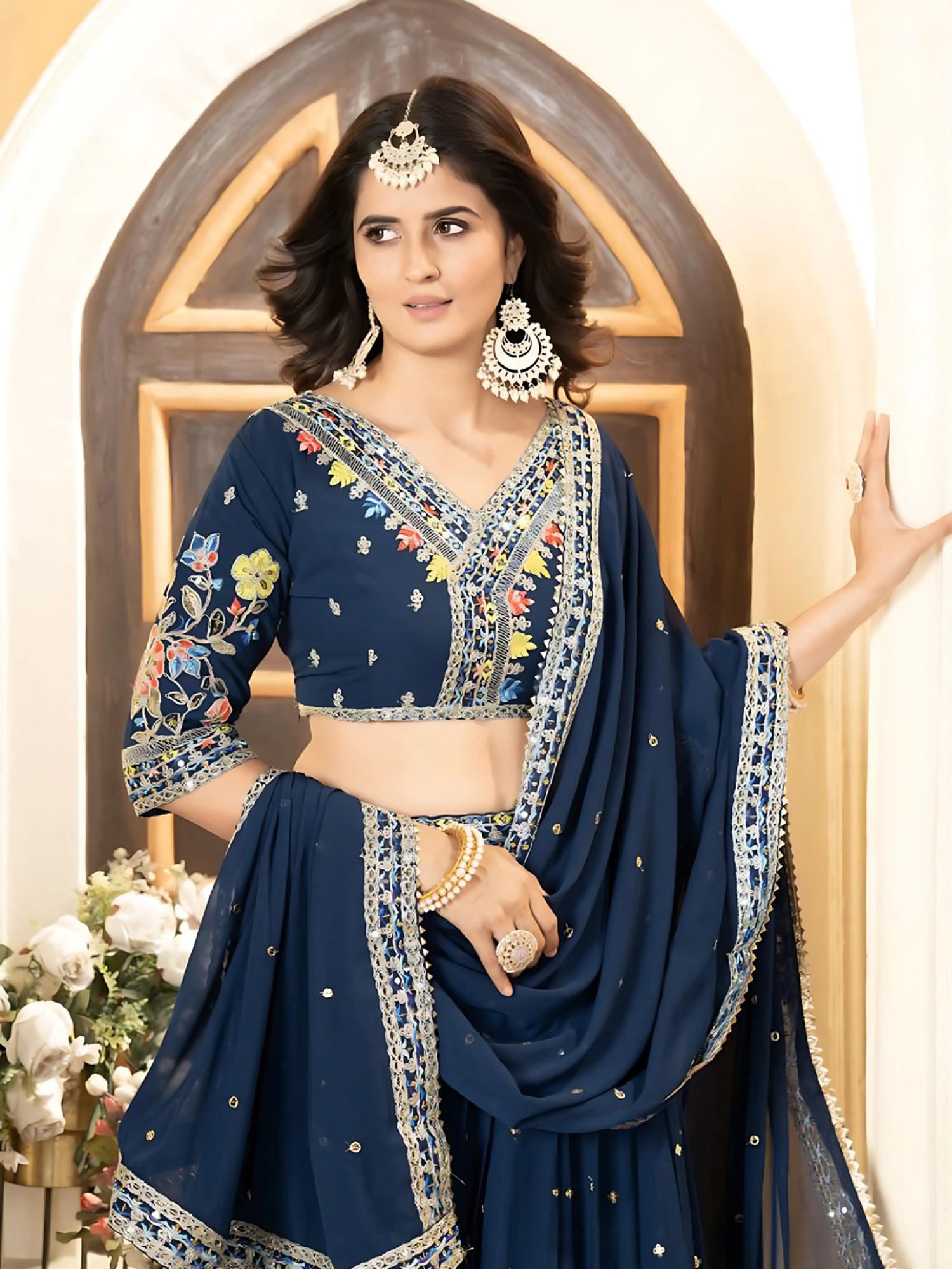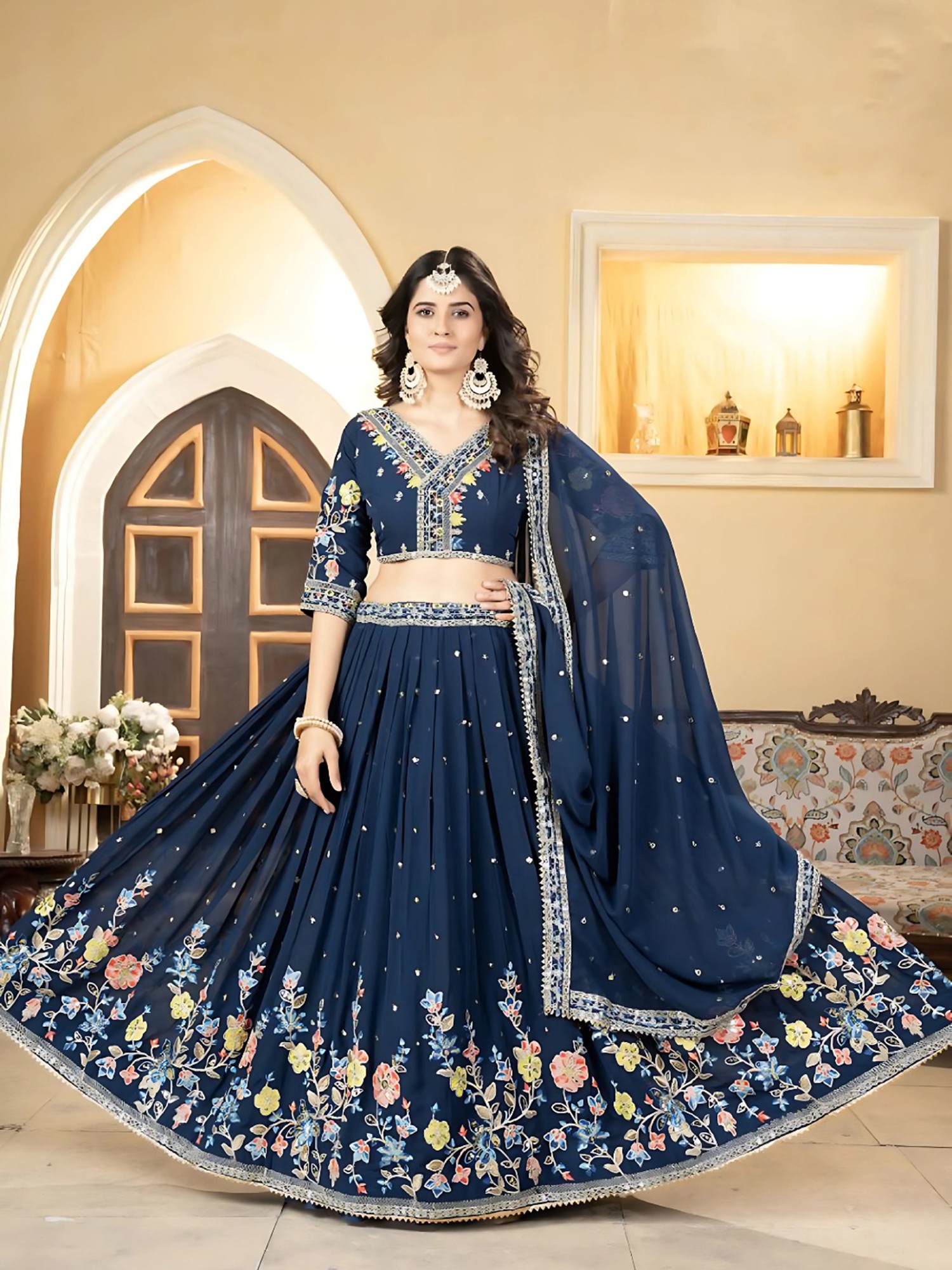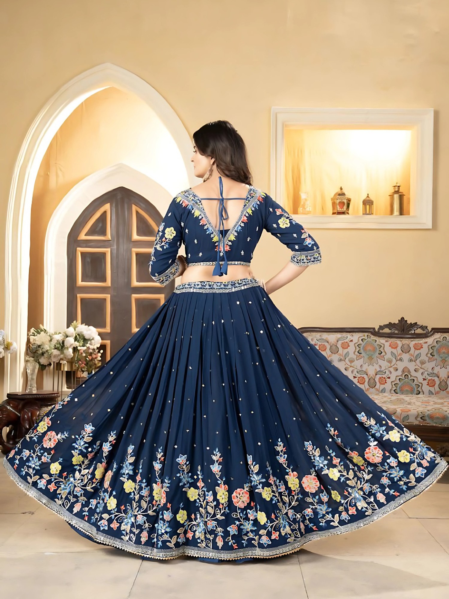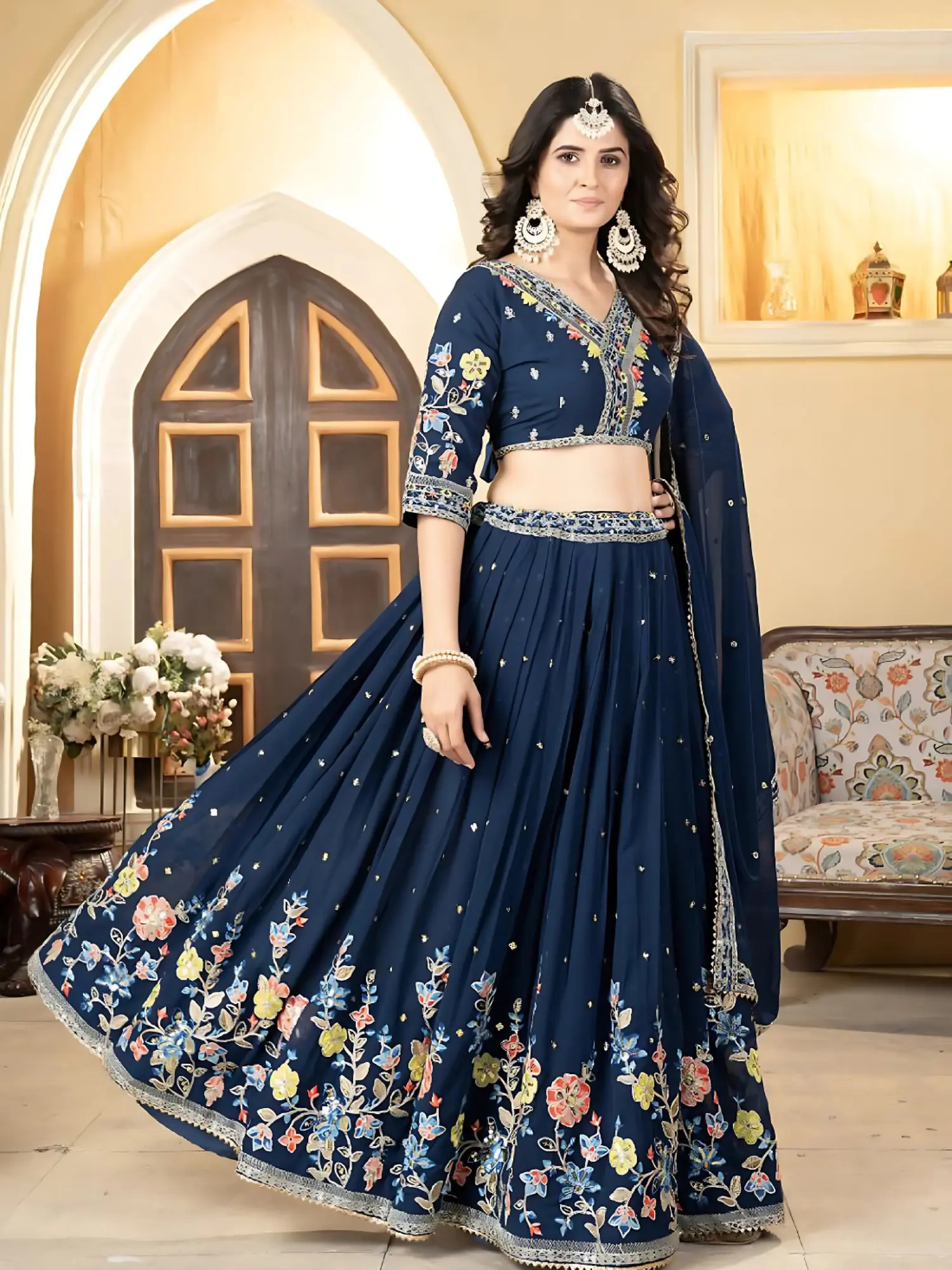 Lehenga Set Designed With Elegant Thread And Sequin Embroidery On Soft Faux Georgette Fabric