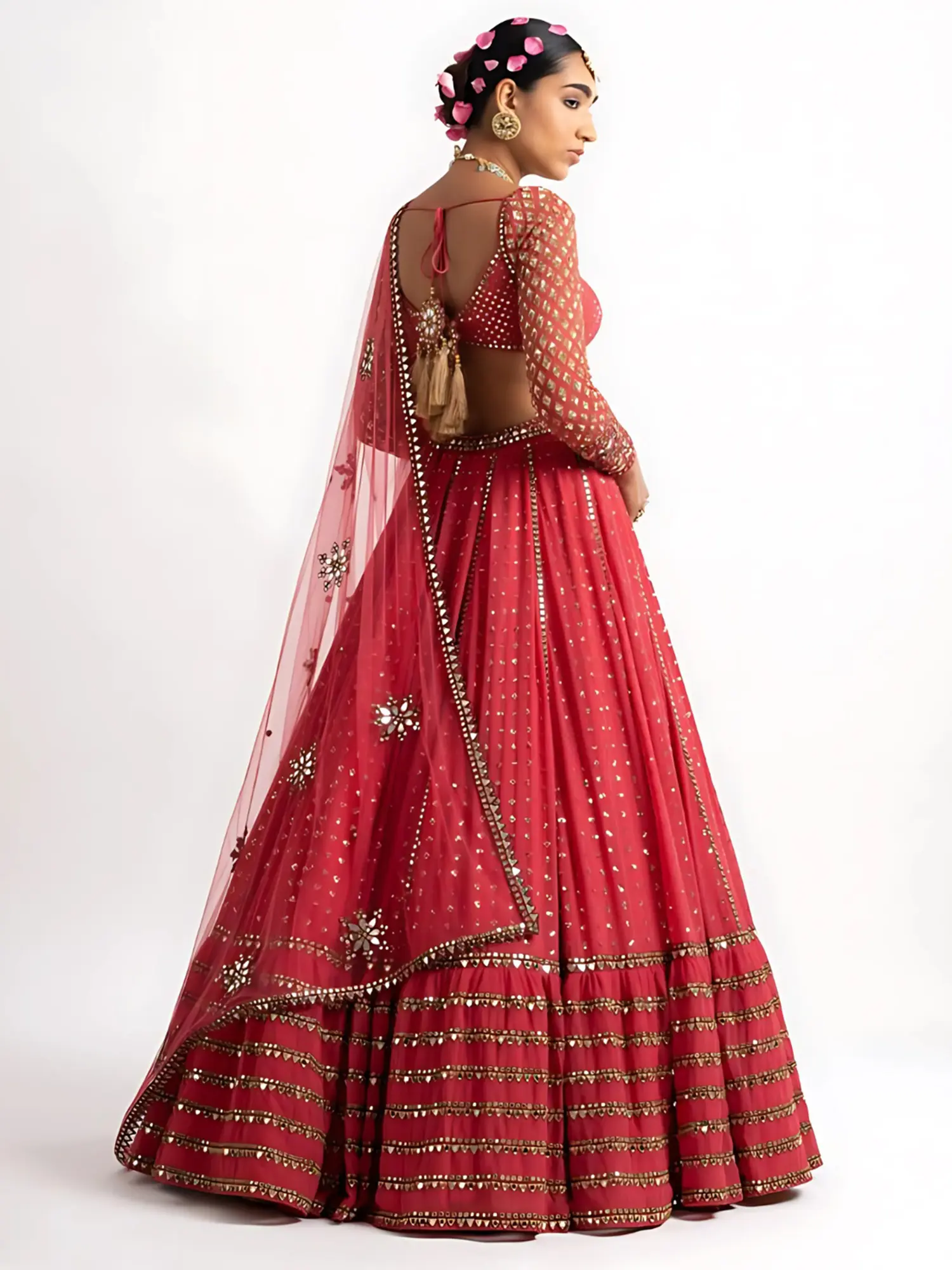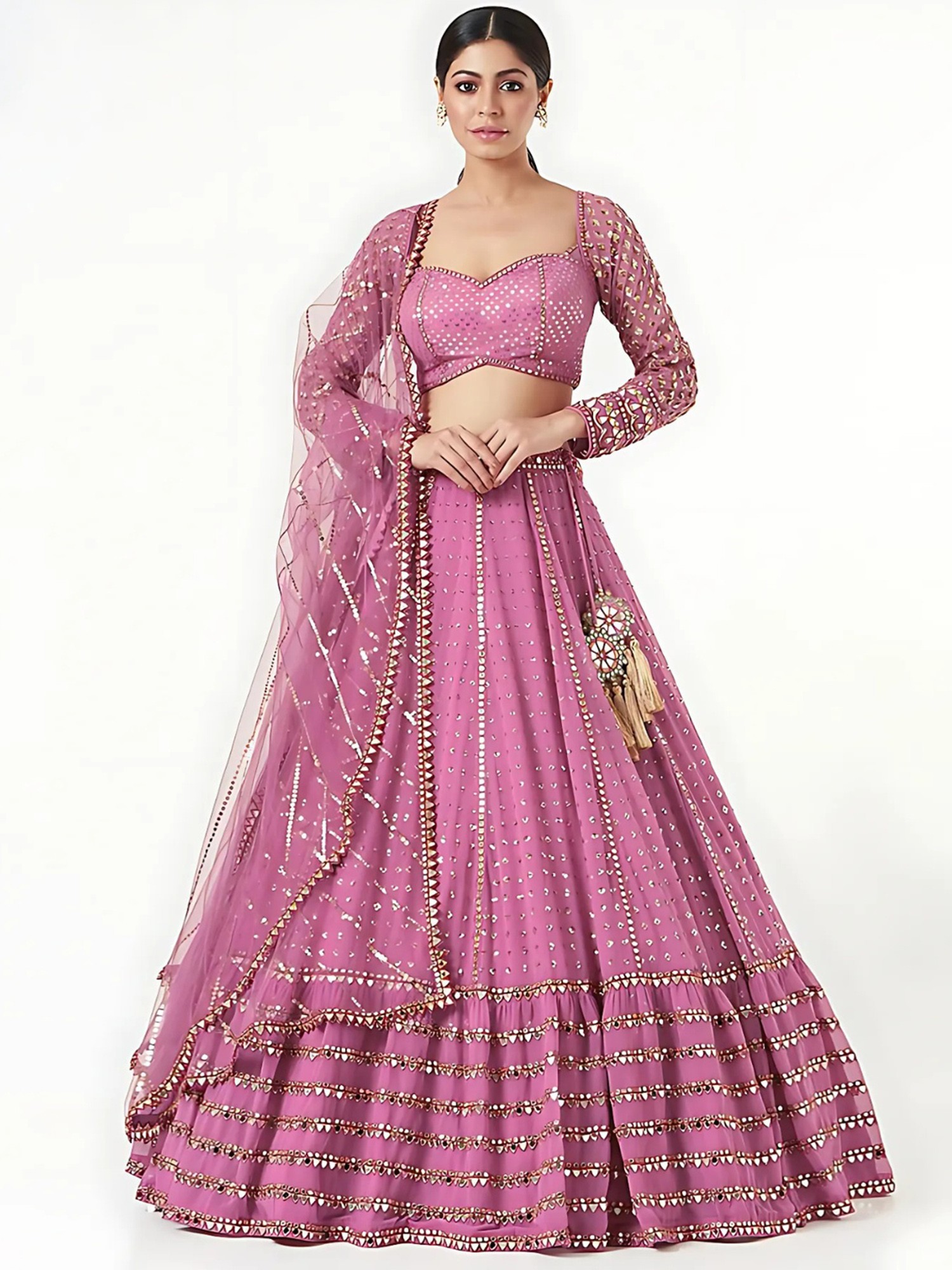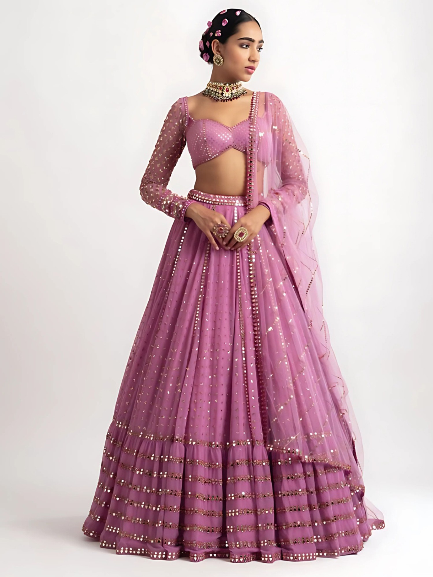 Silk Thread Embroidery And Sequins Zari Work Peacock Motifs Lehenga Choli With Net Dupatta