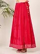 Watermelon-Pink Heavy Digital Printed Anarkali Style Fully Flared Pure Muslin Kurti And Bottom With Dupatta