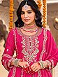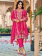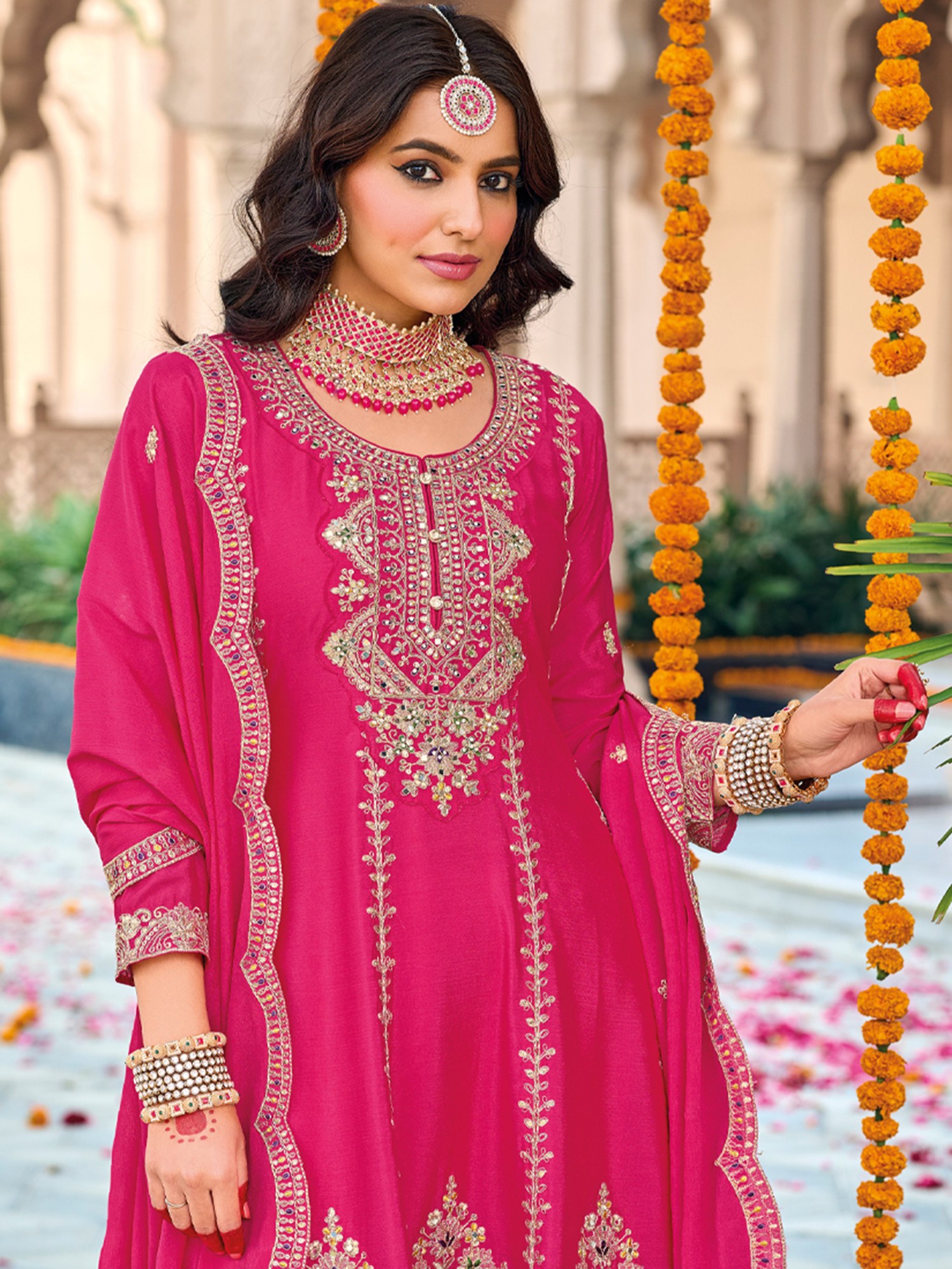 Pink Chinon Palazzo Suit With Bandhani Pattern And Heavy Thread Sequin Embroidered Kurta Dupatta Set For Women