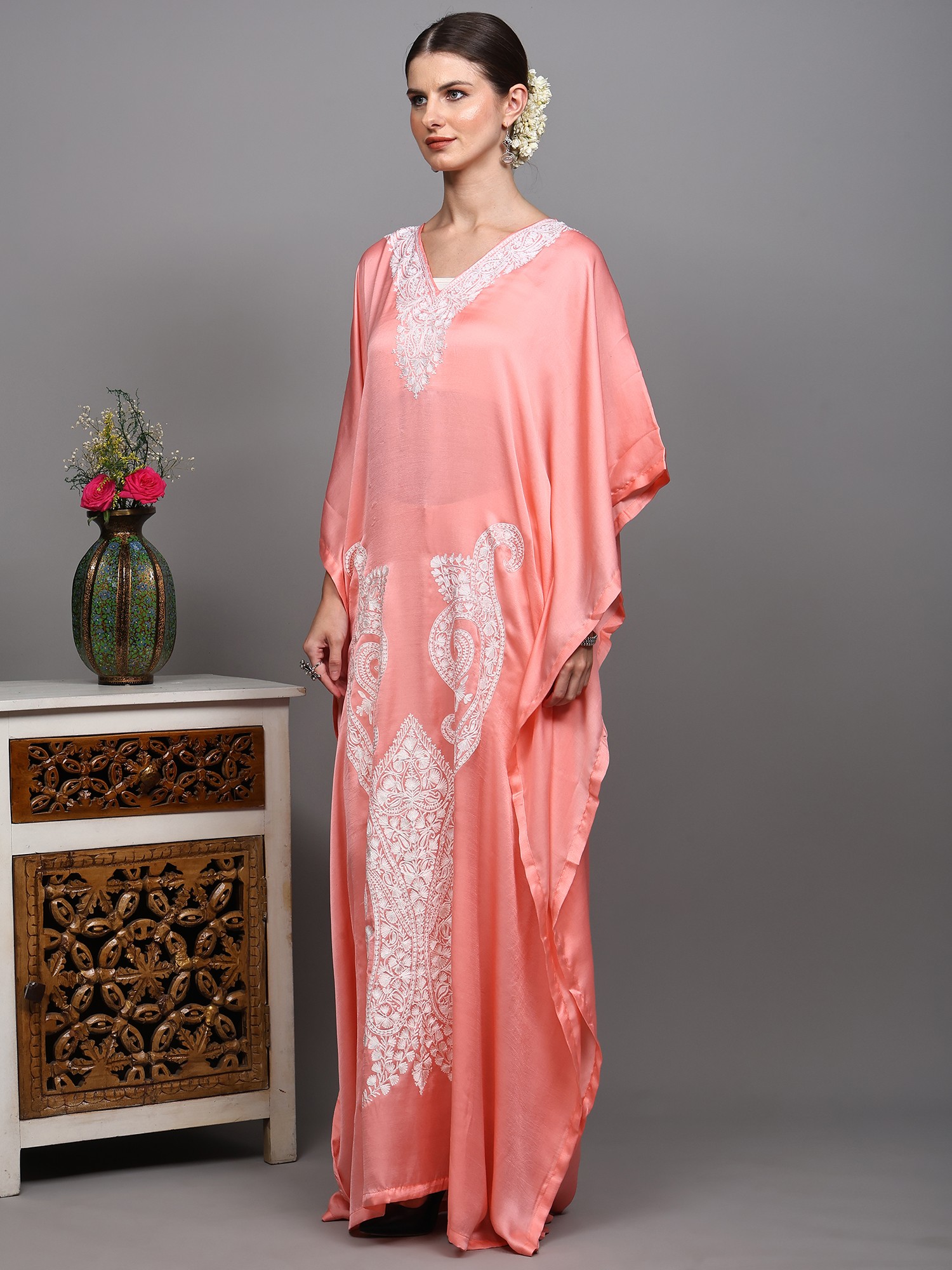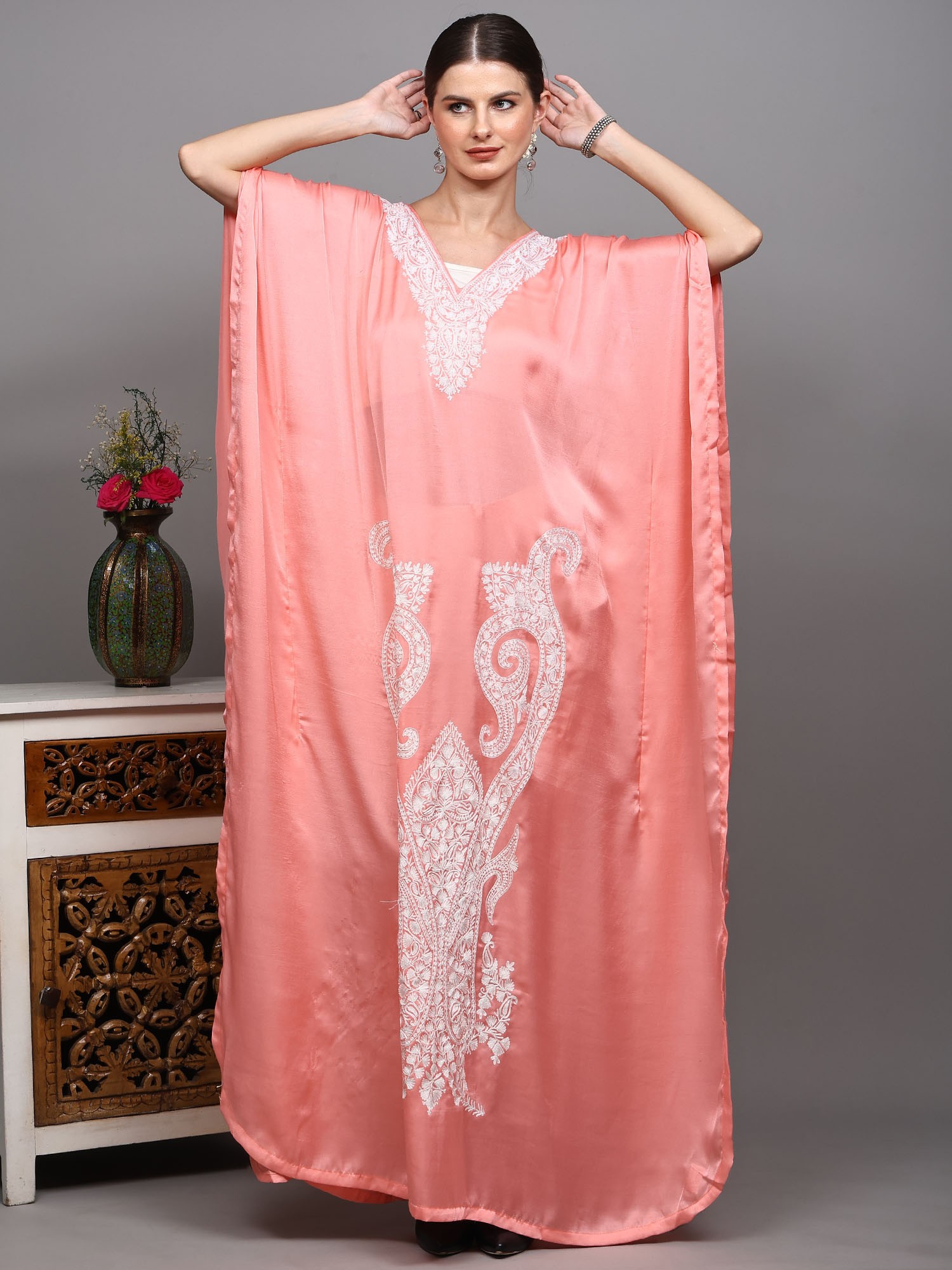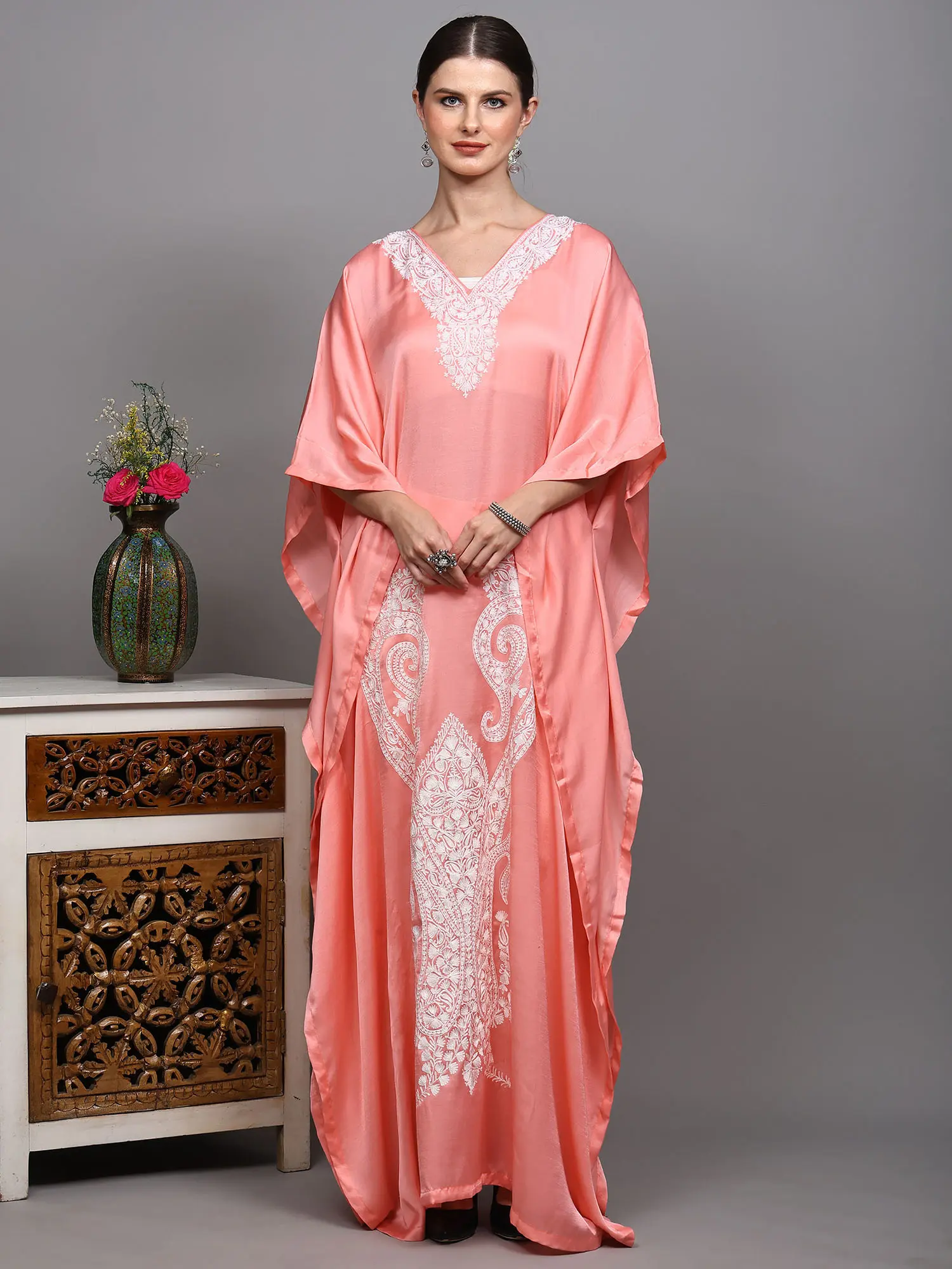 Satin Floor Length Stone work Kaftan with Printed Multicolor Motifs
