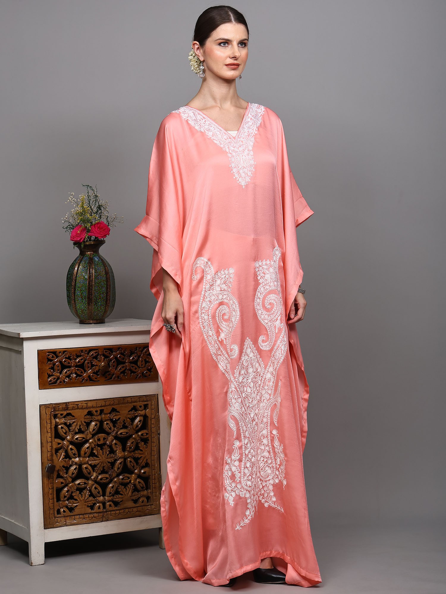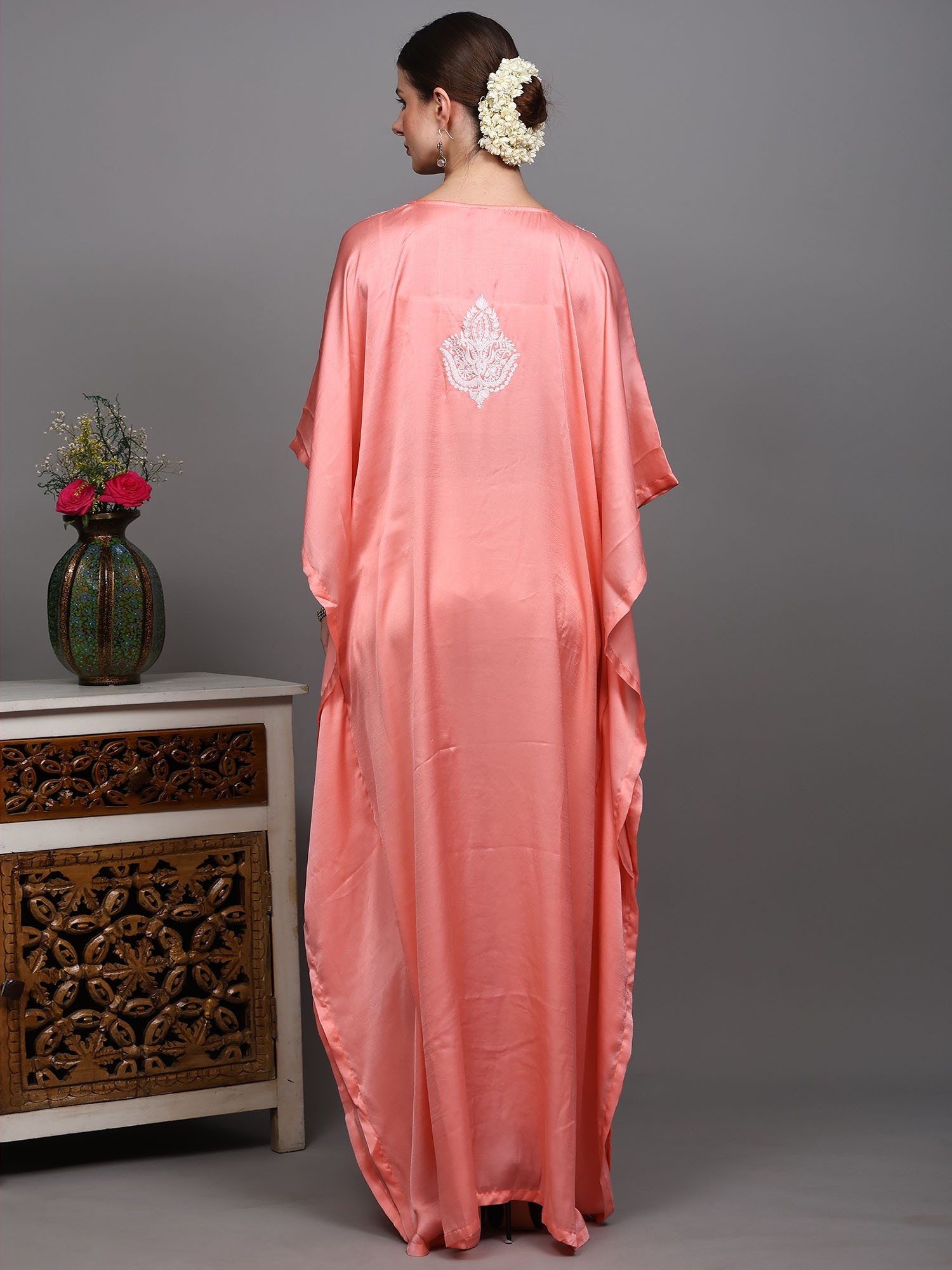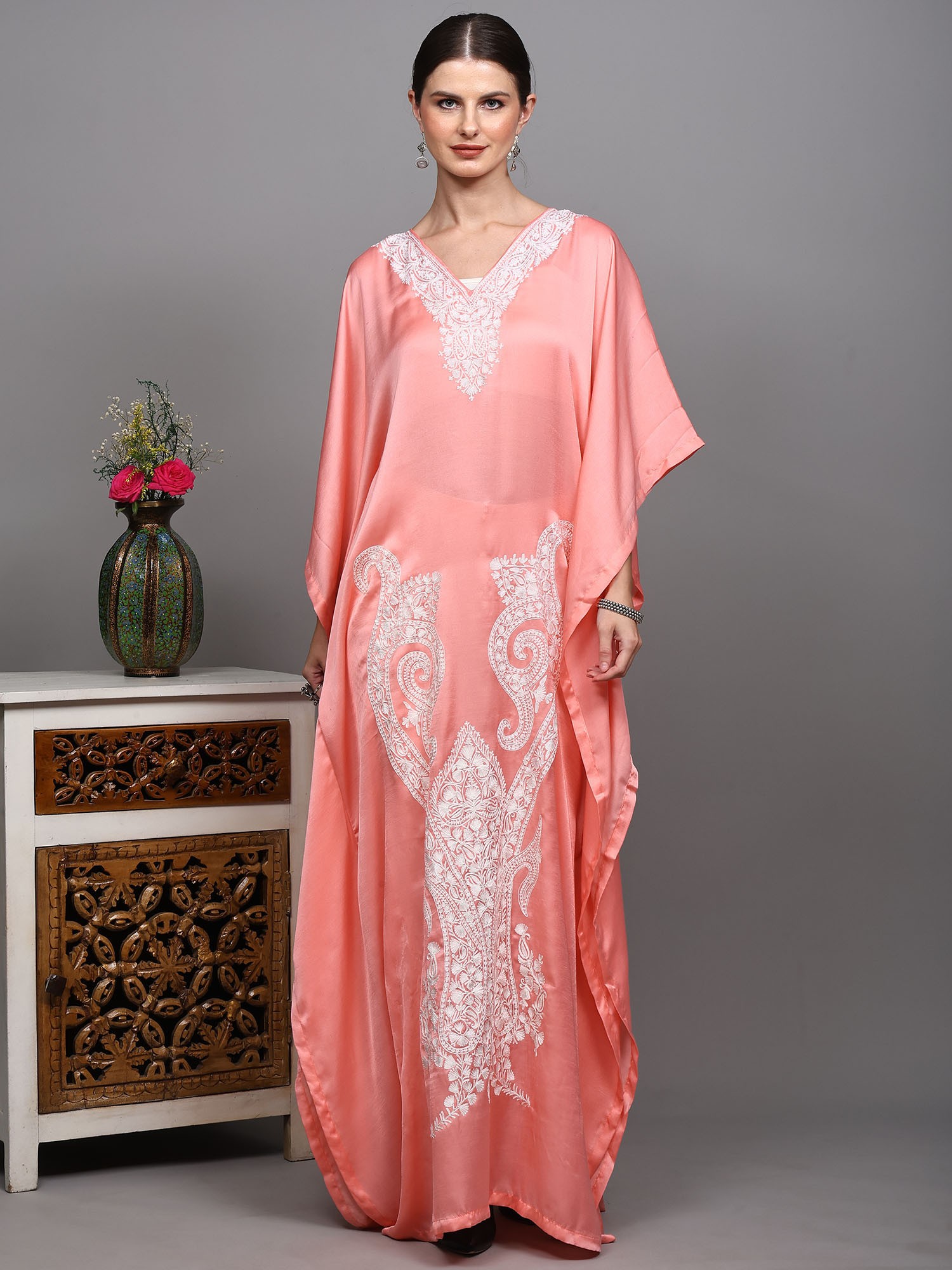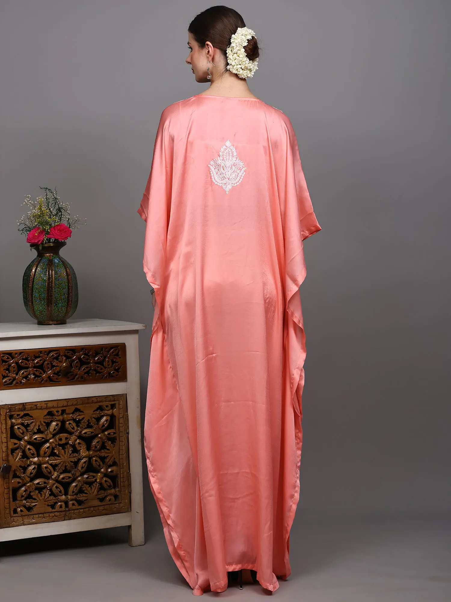 Satin Floor Length Stone work Kaftan with Printed Multicolor Motifs