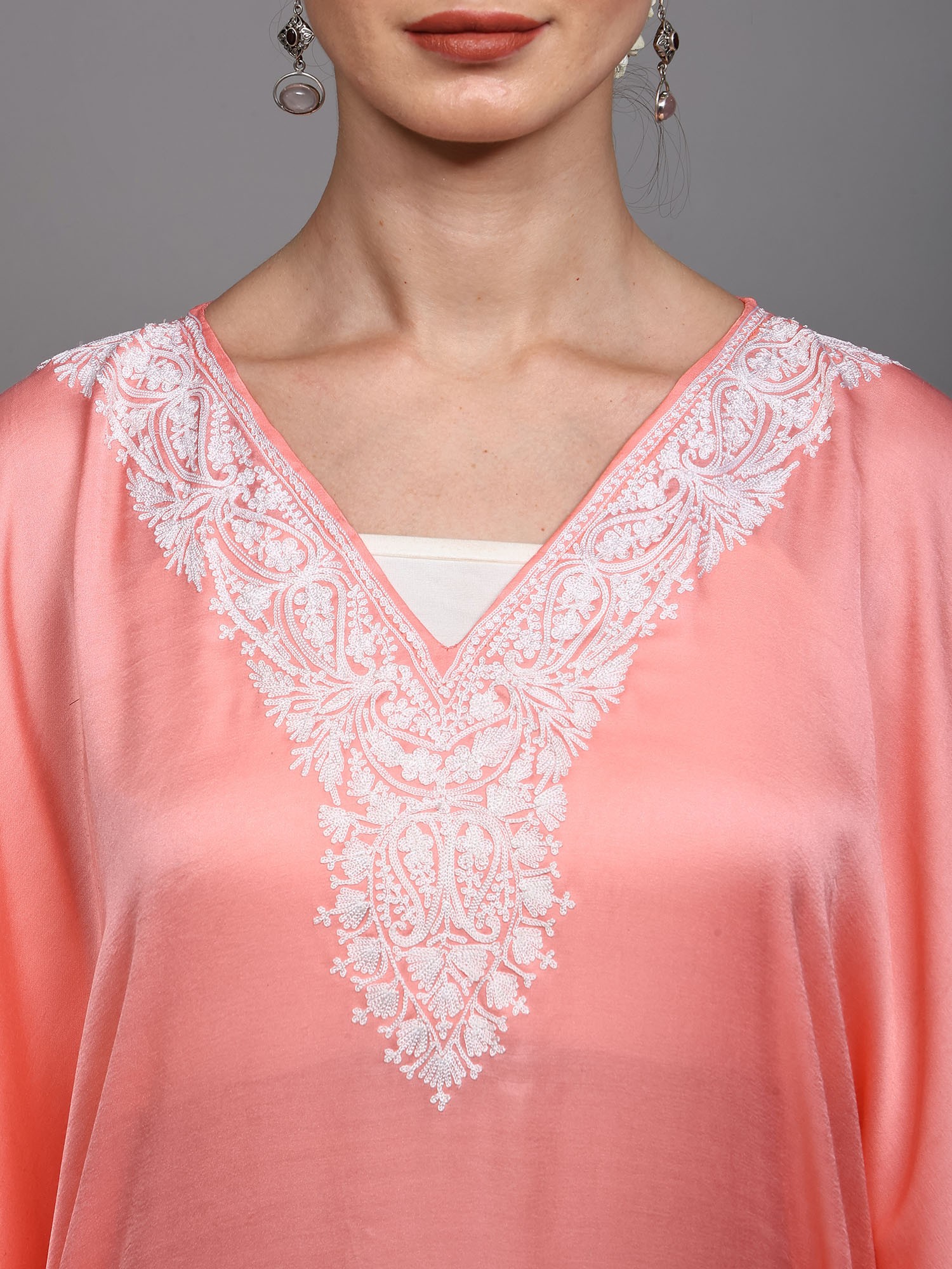 Crushed Kashmiri Kaftan with Aari Embroidered Multicolored Flowers