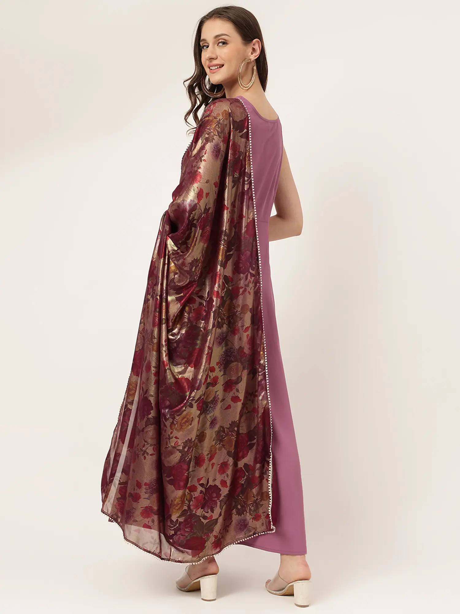 Debian-Red Designer Georgette Embroidery And Sequins Work Straight Kurta With Palazzo And Dupatta