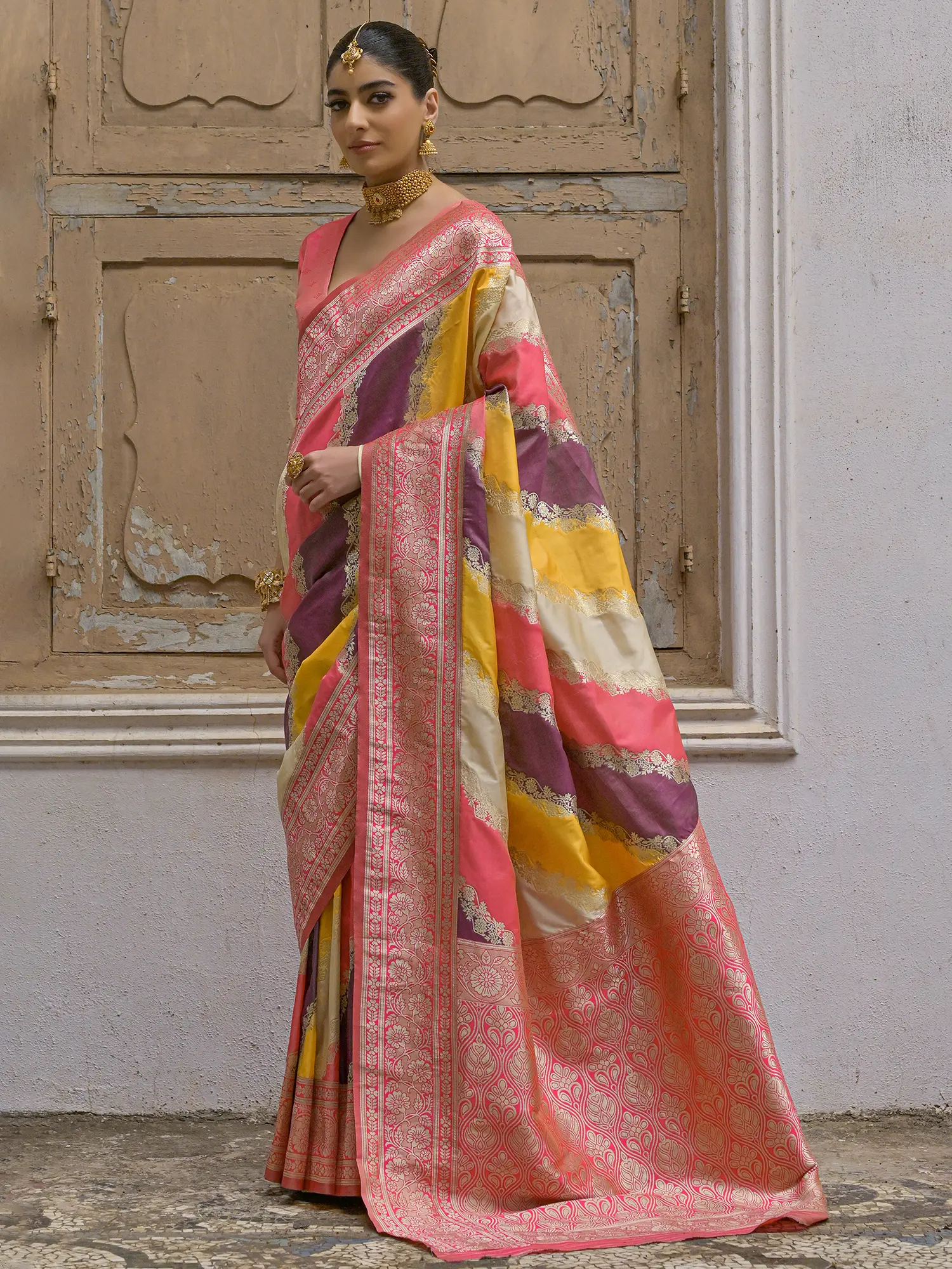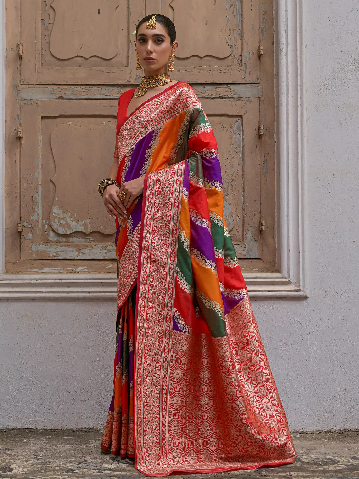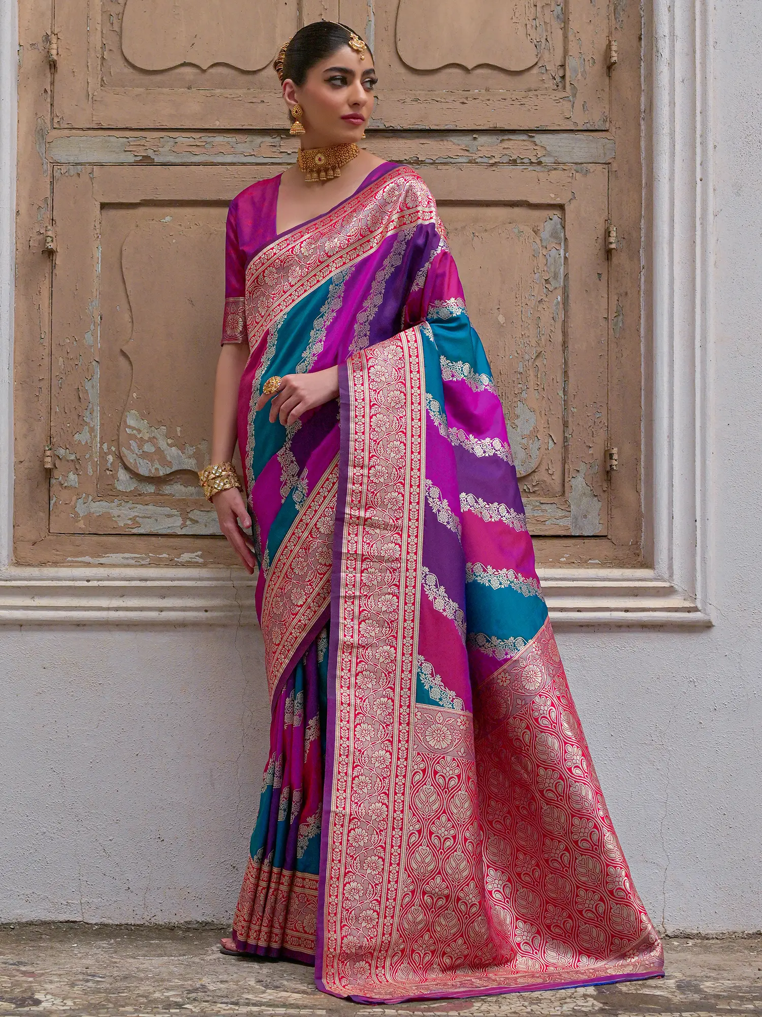 Contrast Broad Border Weaving Work Stunning Festive Wear Lichi Silk Saree With Blouse