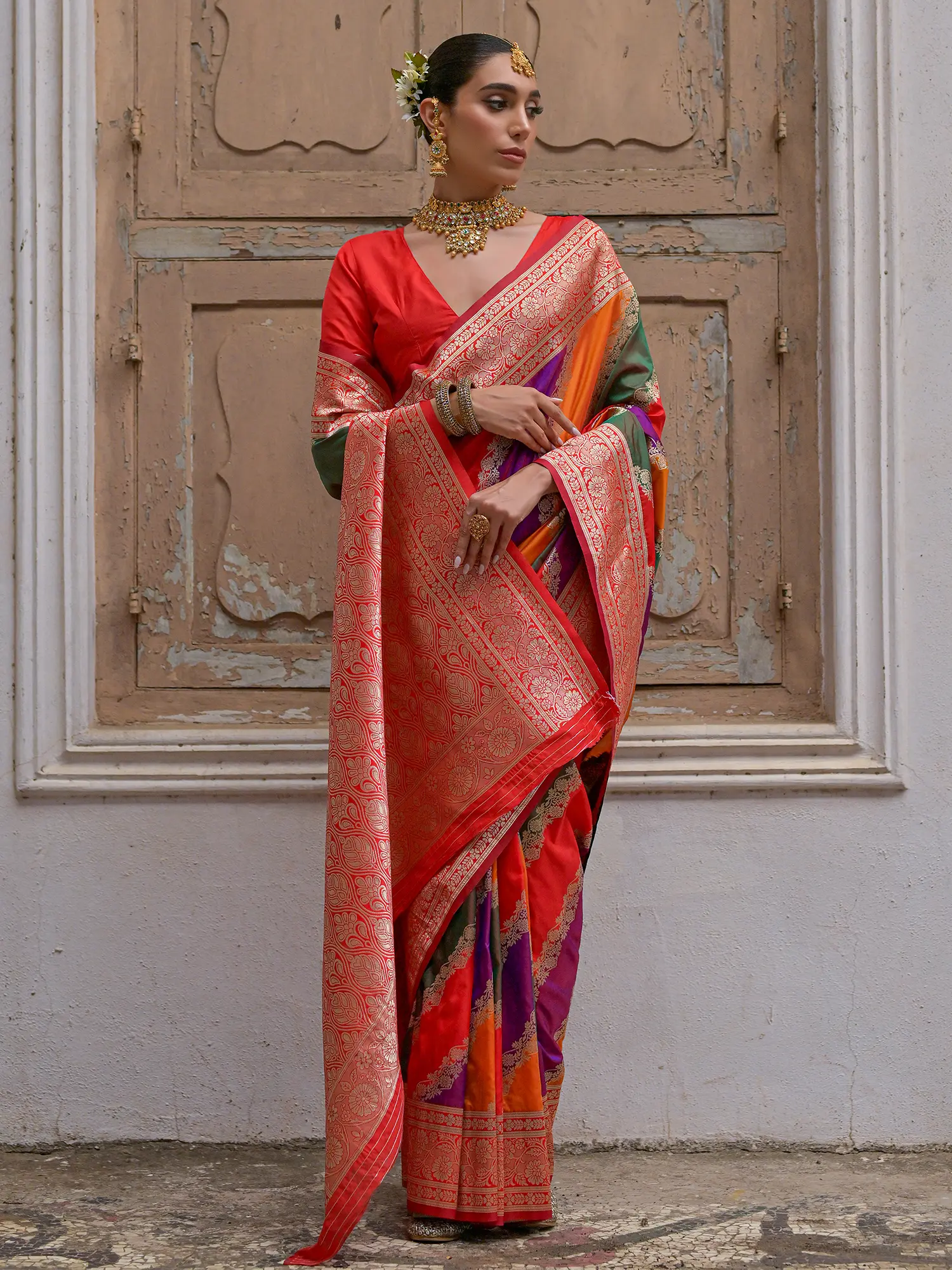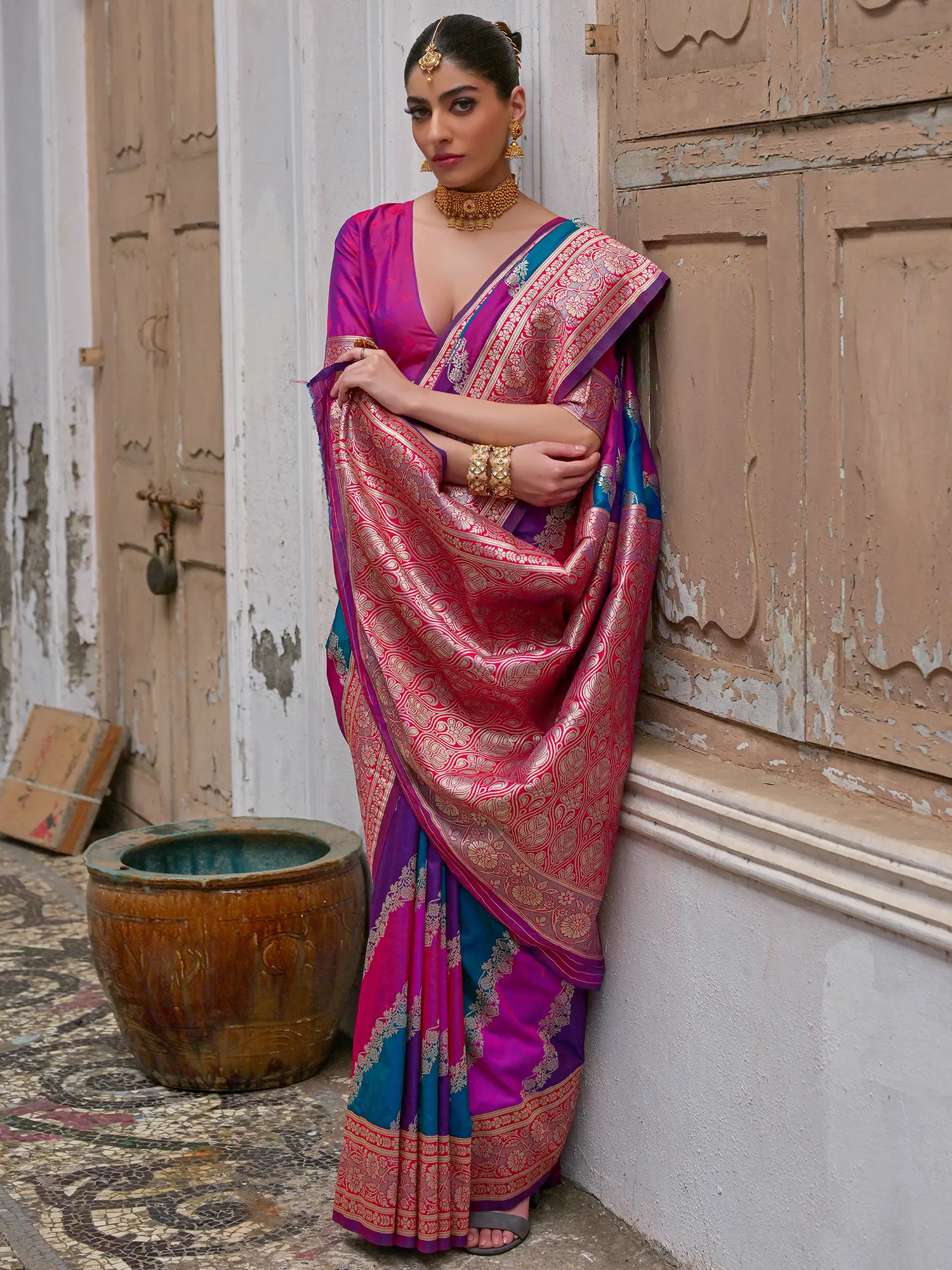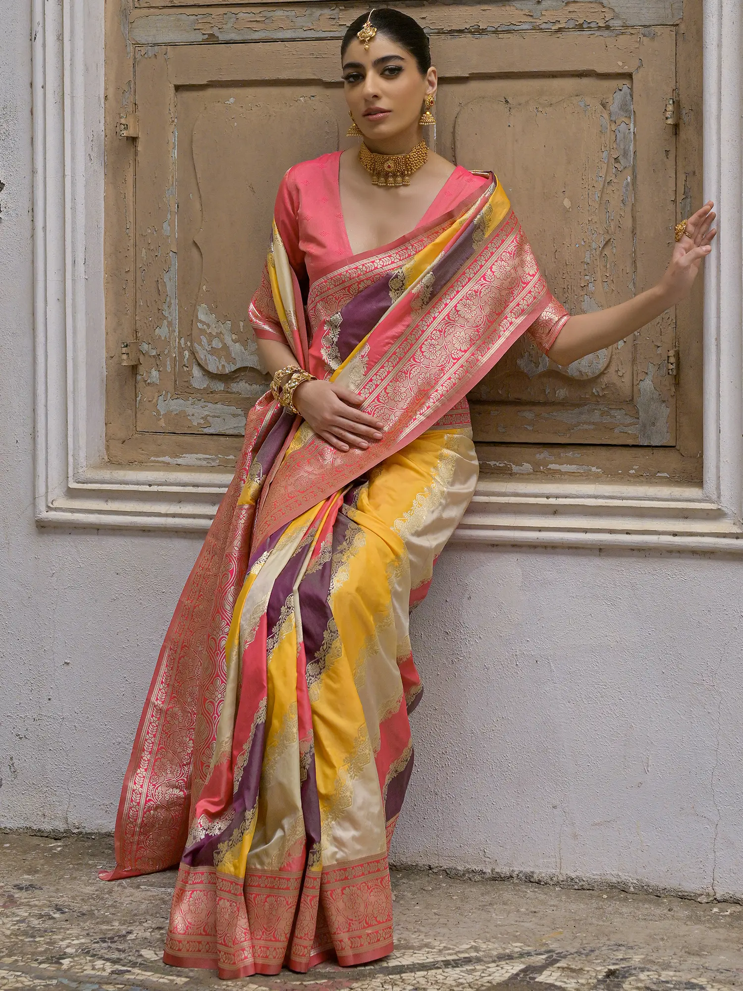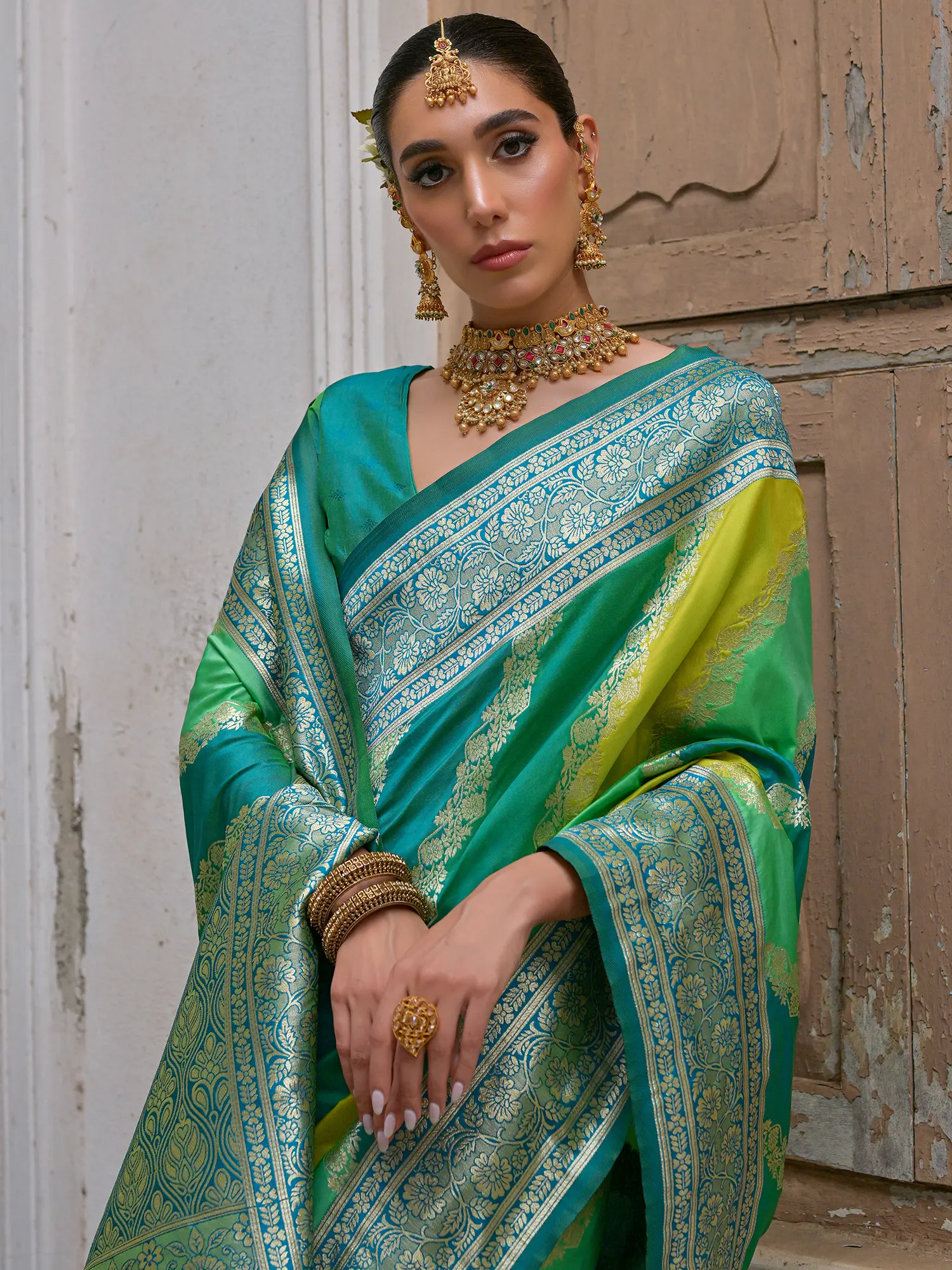 Contrast Broad Border Weaving Work Stunning Festive Wear Lichi Silk Saree With Blouse