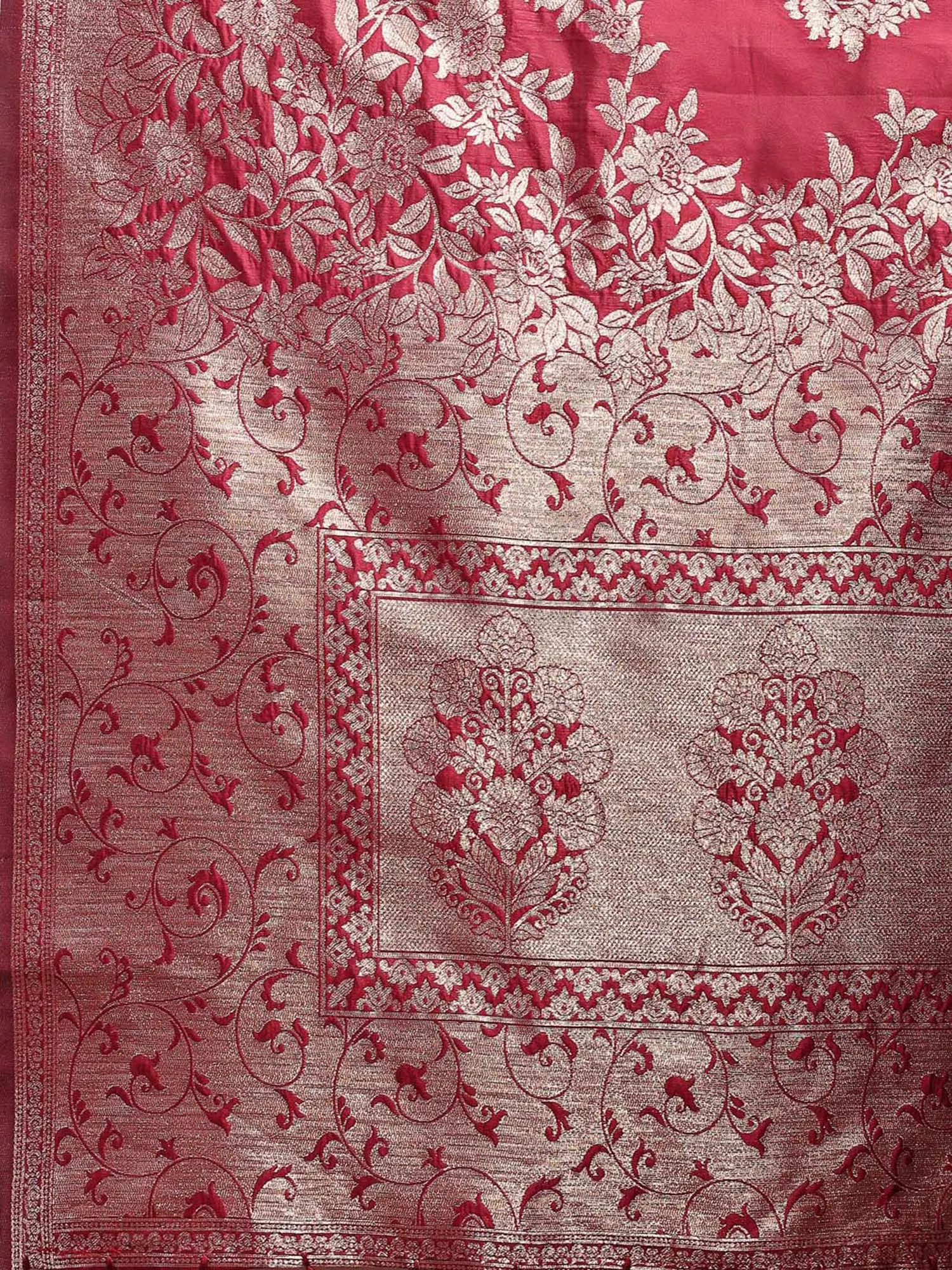 Brocaded Banarasi Silk Floral Butta Saree with Chakra Pattern Wide Border