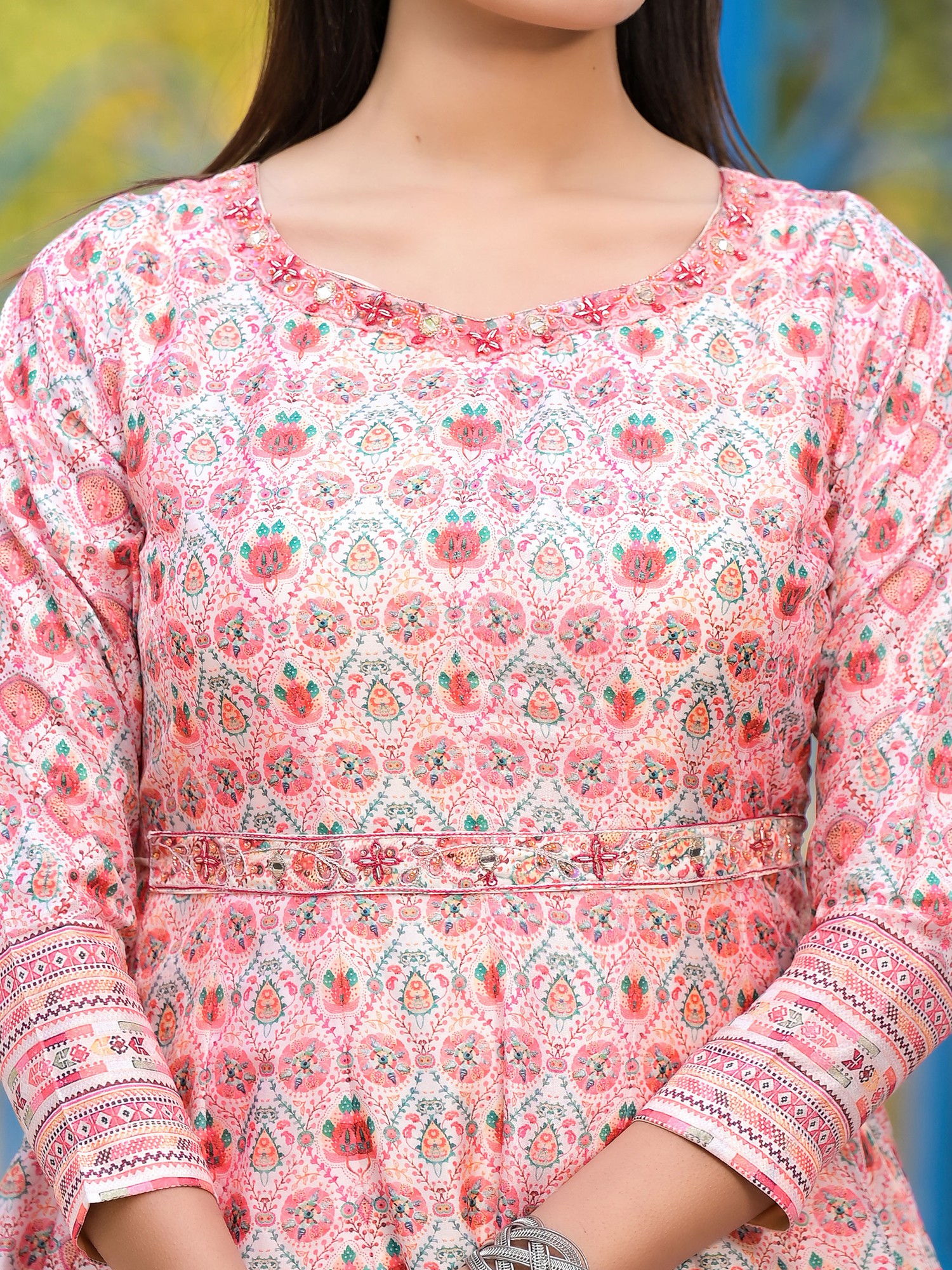 Cotton Salwar Kameez with Bundi Motif Floral Weave on The Body and Straight Style Pant