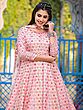 Mellow-Yellow Pure Cotton Anarkali Style Salwar Suit with Thread Embroidered Floral Roses and Scalloped Border Net Dupatta