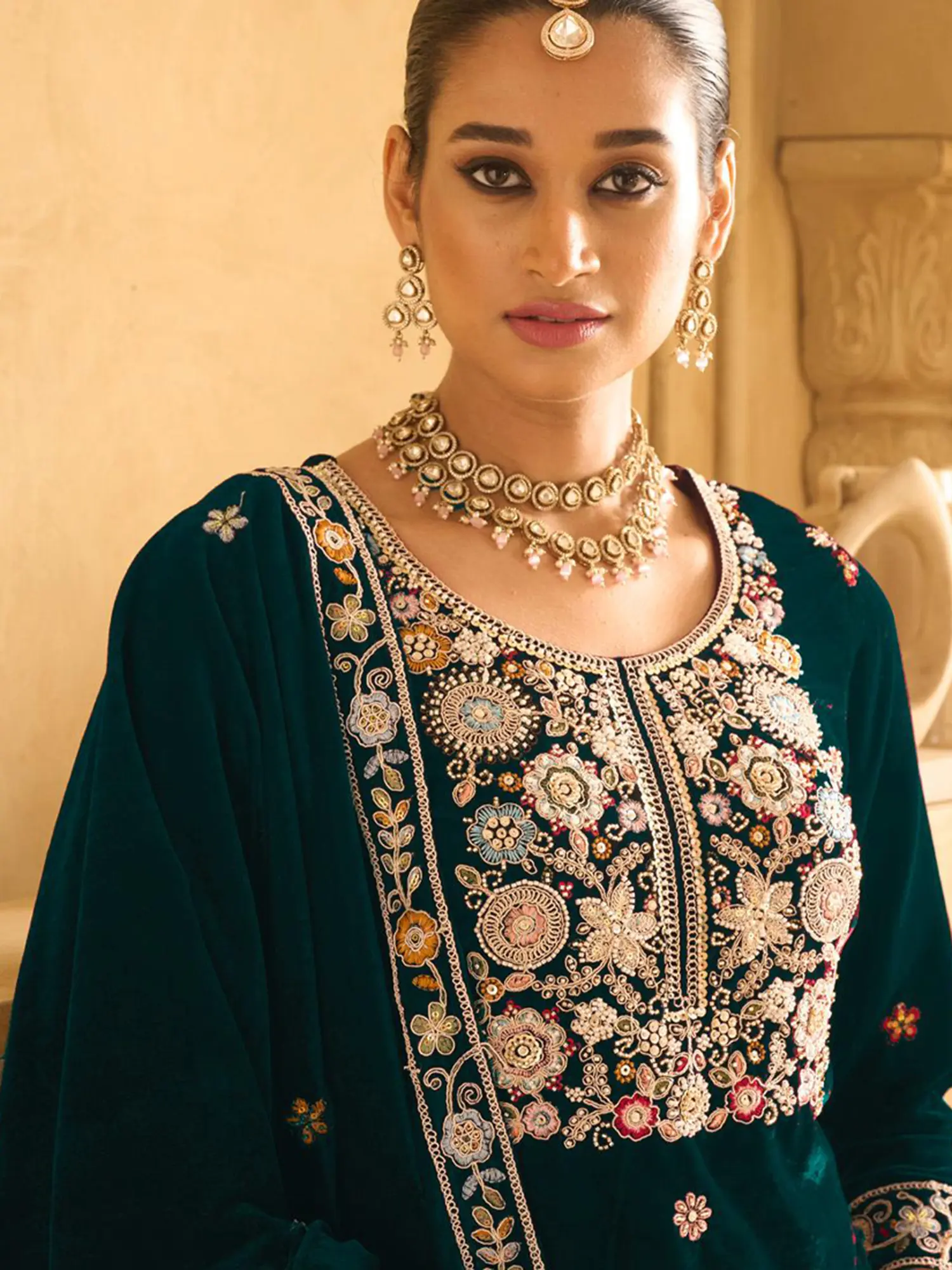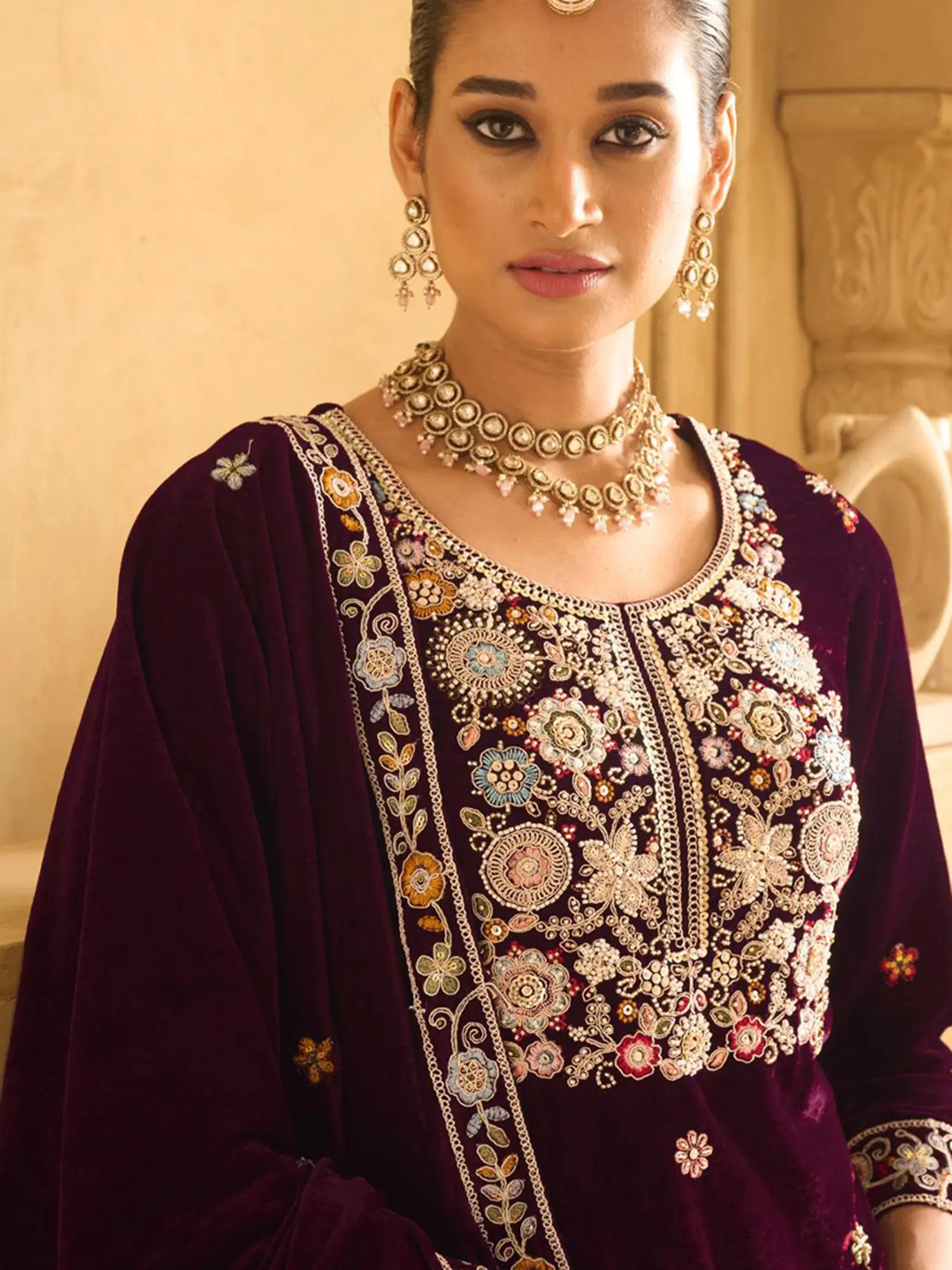 Elderberry Floral Aari Embroidered Salwar Kameez Suit with Dupatta