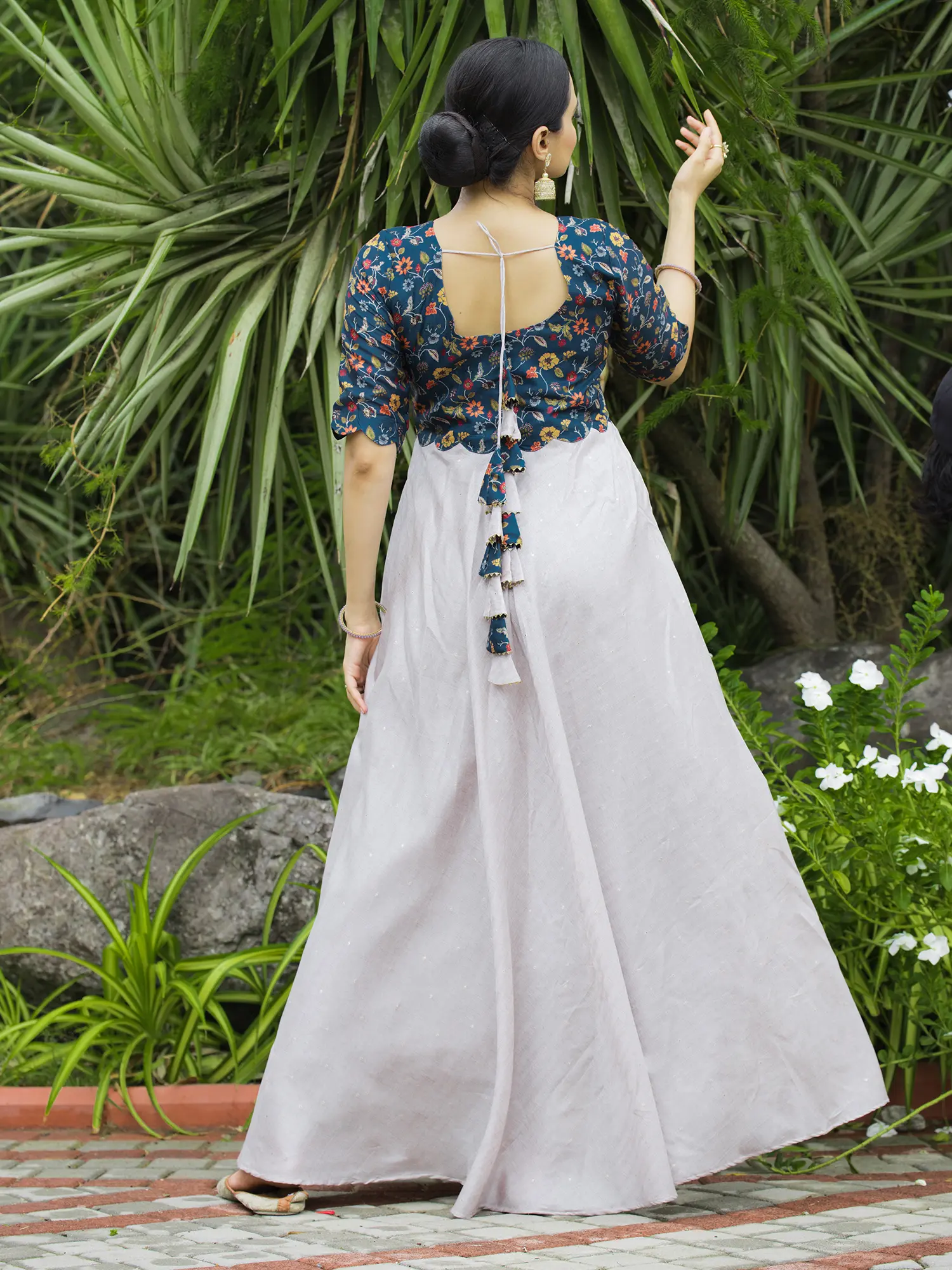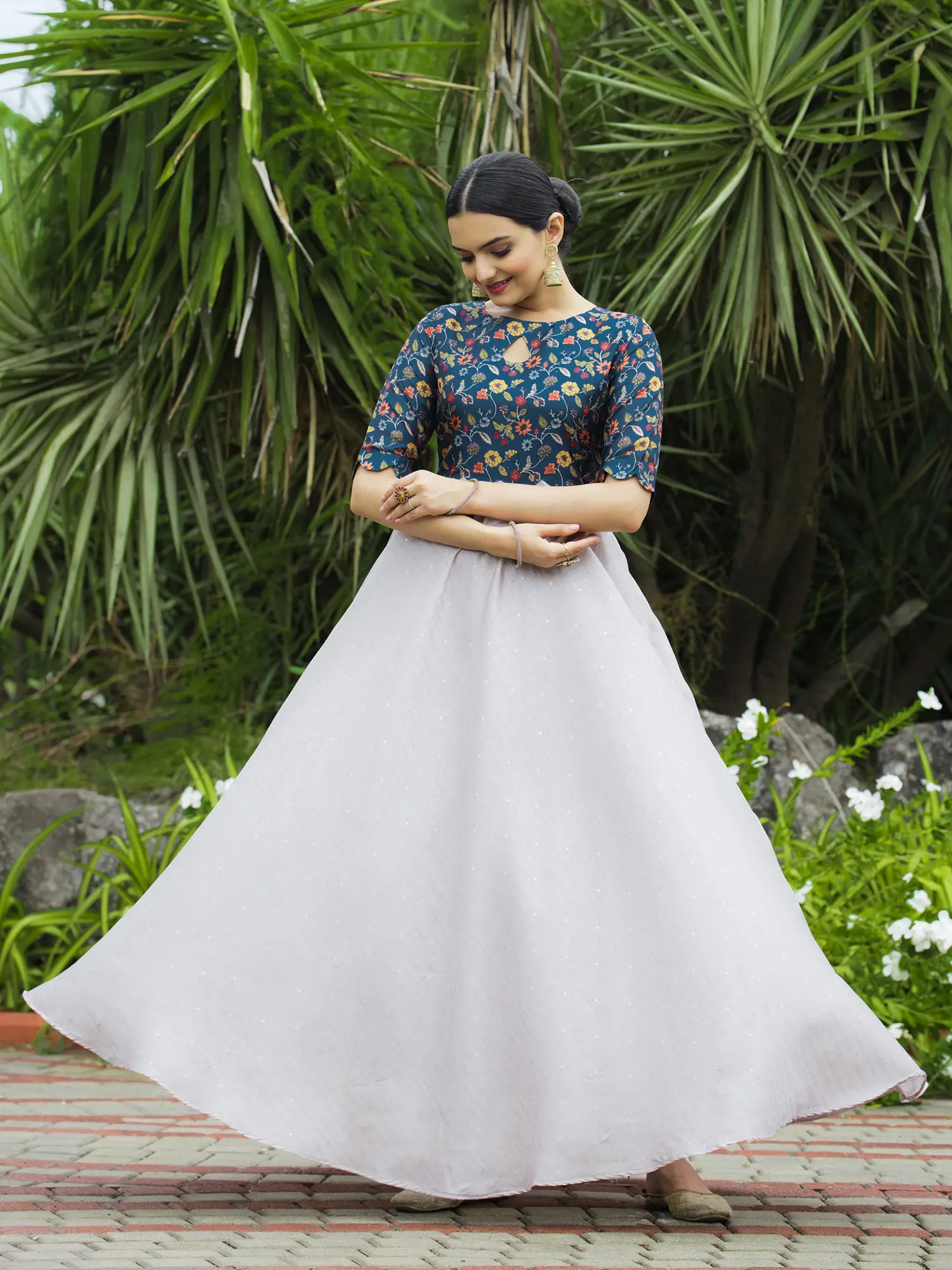 Old Lavender Cotton Silk Digital Print Gown With Bottom & Cotton Duppatta