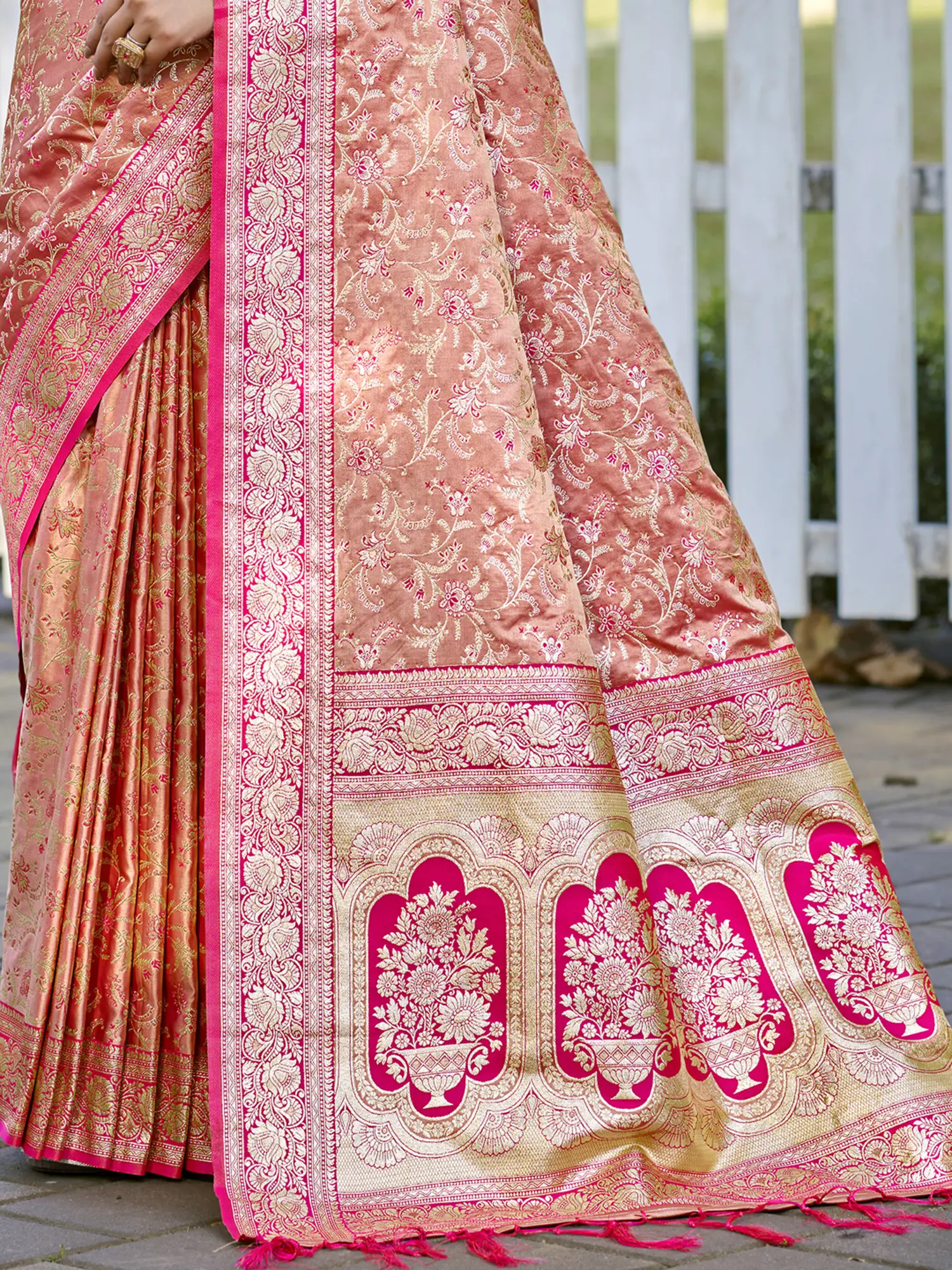 Silk Floral Motifs Fancy Party Wear Saree With Attractive Weaved Pallu