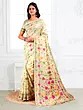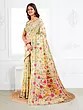 Green-Lily Floral Printed Saree with Tasseled Pallu and Wide Border