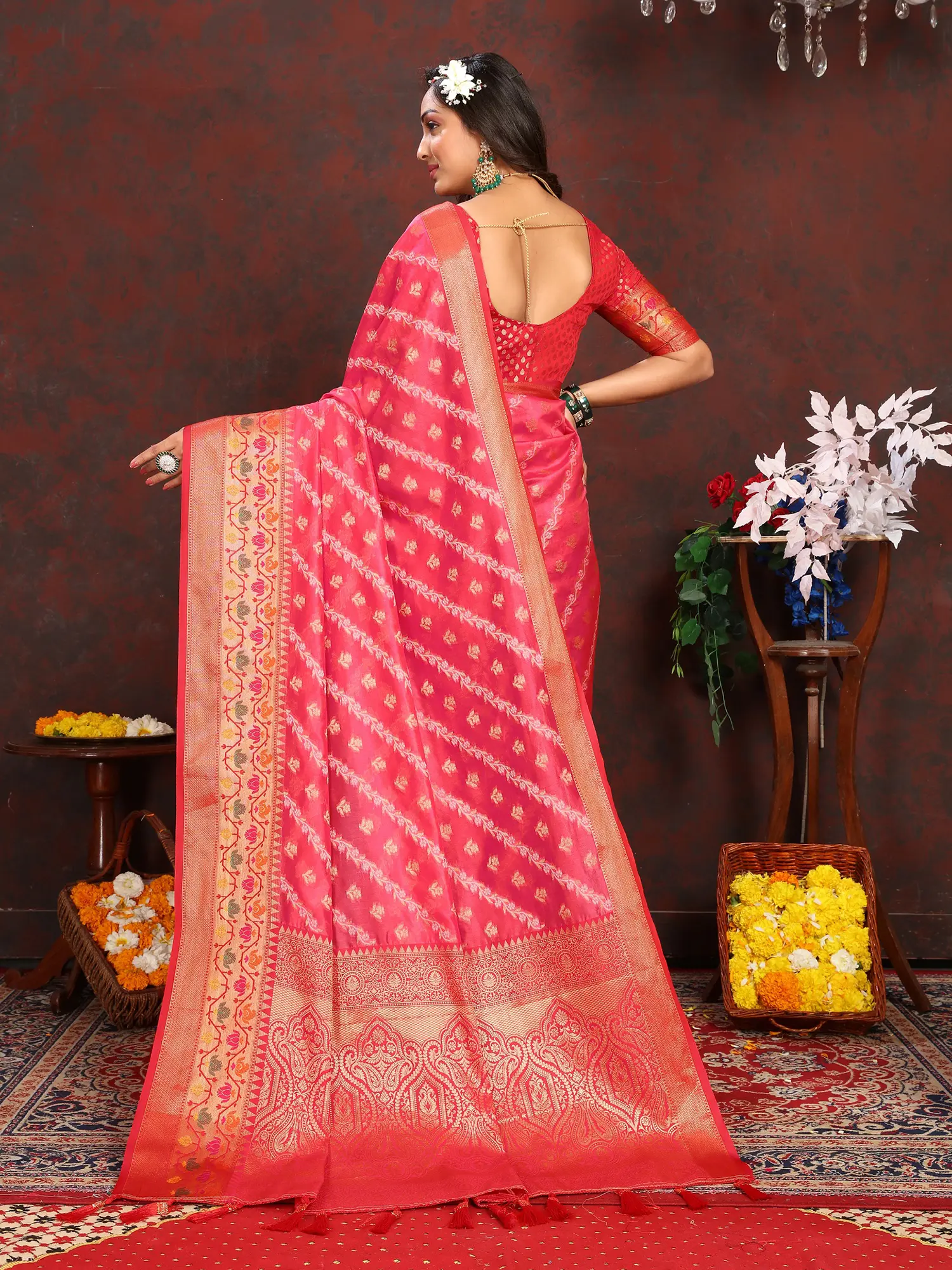 Traditional Banarasi Saree with Woven Bootis and Zari Weave on Pallu