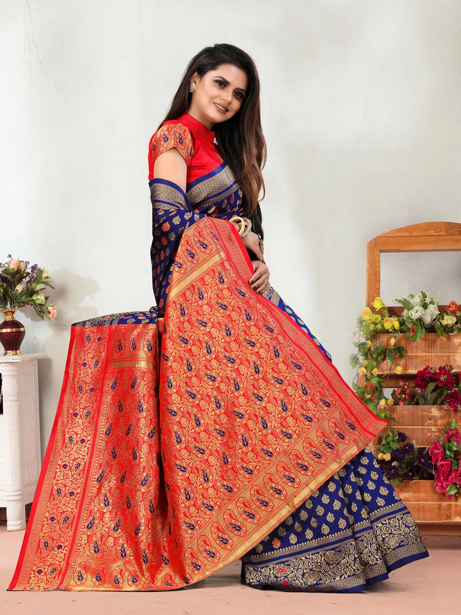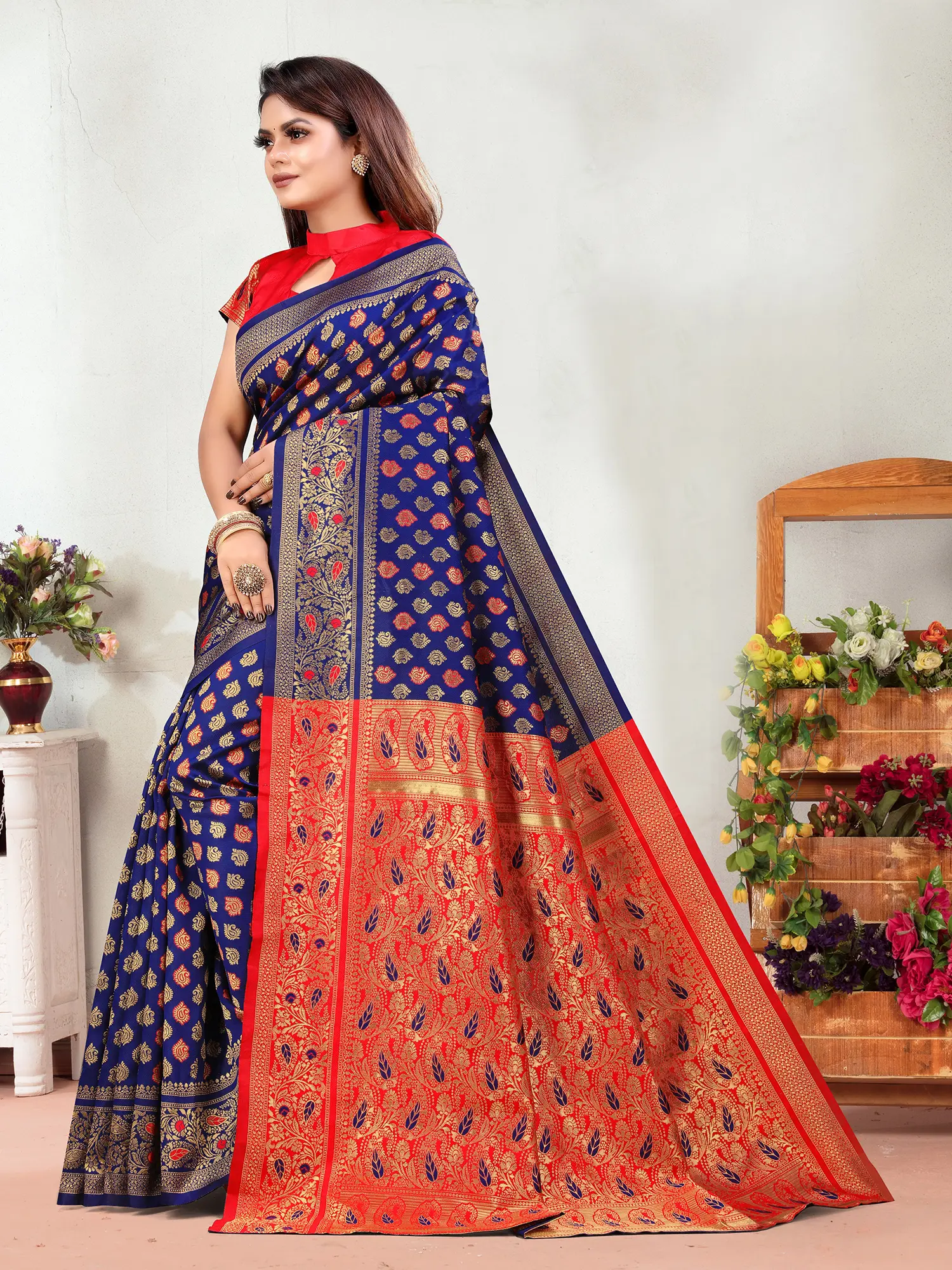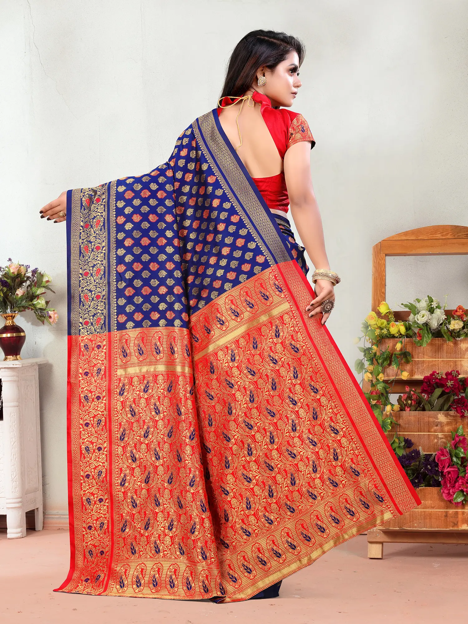 Embellished Grandeur: The Wide Border and Contrasting Pallu