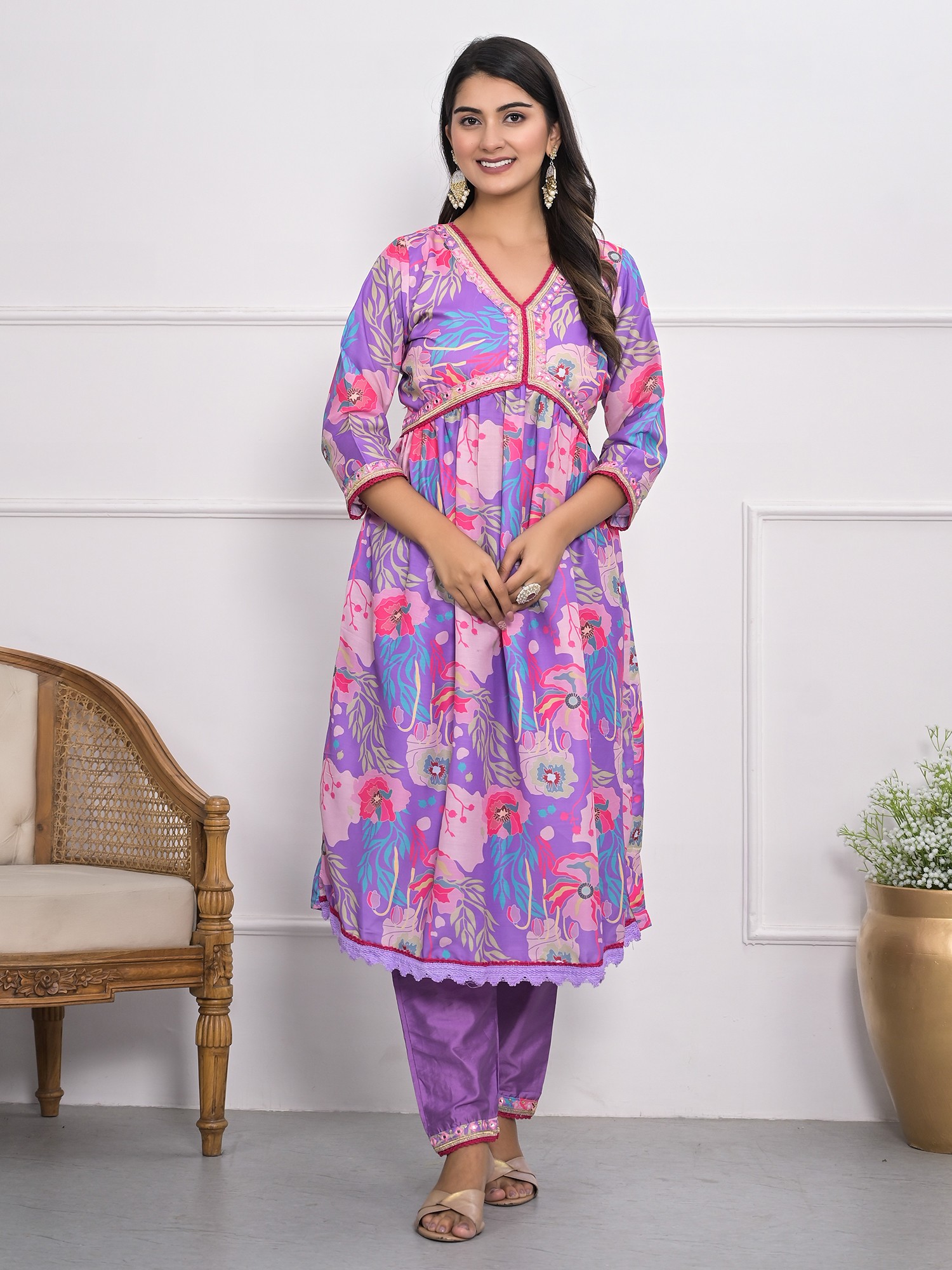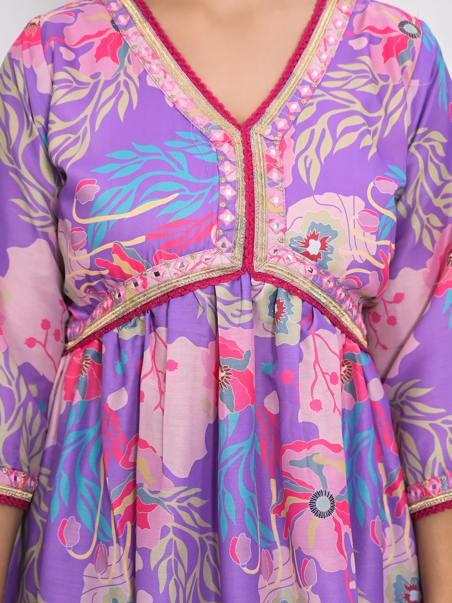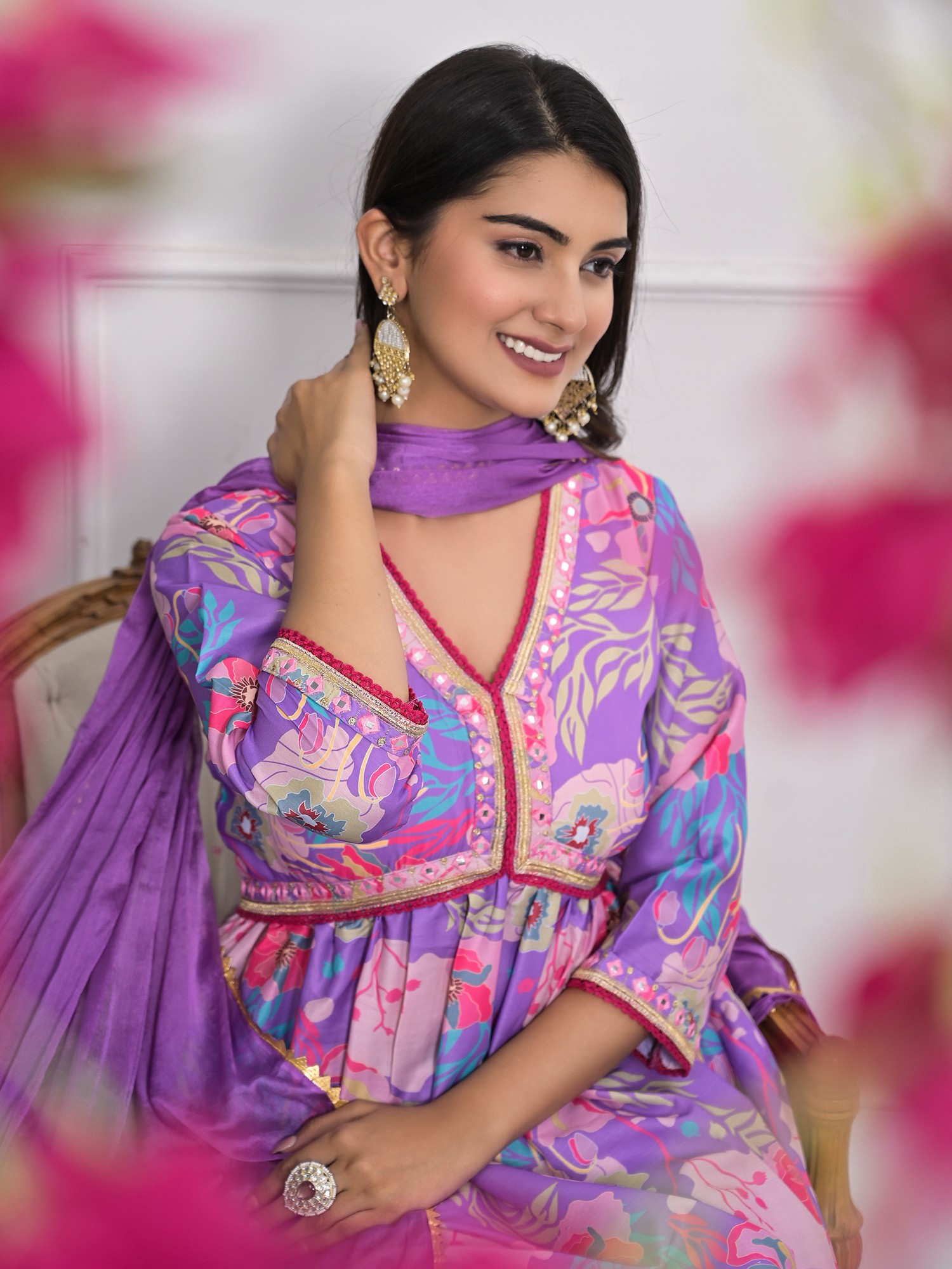 Pure Muslin Digital Floral Print Designer Anarkali Style Festive Wear Kurti And Bottom With Dupatta