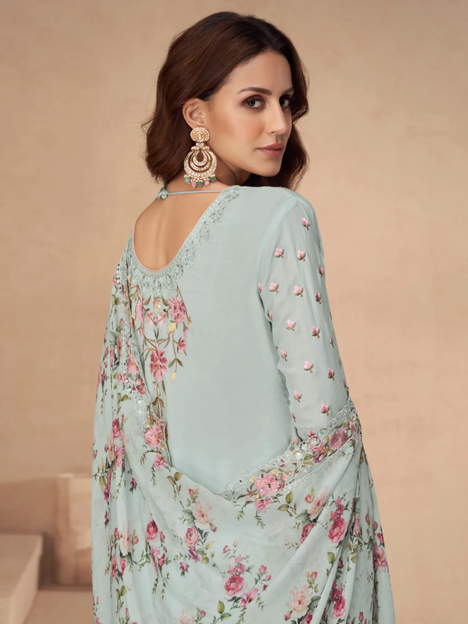 Georgette Butti Thread-Sequins Embroidered Palazzo Salwar Suit with Dupatta