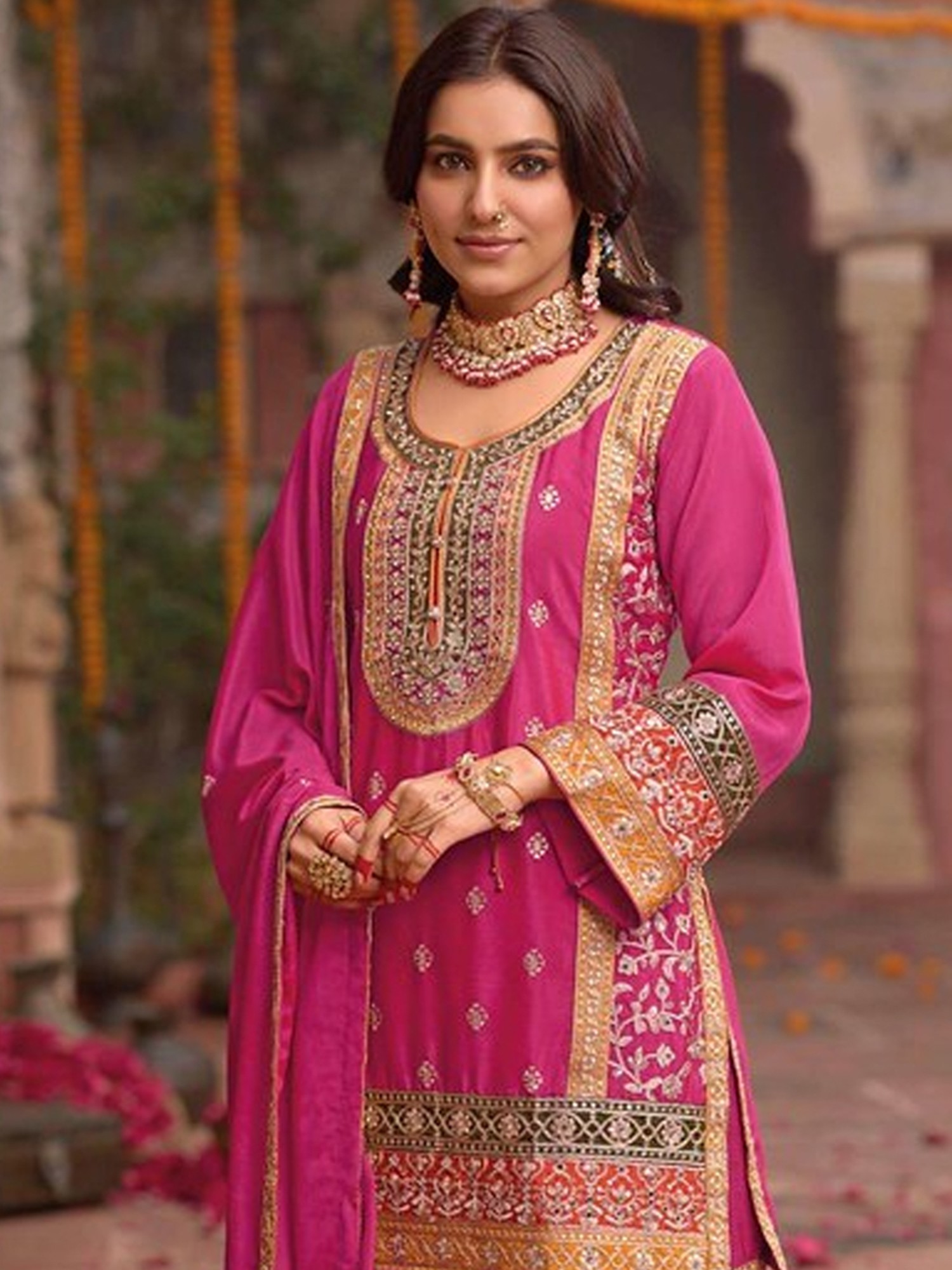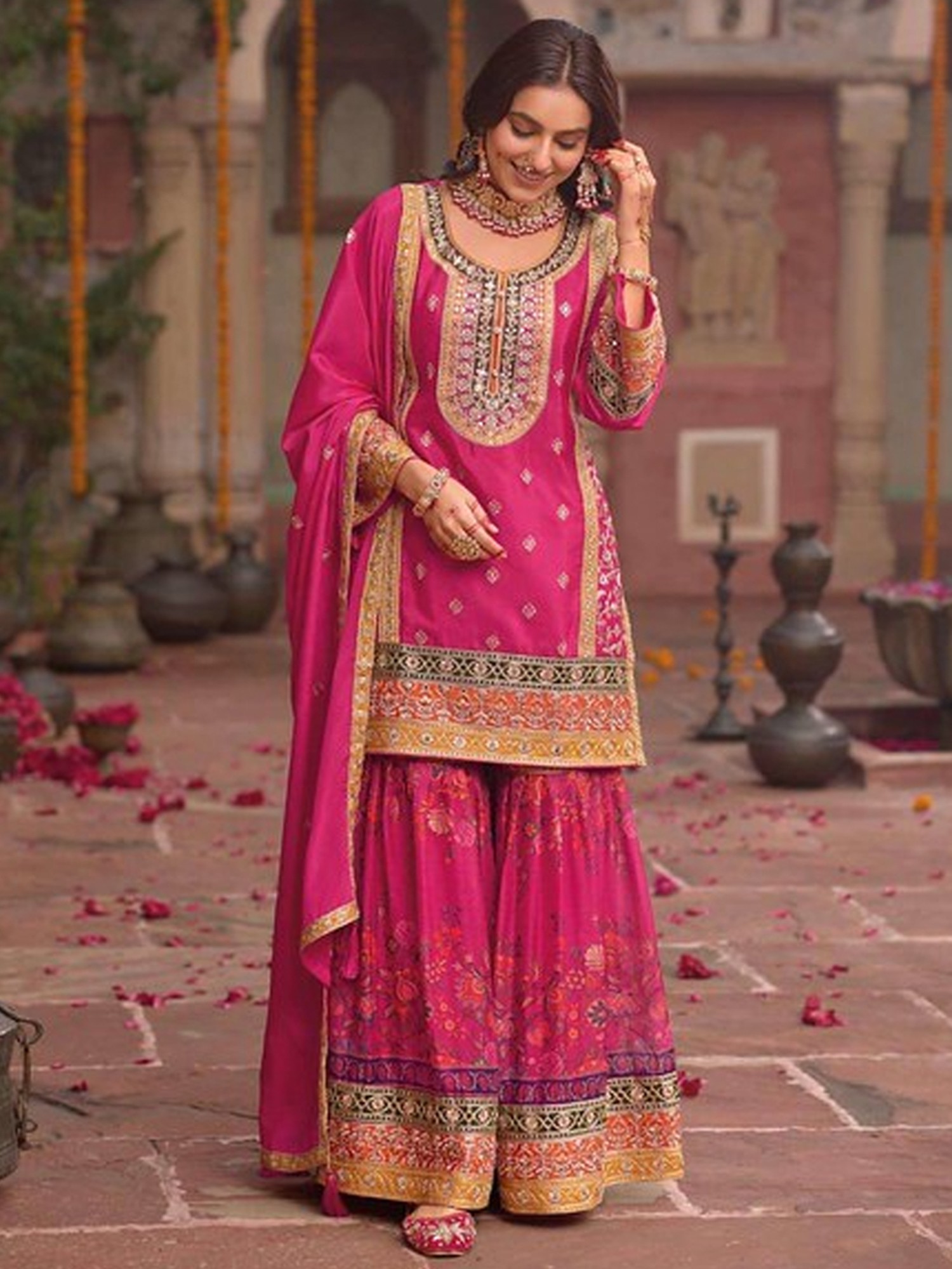 Women's Heavy Thread Sequin Embroidery Chinon Gharara Suit With Dupatta For Grand Festive And Wedding Wear
