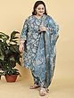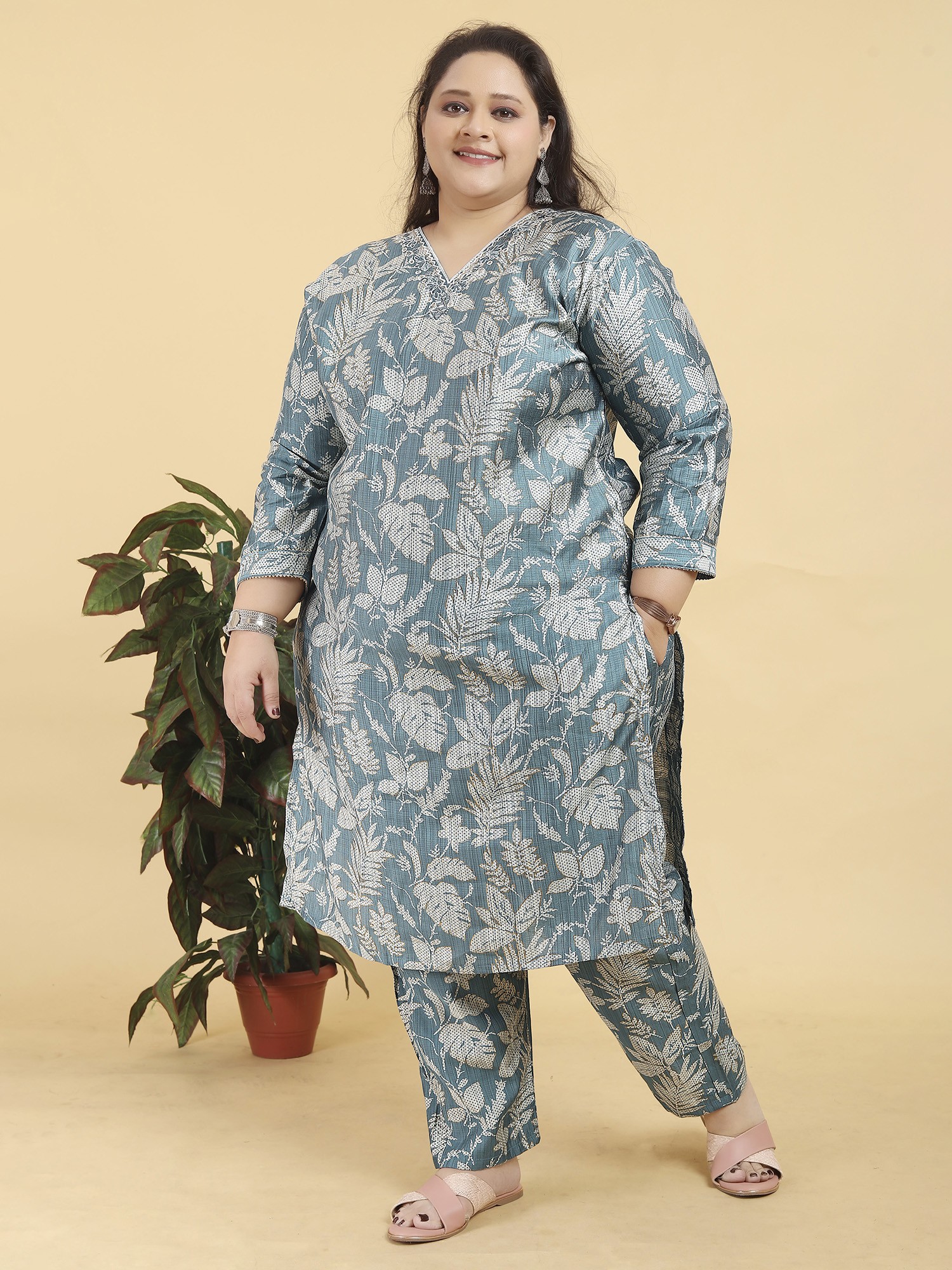 Discover a harmonious blend of comfort and style with this beautifully crafted ensemble. The calming hue of the kurta and matching bottom is instantly soothing, making it an ideal choice for relaxed outings and everyday elegance. The delicate floral print adds a touch of femininity and grace, ensuring you stand out with understated sophistication. The intricate detailing around the neckline elevates the design, showcasing meticulous craftsmanship and a keen eye for detail.