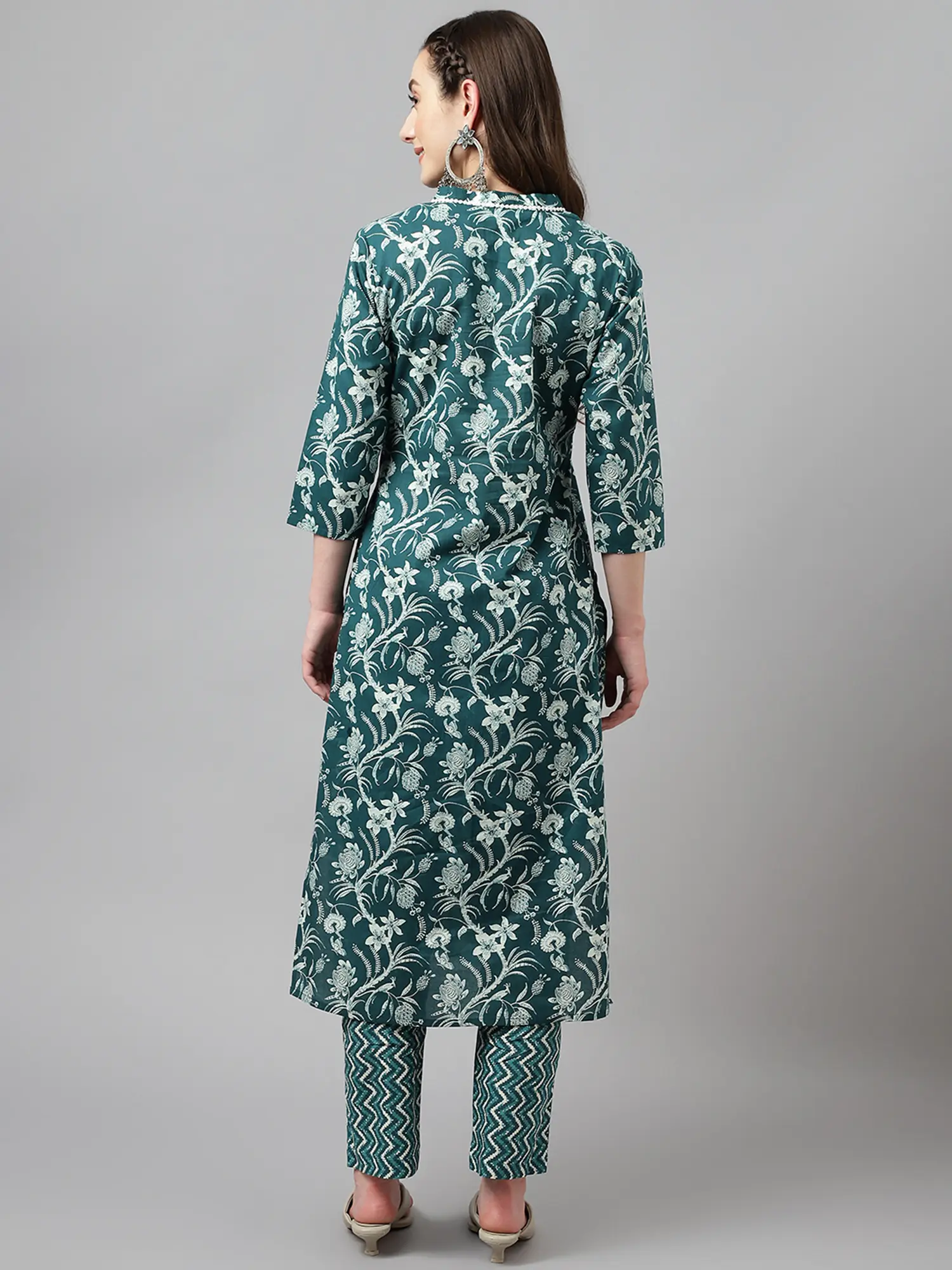 Deep-Forest Plain Salwar Suit with Stripe Printed Dupatta
