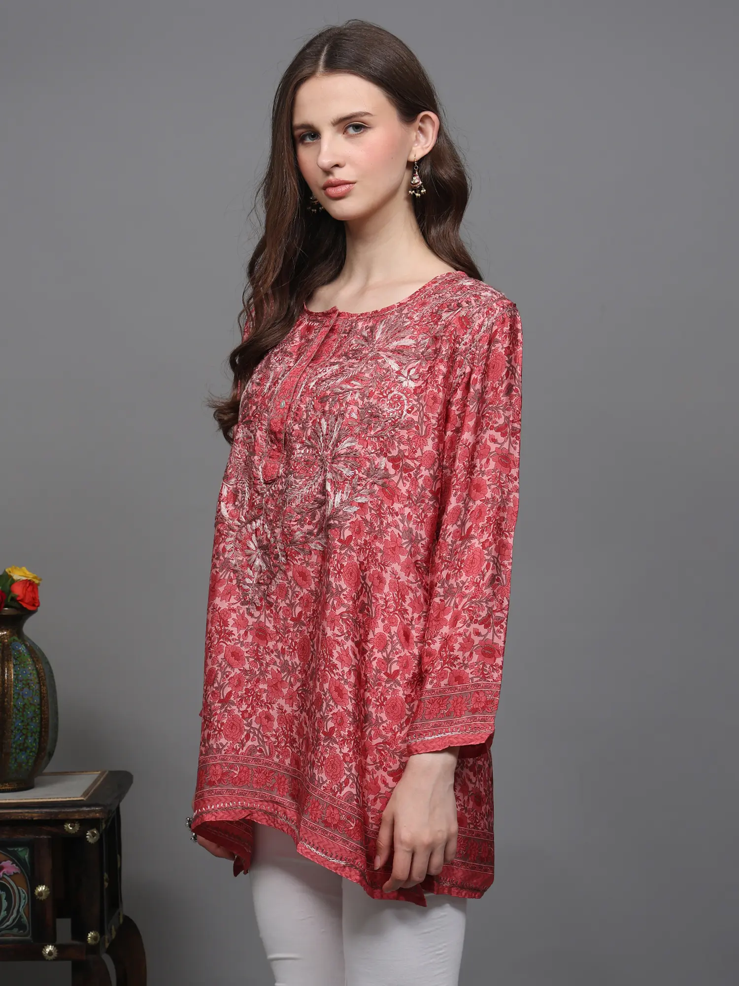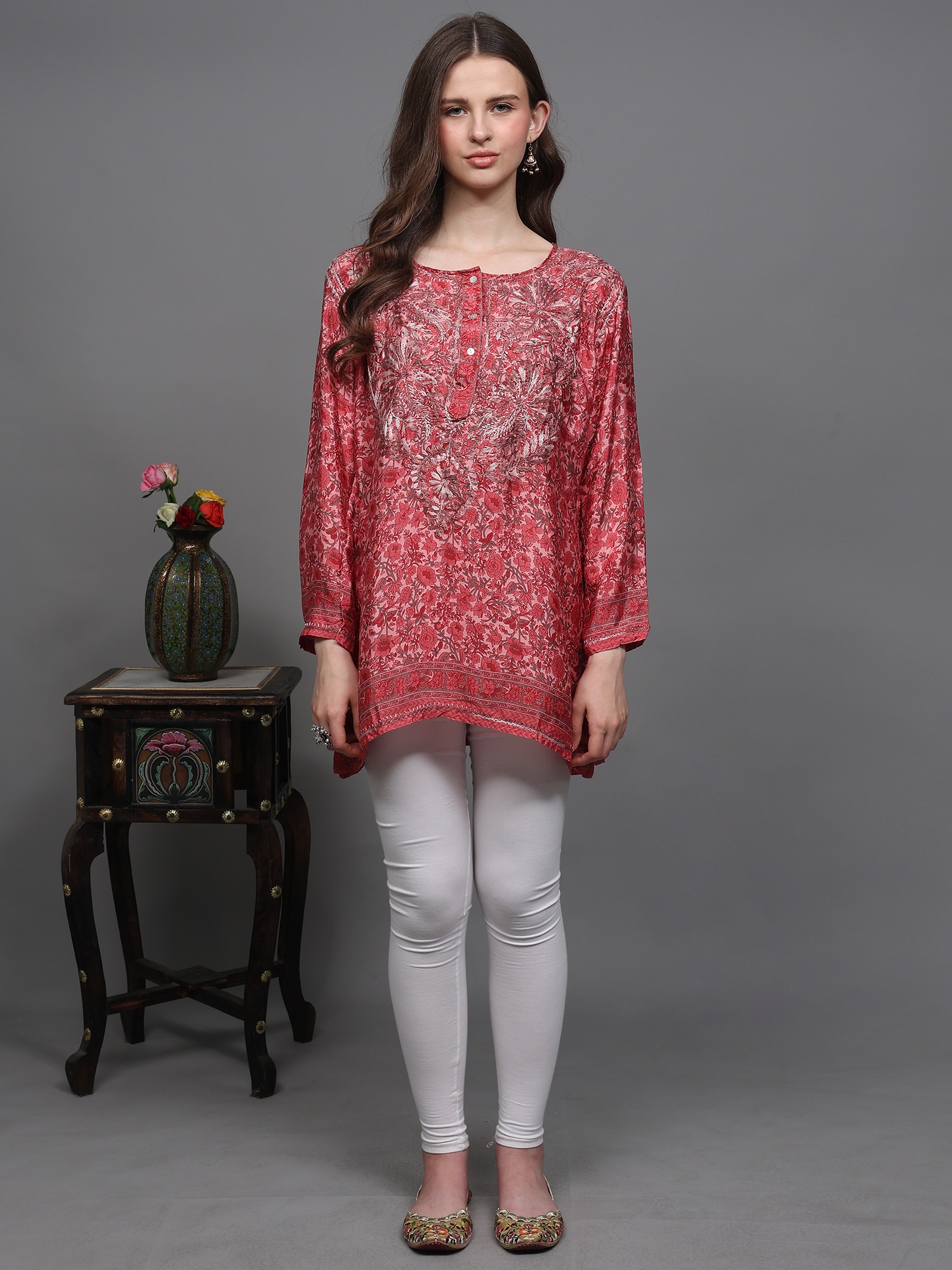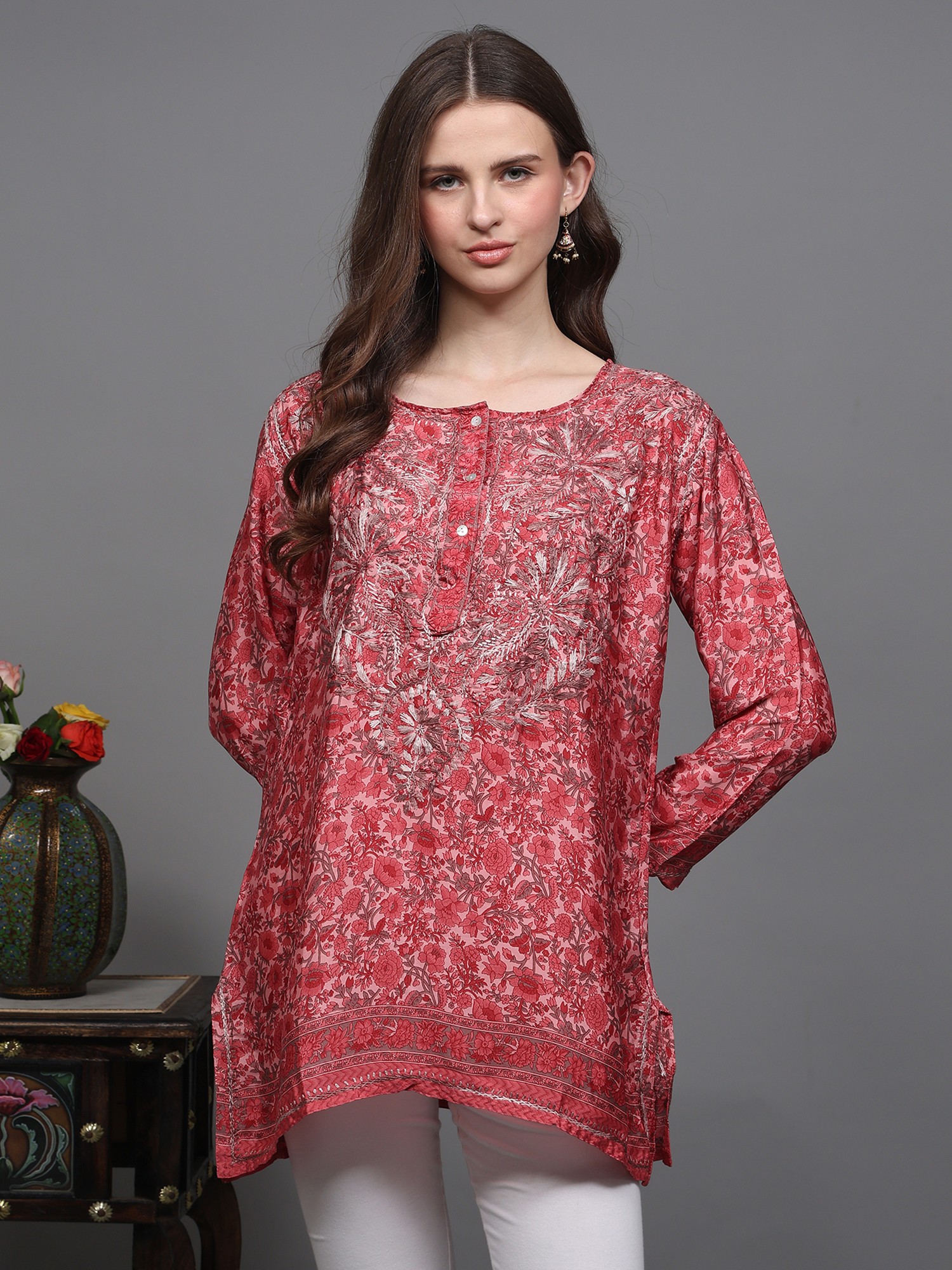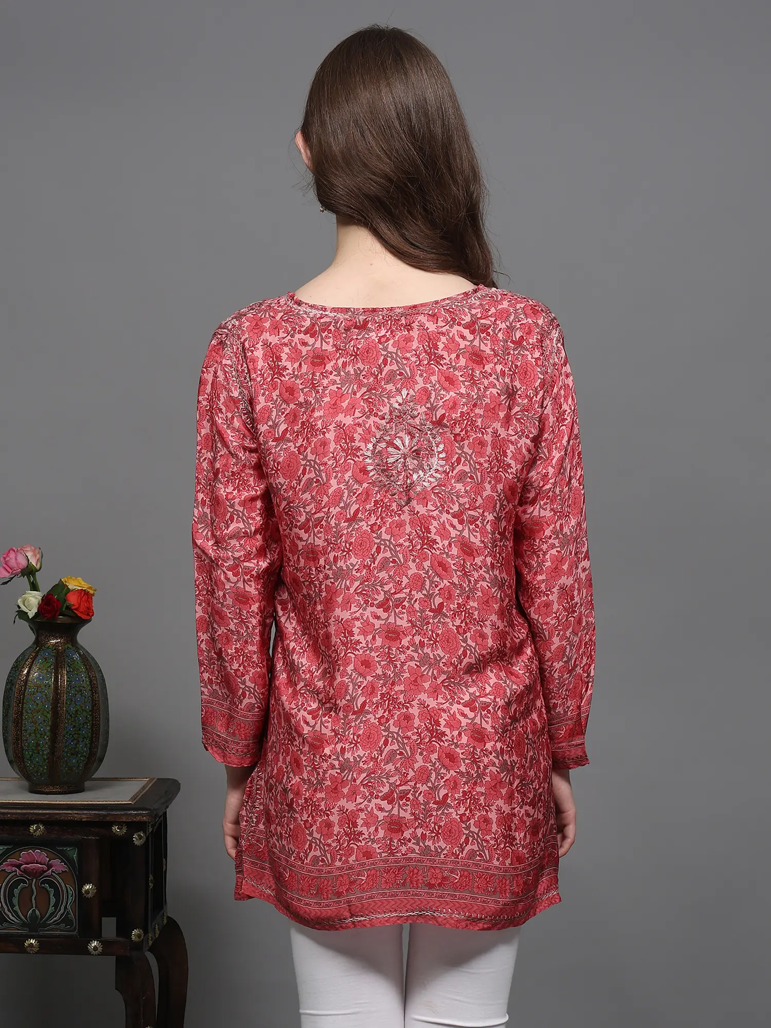 Cotton Short Kurti with Floral Lukhnavi Chikankari Embroidery by Hand
