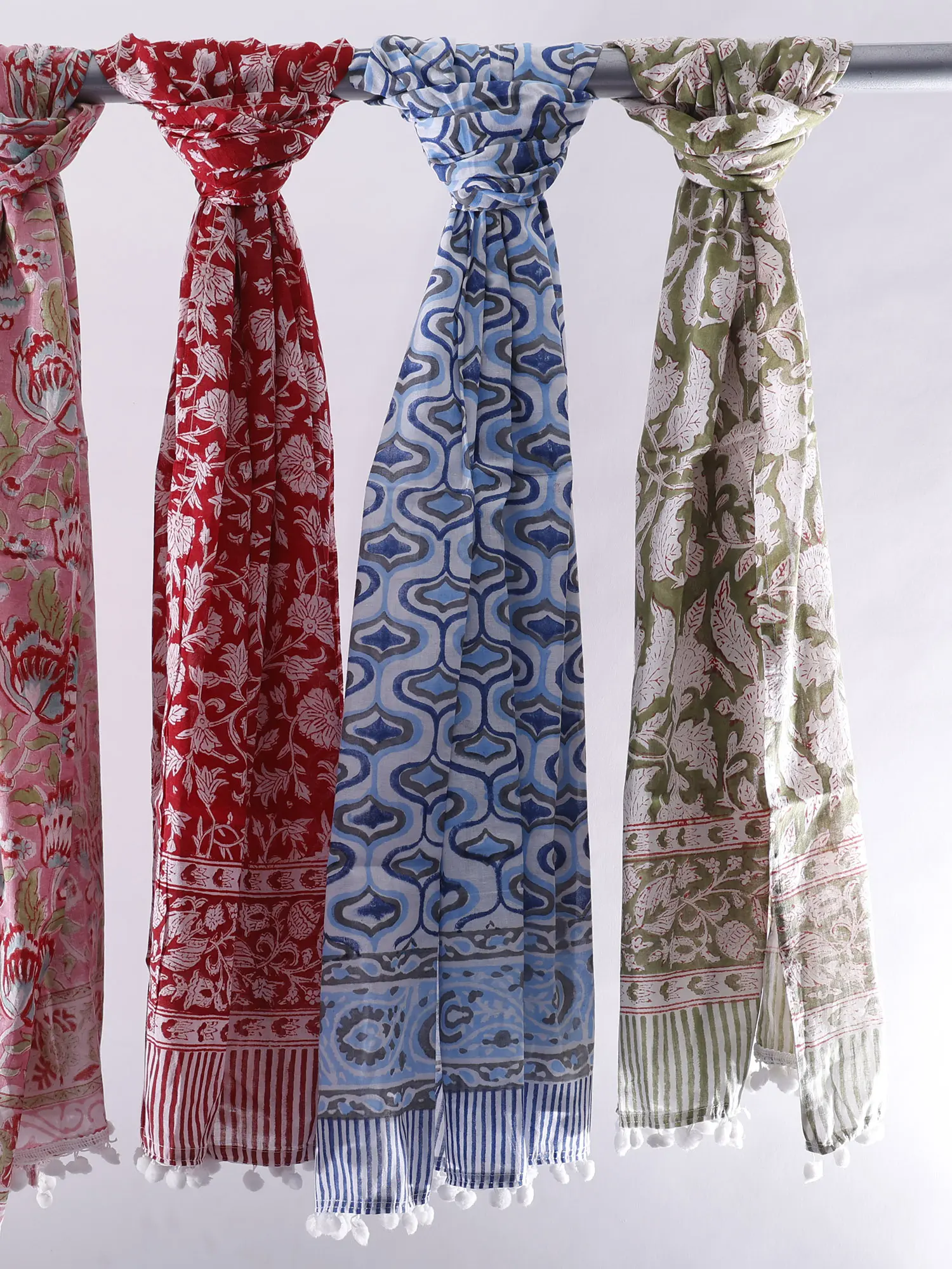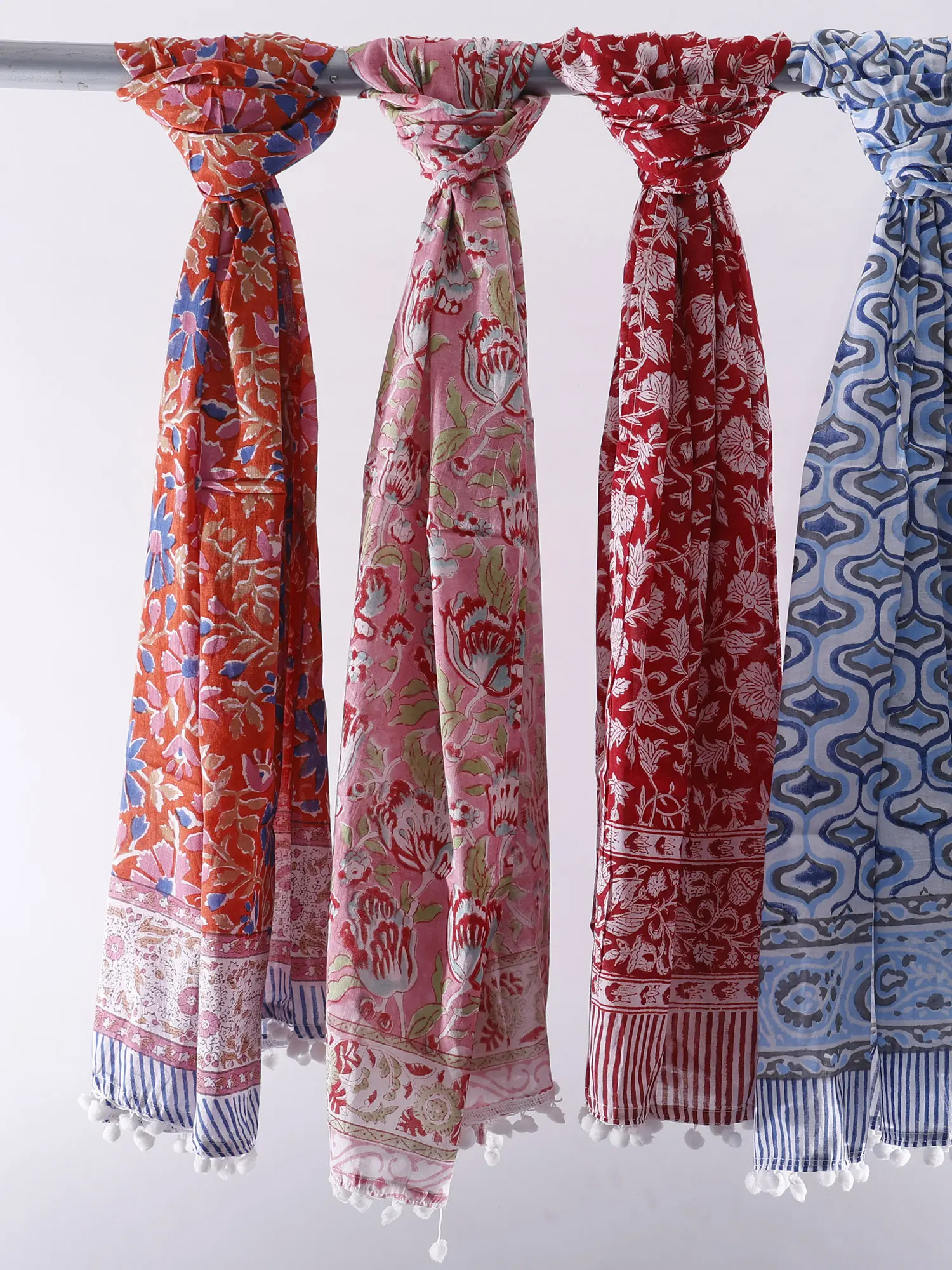 Block-Printed Lot of Five Pure Cotton Scarves from Jaipur