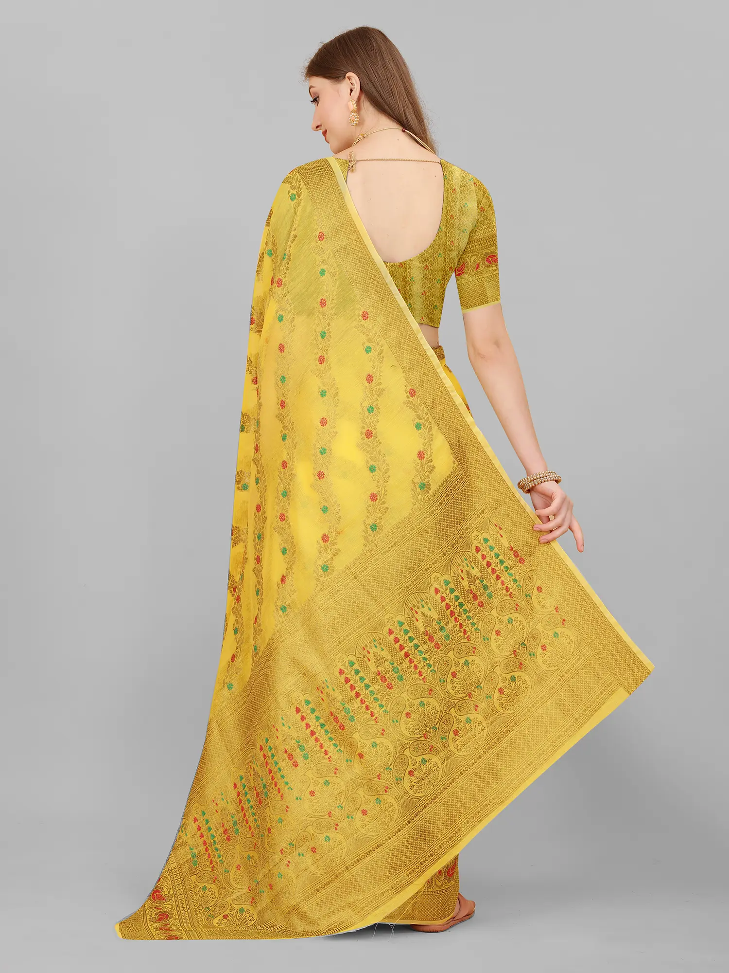 This saree is not just a garment; it's an investment in timeless style. Its versatile design and comfortable fabric make it a piece you'll reach for again and again. Dress it up with statement jewelry and heels for a formal event, or keep it simple with minimal accessories for a more relaxed occasion. No matter how you choose to style it, this saree is sure to turn heads and leave a lasting impression.