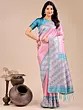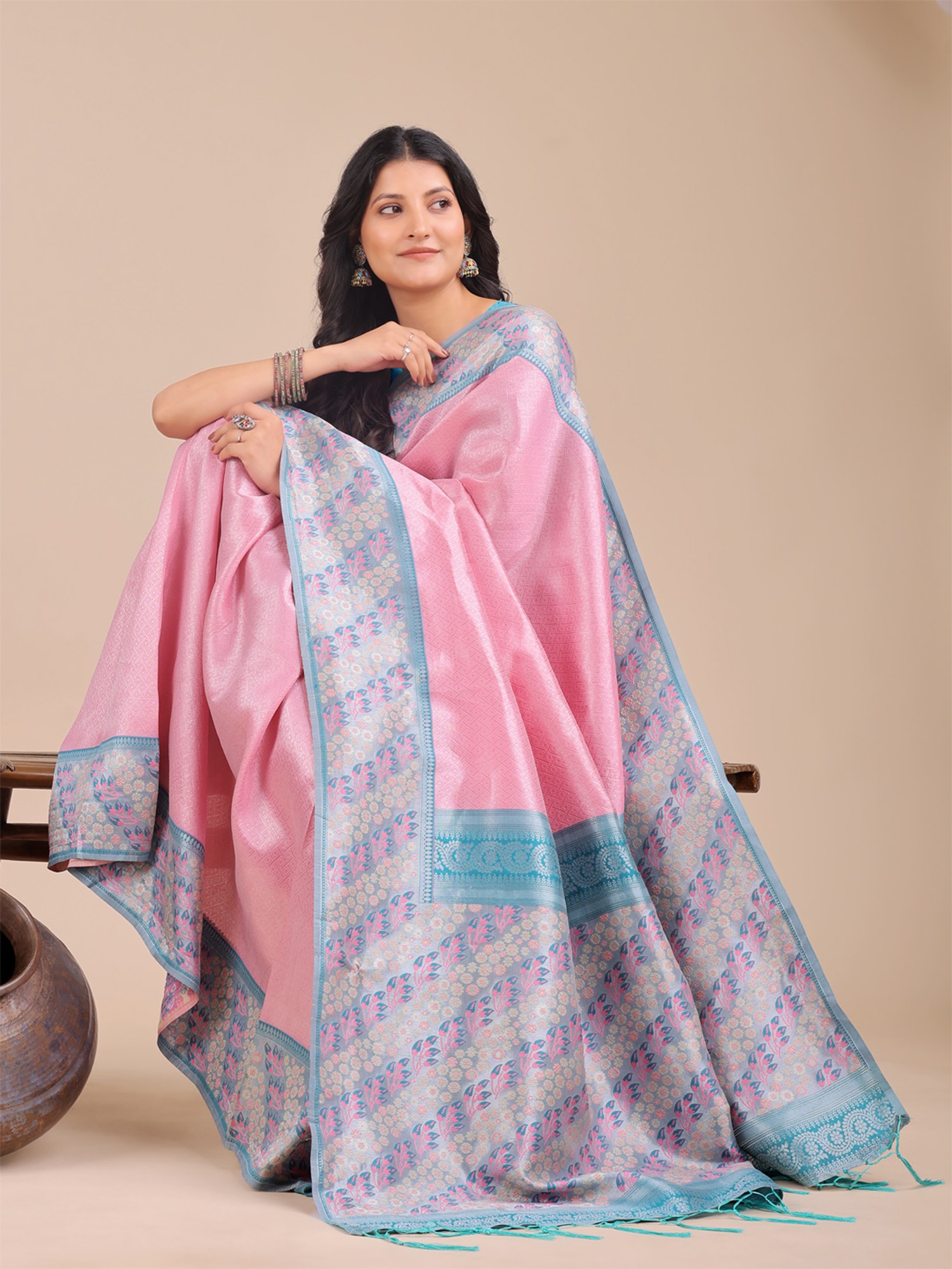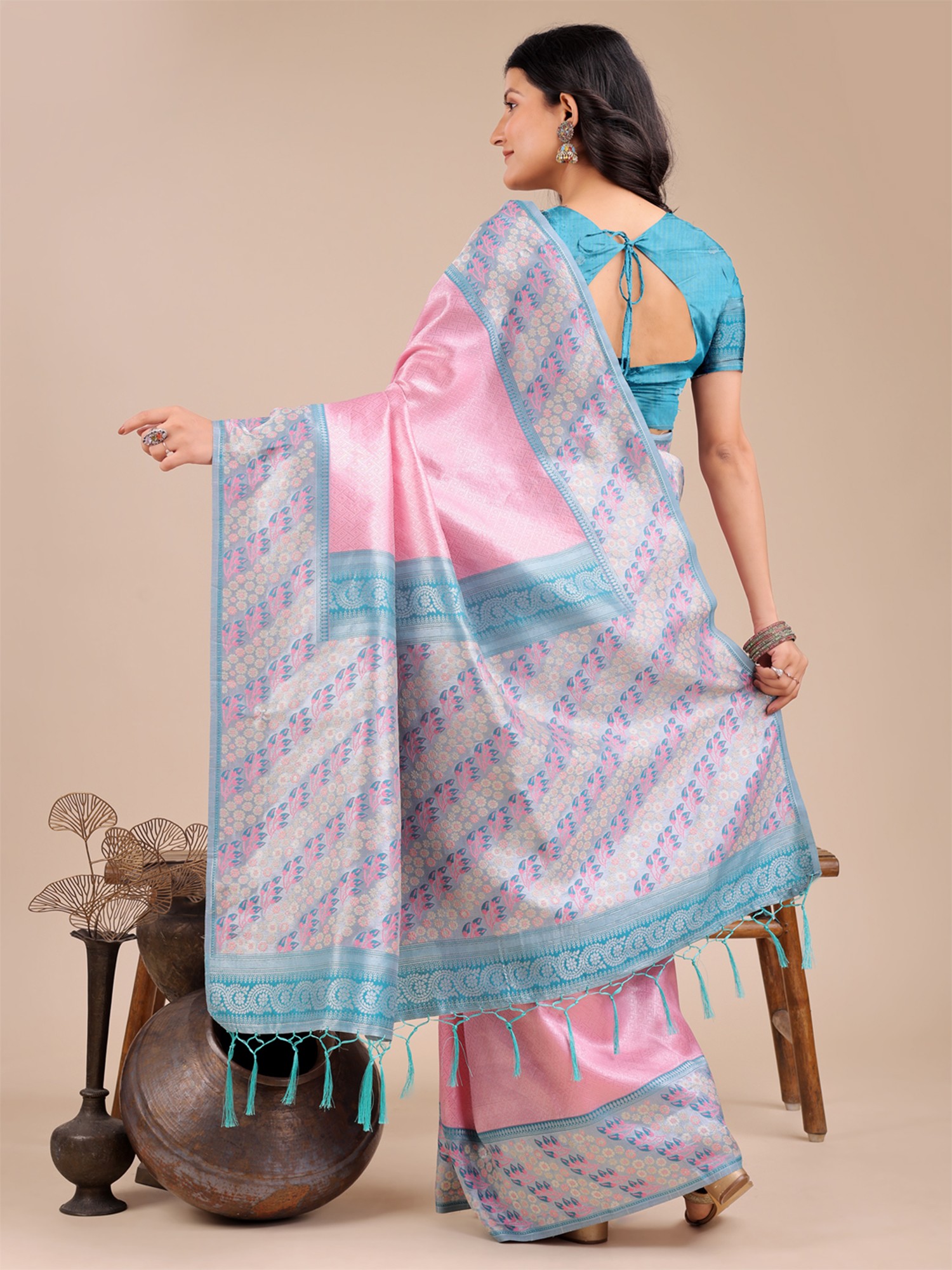 Art Silk Saree with Golden Stripes and Traditional Paisley Motifs All Over