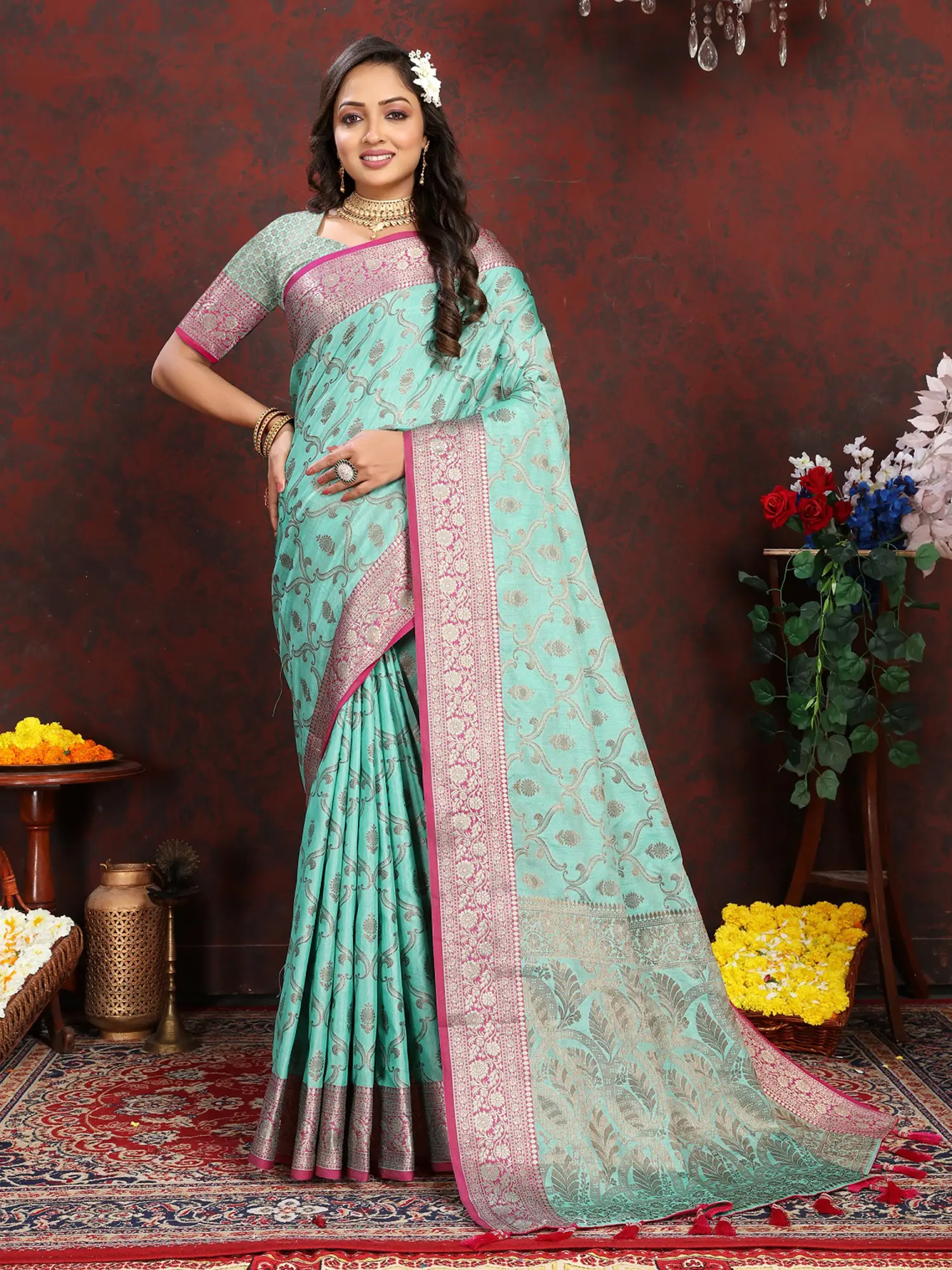 This Banarasi silk saree is more than just an attire; it's an heirloom piece that embodies sophistication and tradition. Its elegant design makes it suitable for a wide array of events, from grand weddings and festive celebrations to elegant evening gatherings. The natural drape of the silk ensures a flattering silhouette for every wearer, allowing you to exude confidence and grace. Pair it with traditional gold jewelry and a statement clutch for a complete, unforgettable look. This saree promises to be a cherished addition to your ethnic wardrobe, offering a blend of classic beauty and contemporary appeal.