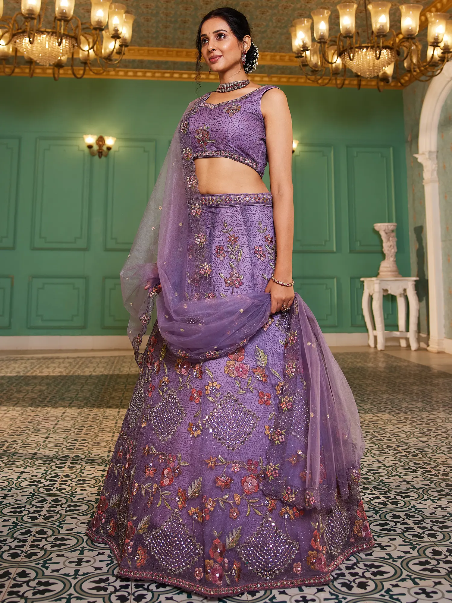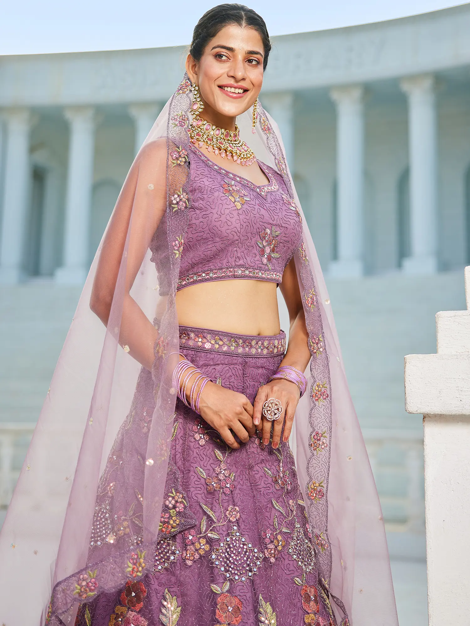 Light-Pink Soft Net Thread Embroidered Lehenga Choli with Sheer Dupatta