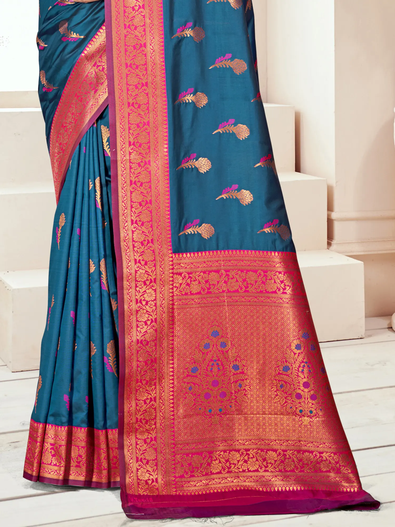 Flower Motif Silk Saree With Designer Pallu For Traditional Occasion