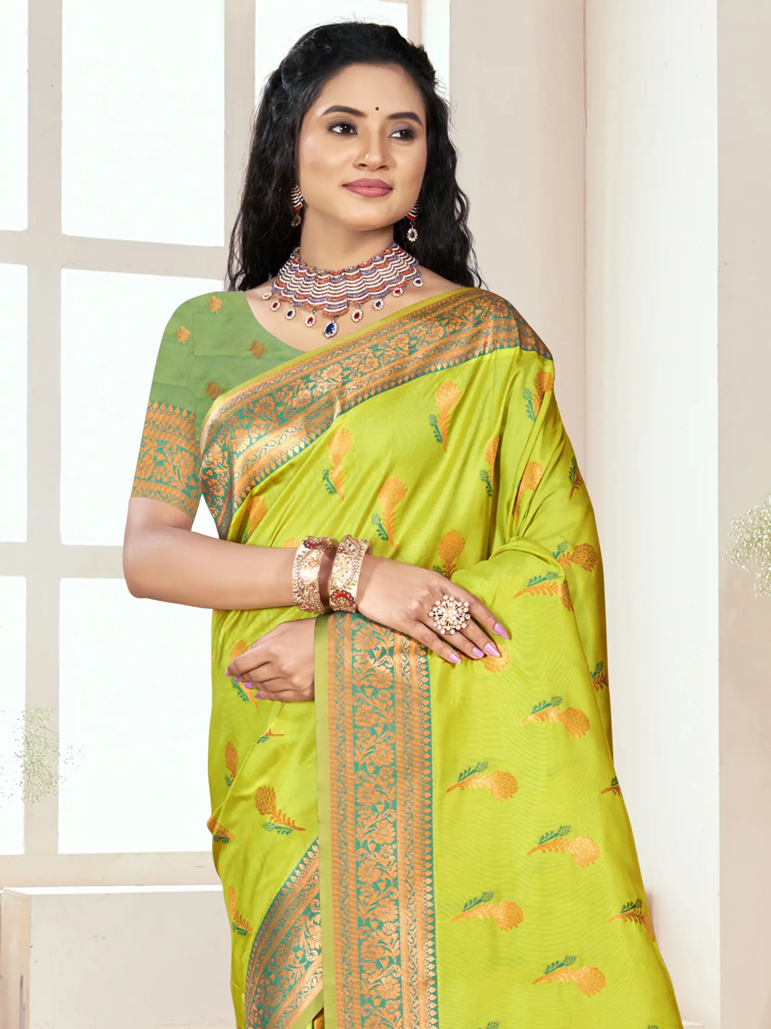 Flower Motif Silk Saree For Women'S In Attractive Look With Designer Pallu