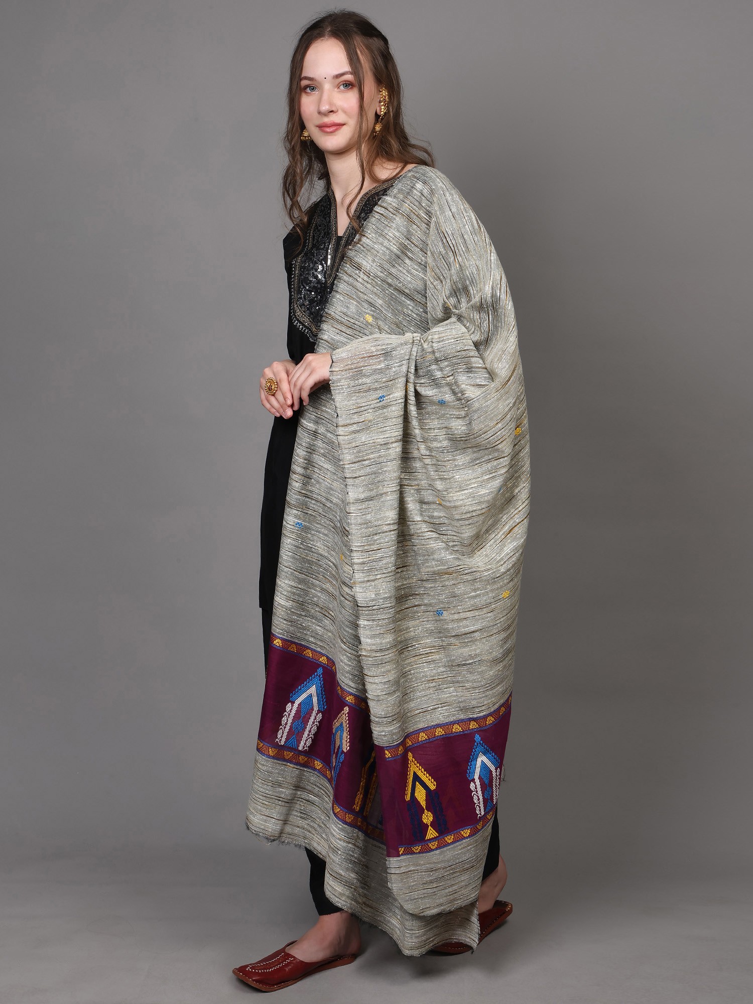 Forest-Fog Mix Weave Textured Khadi Dupatta with Thread Motif Contrast Border