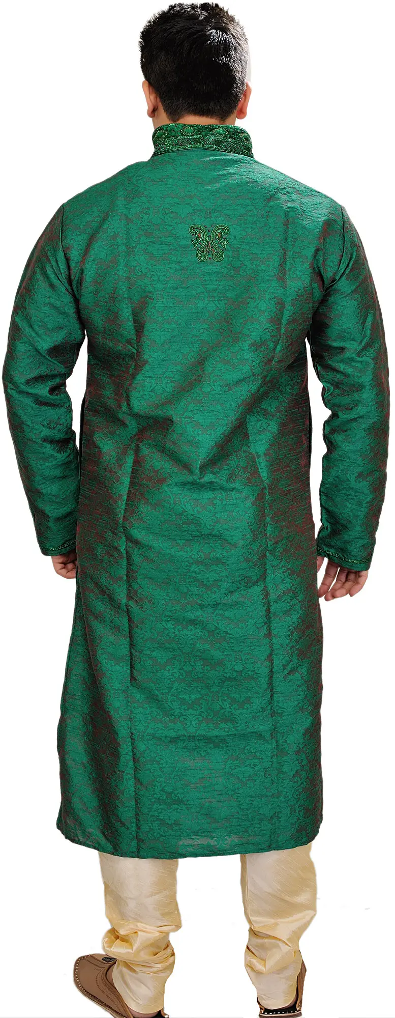 Wedding Kurta Pajama Set with Embroidered Collar and Jacquard Woven Paan Leaves