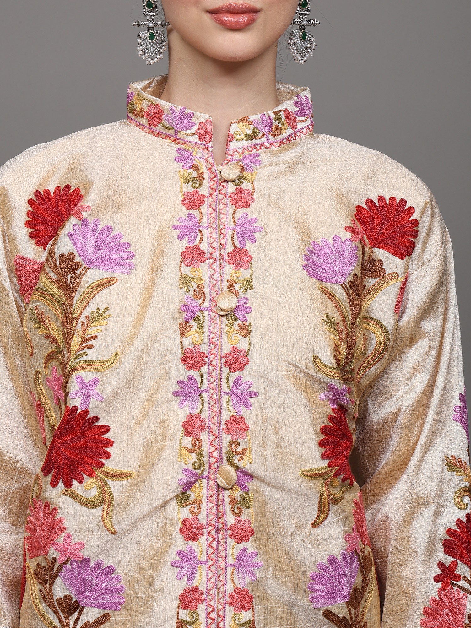 Solitary-Star Kashmiri Short Jacket with Aari Embroidered Pattern