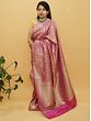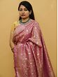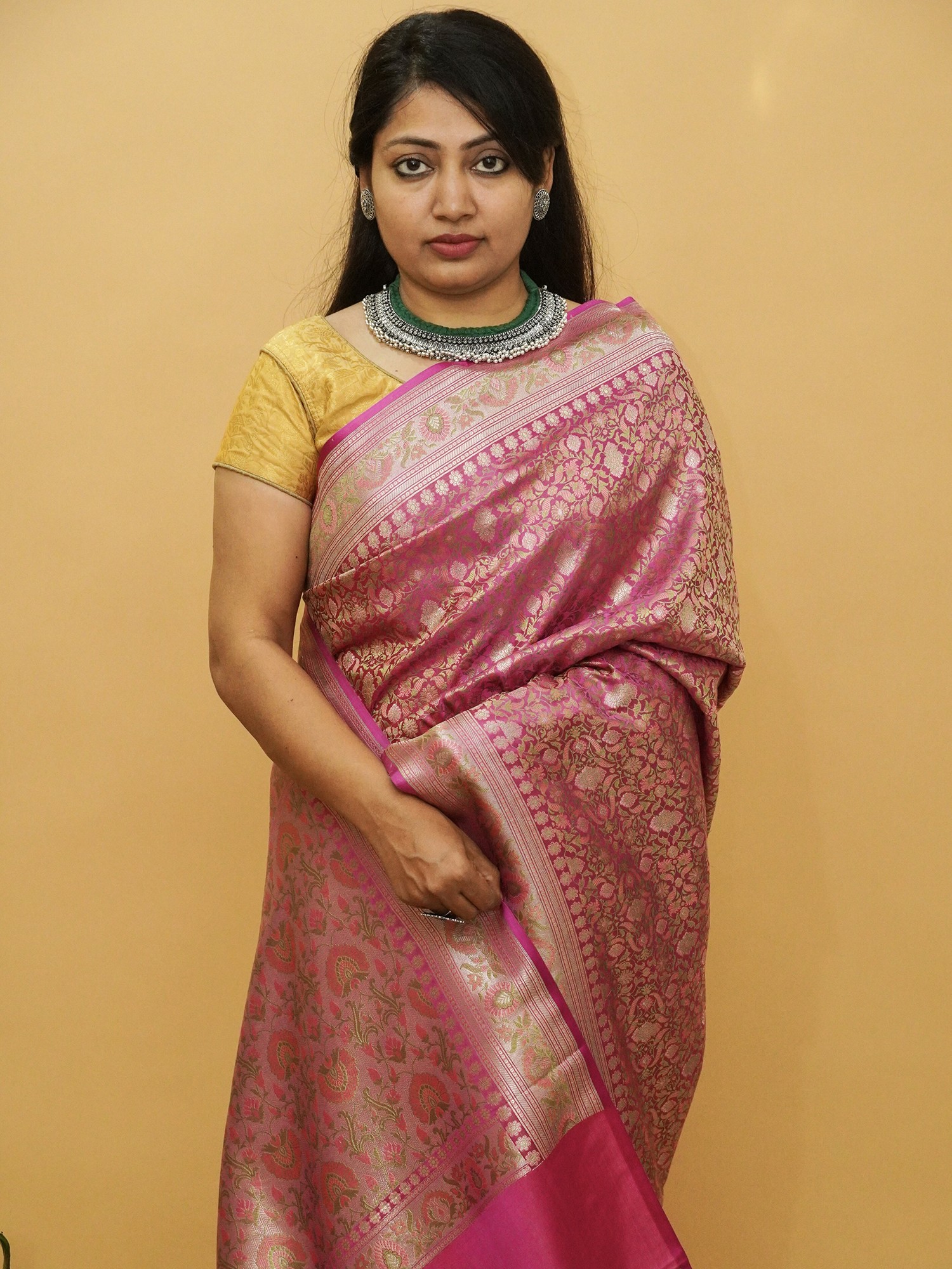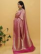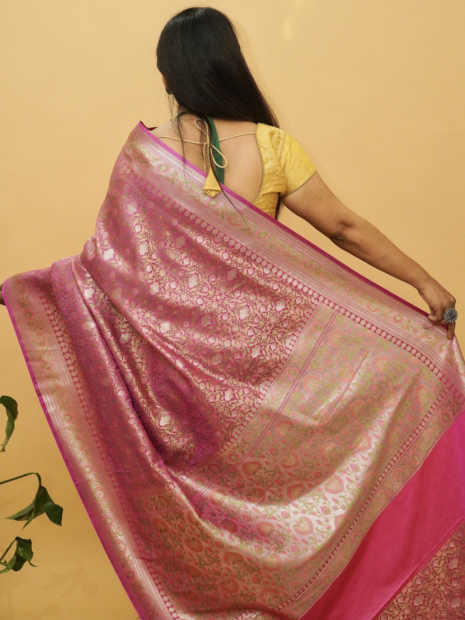 Fuchsia-Purple Banarasi Tanchui Silk Floral Vine Pattern Saree With All-Over Meena Work