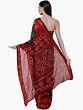 Experience the artistry of Rajasthan with this exquisite Bandhani saree, a testament to traditional Indian textile techniques. Crafted from pure cotton, this saree promises both comfort and elegance, making it a perfect addition to any discerning wardrobe. The captivating design features a striking blend of deep garnet-red and rich dark-green hues, creating a visually arresting gradient that flows beautifully across the fabric. This unique color combination evokes the vibrant spirit of the desert landscape and the lushness of oasis greens, offering a sophisticated yet lively aesthetic.