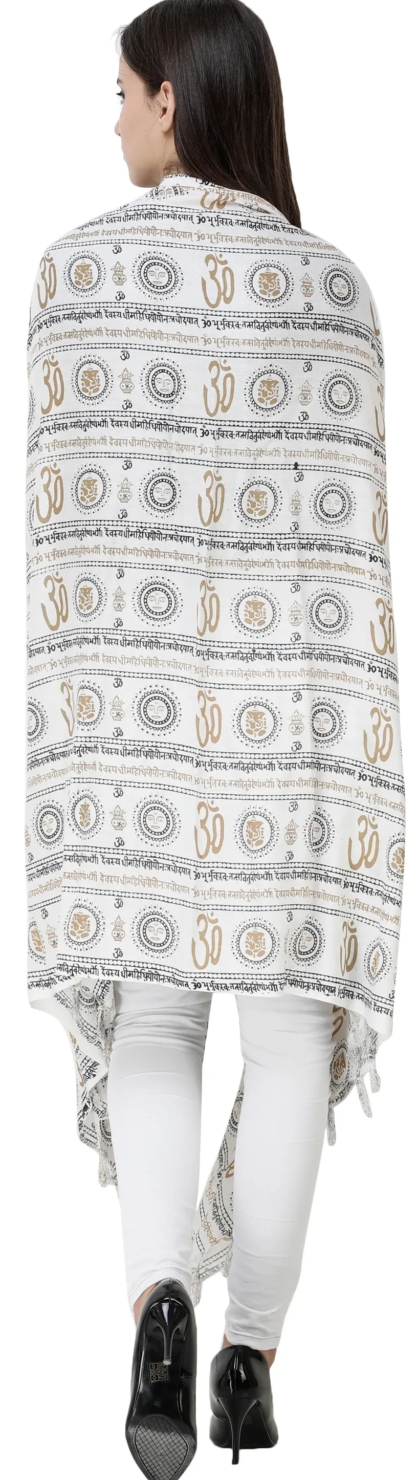 A connection to the holy energies linked with the Gayatri Mantra, meditation, and devotion are all symbolized by the shawl. The wearer or user uses it frequently during prayer sessions, meditation exercises, or religious ceremonies to attain inner calm, knowledge, and spiritual elevation through the mantra's heavenly vibrations.