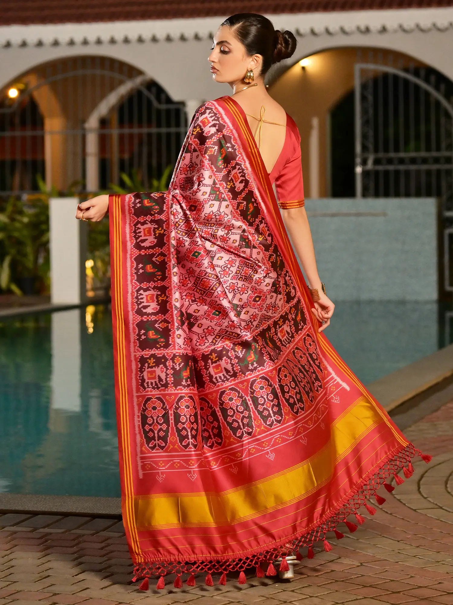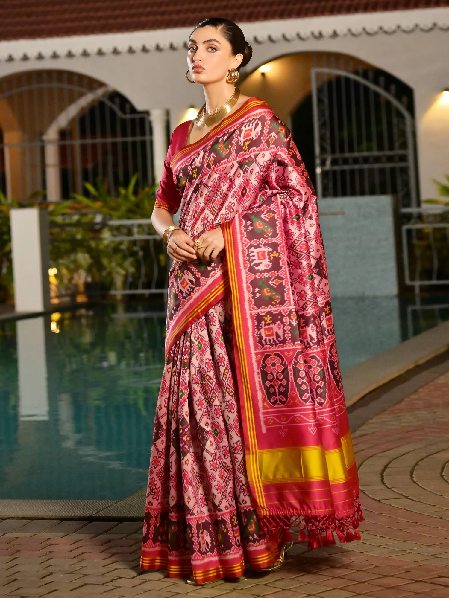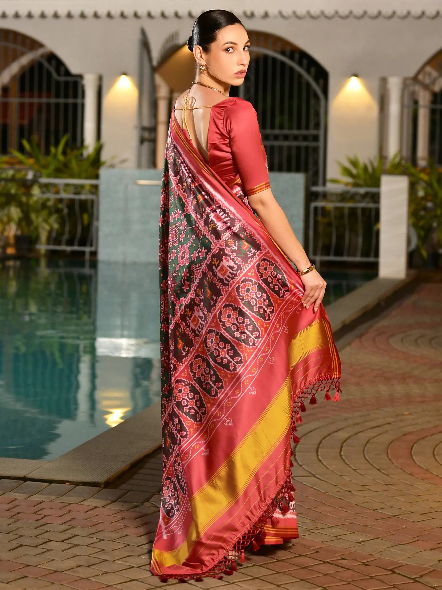 Geometric Floral Motifs Banarasi Patola Silk Saree