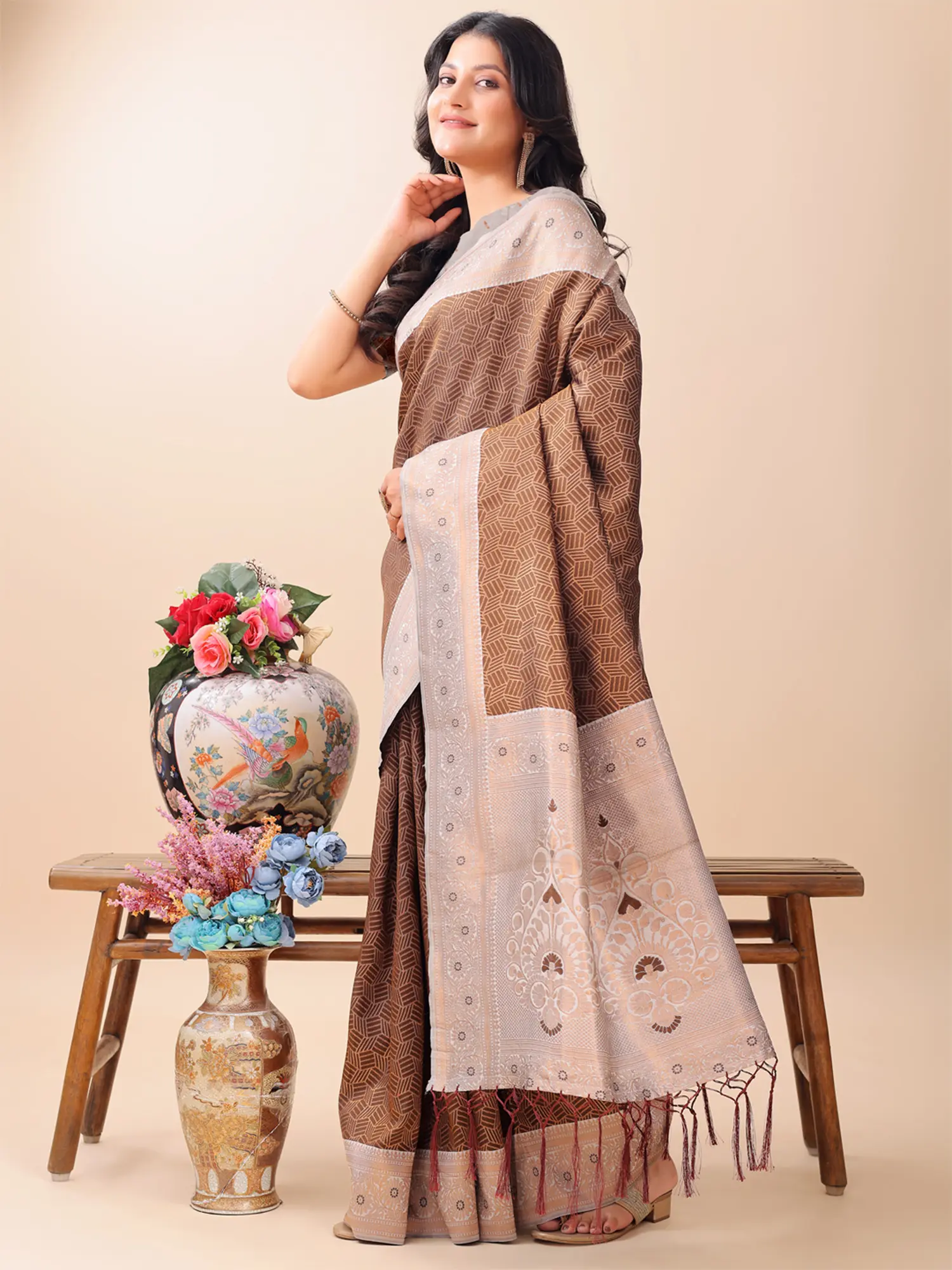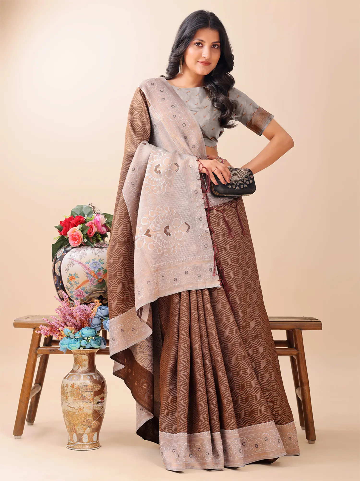 Sequins Weaving Silk Saree with Digital Print Blouse